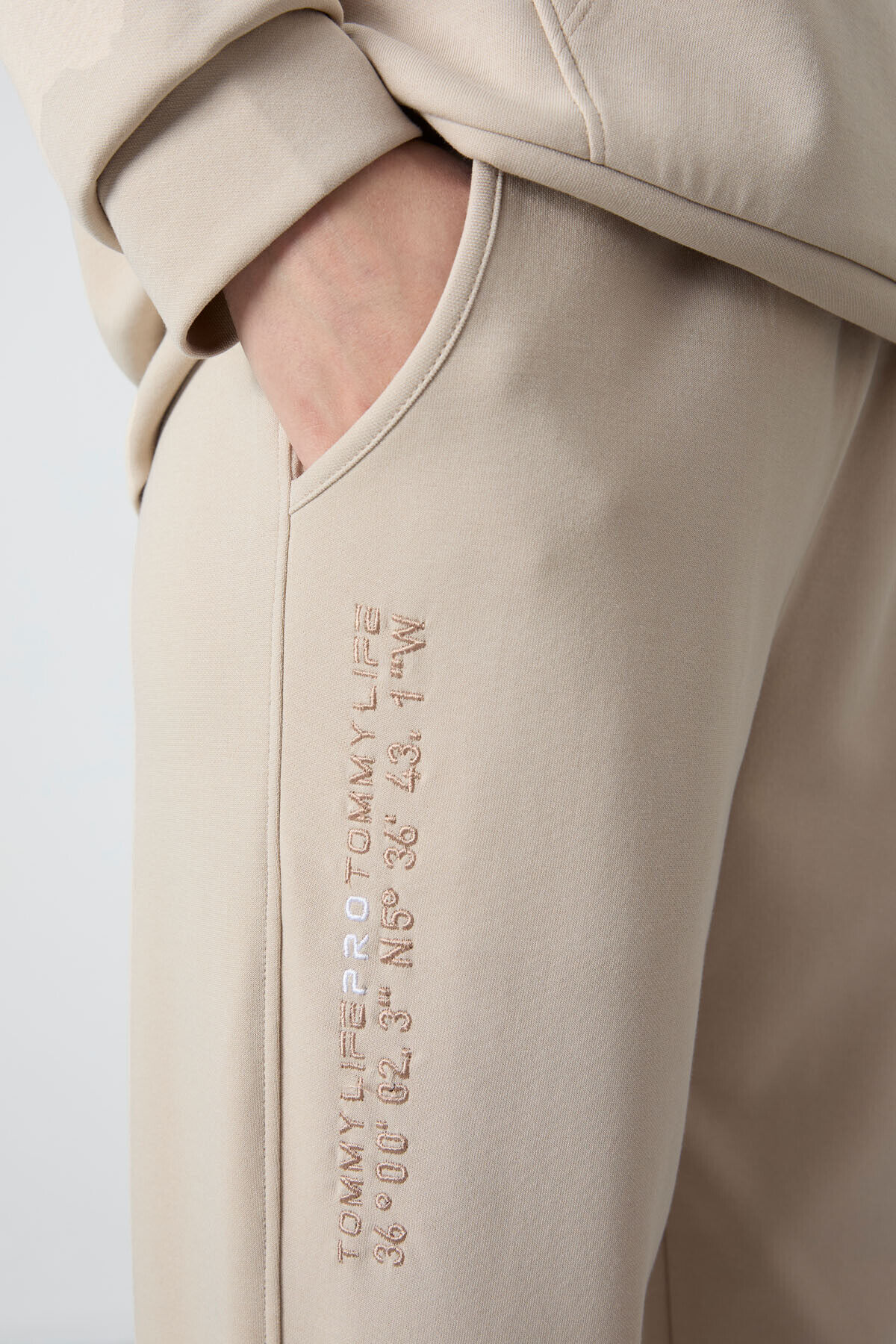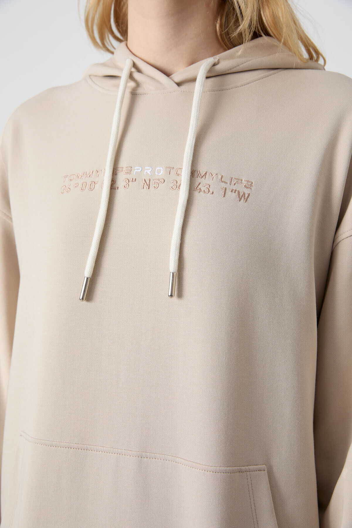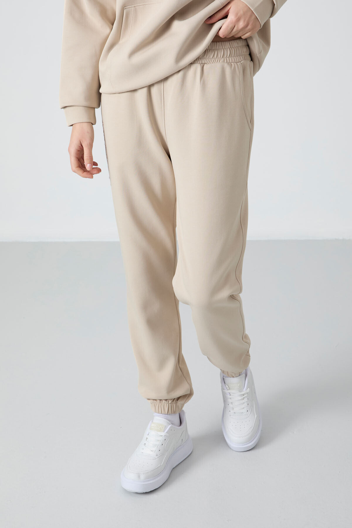 TommyLife Bej Kapüşonlu Kanguru Cep Oversize Lastik Paça Kadın Eşofman Takımı - 95288