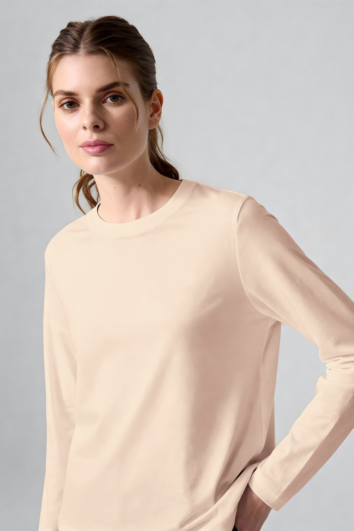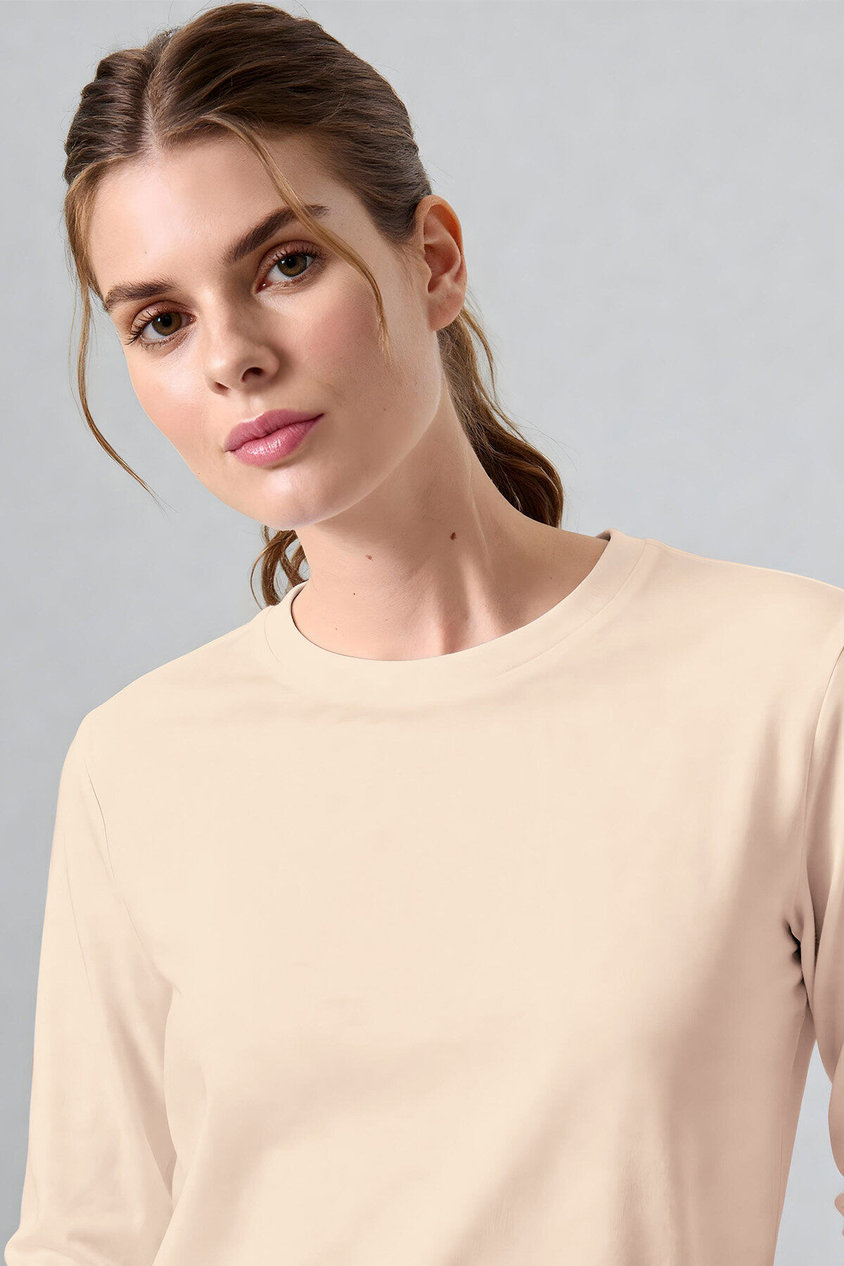 TommyLife Bej O Yaka Standart Fit Uzun Kollu Basic Kadın T-Shirt - 97312