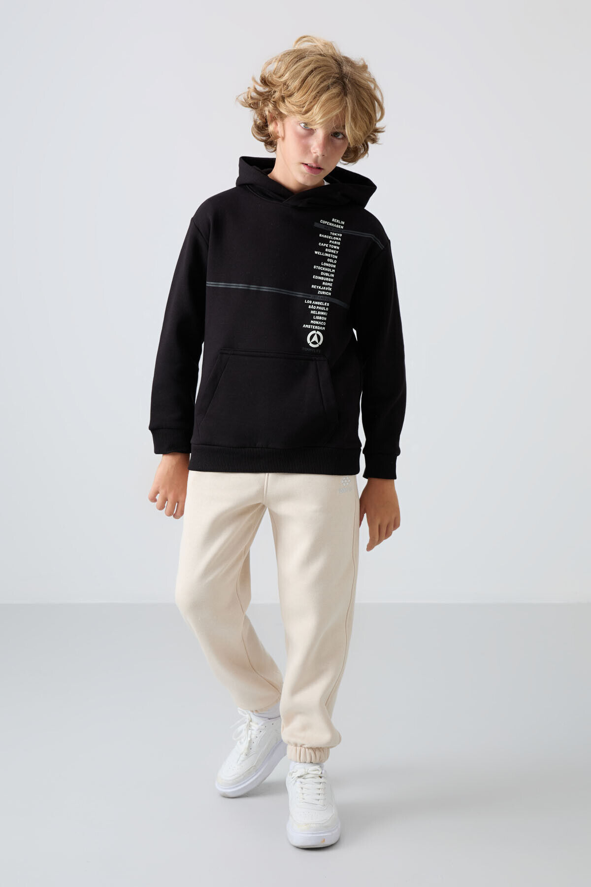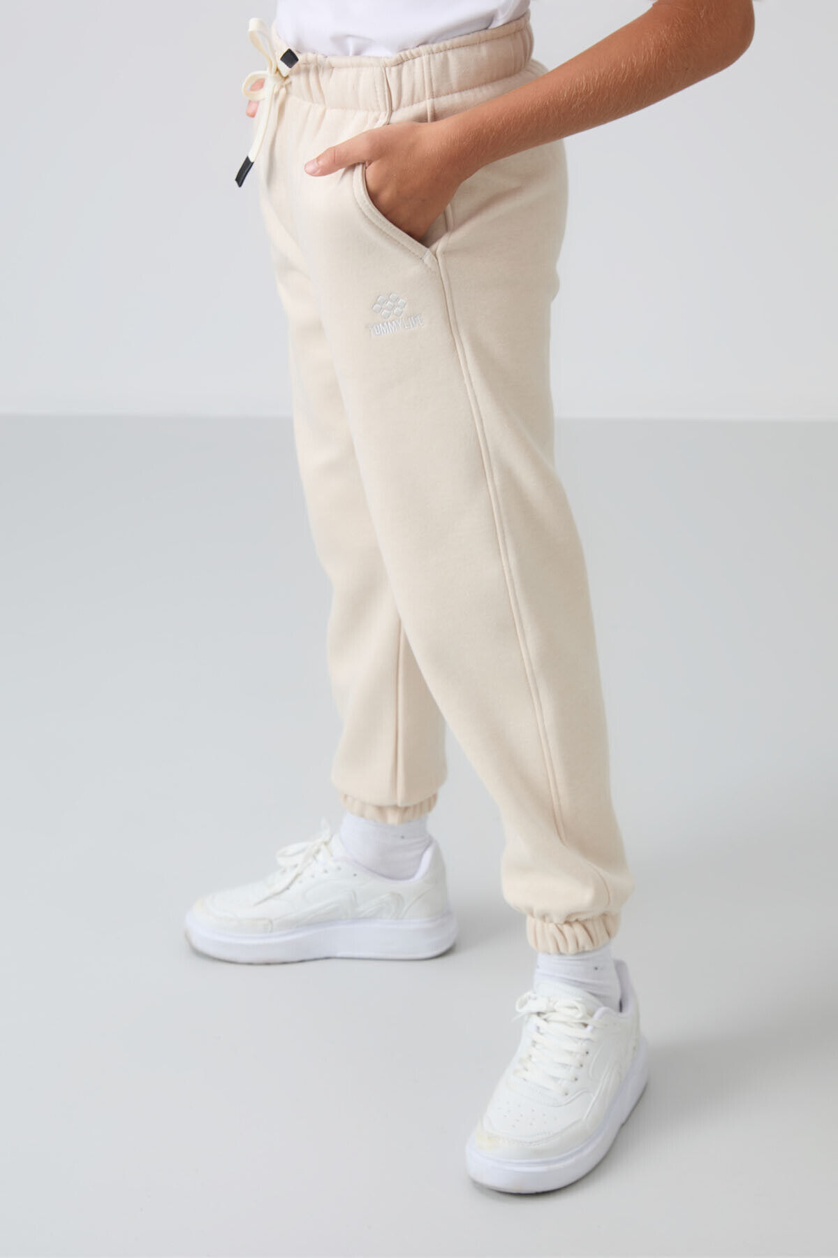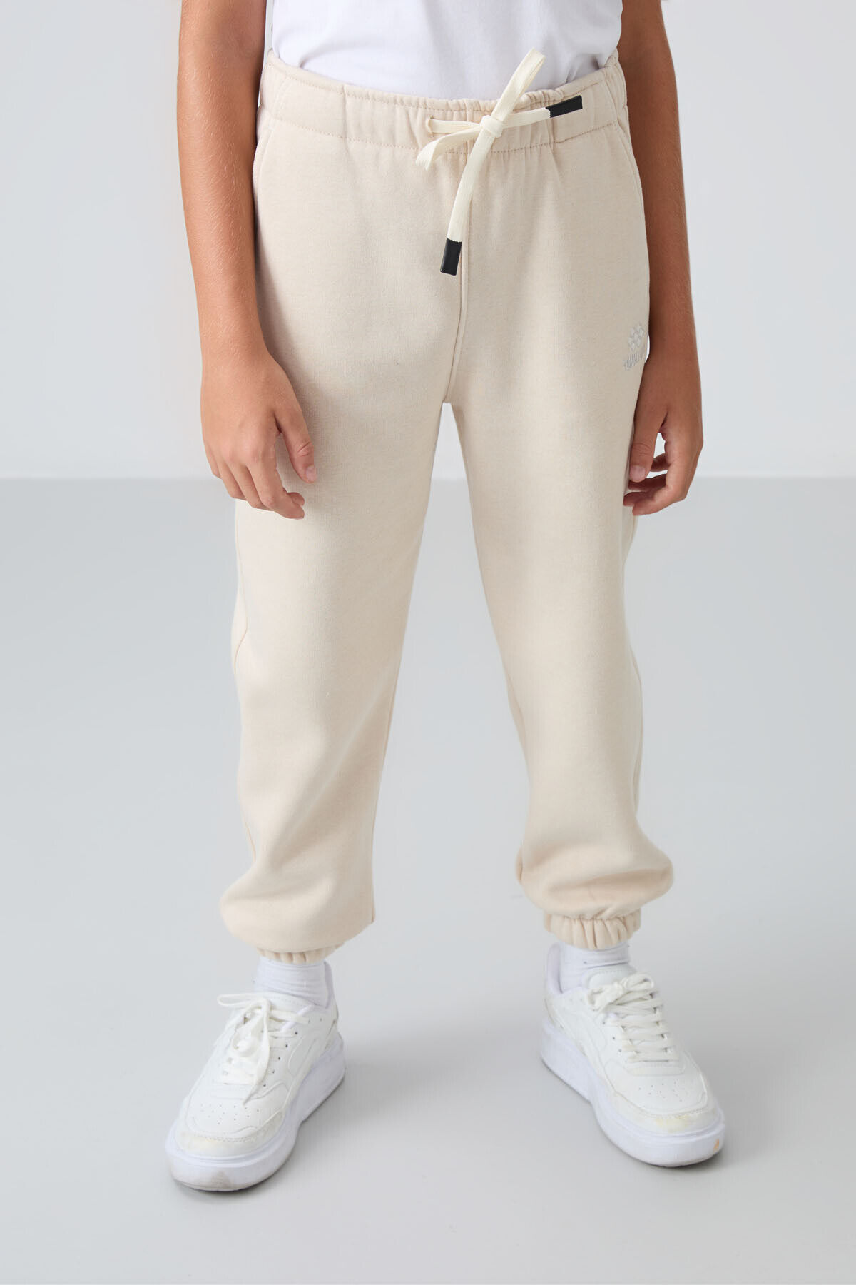 TommyLife Bej Pamuklu Kalın İçi Tüylü Yumuşak Dokulu Standart Fit Baskılı Erkek Çocuk Eşofman Alt - 11225