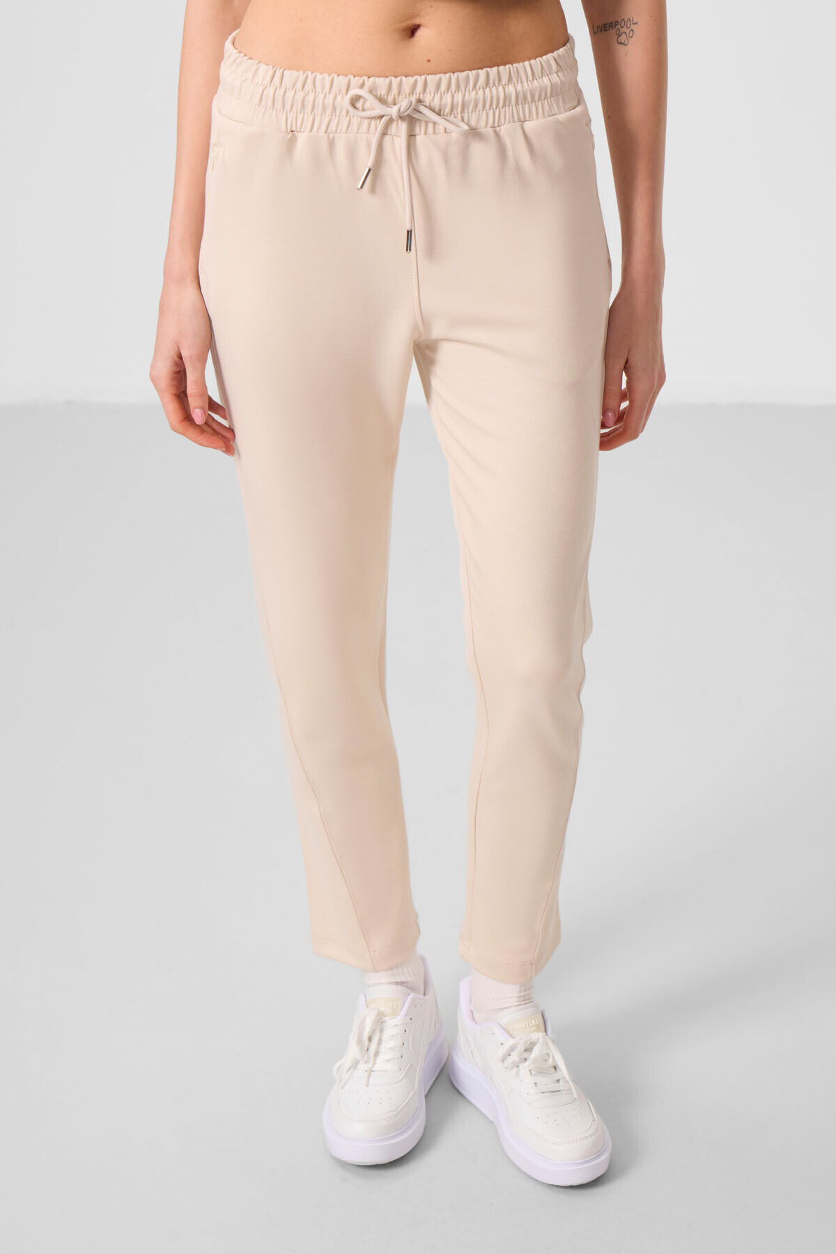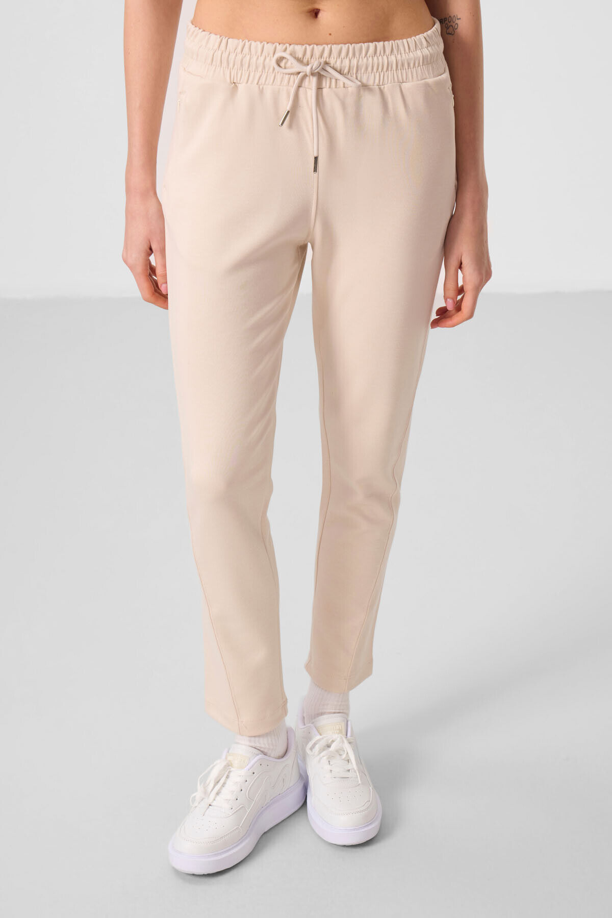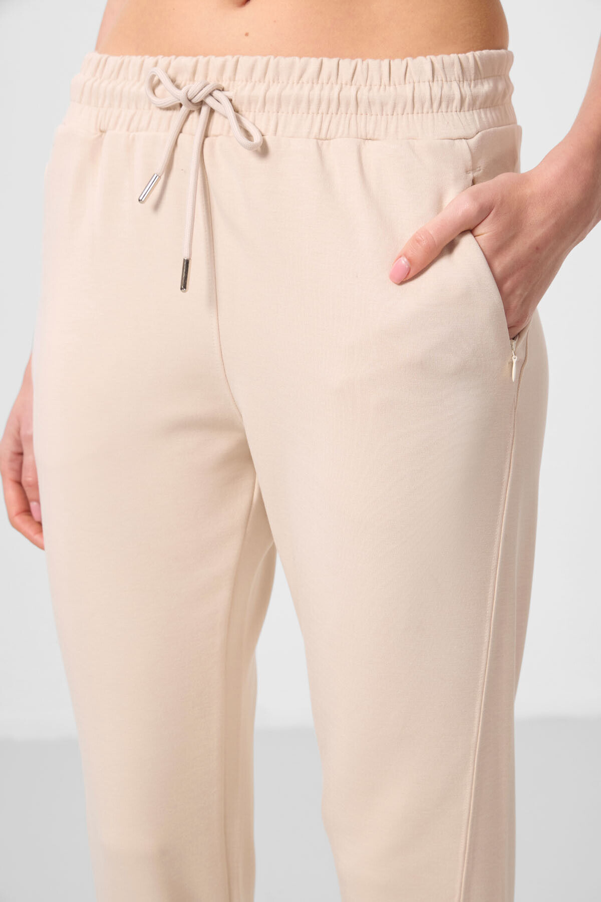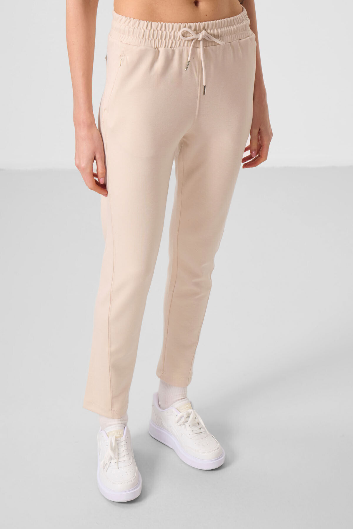 TommyLife Bej Yumuşak Dokulu Gizli Fermuarlı Dar Paça Kadın Pantolon - 94668