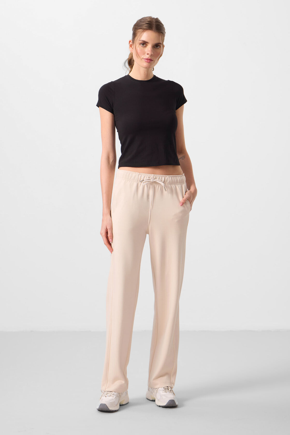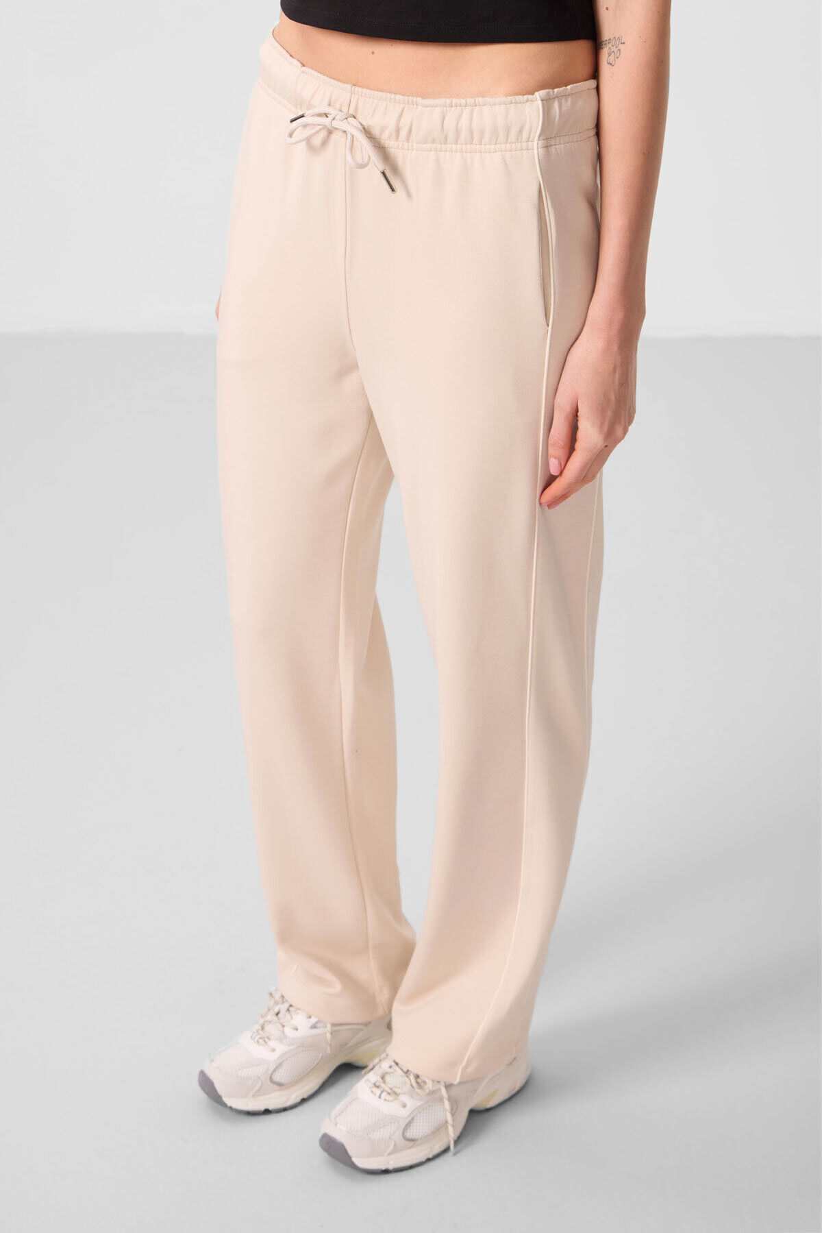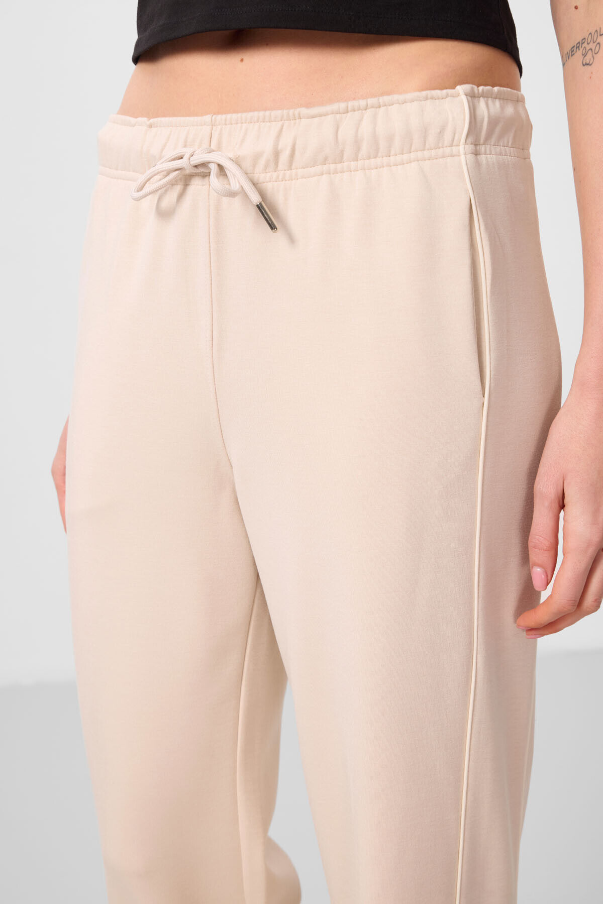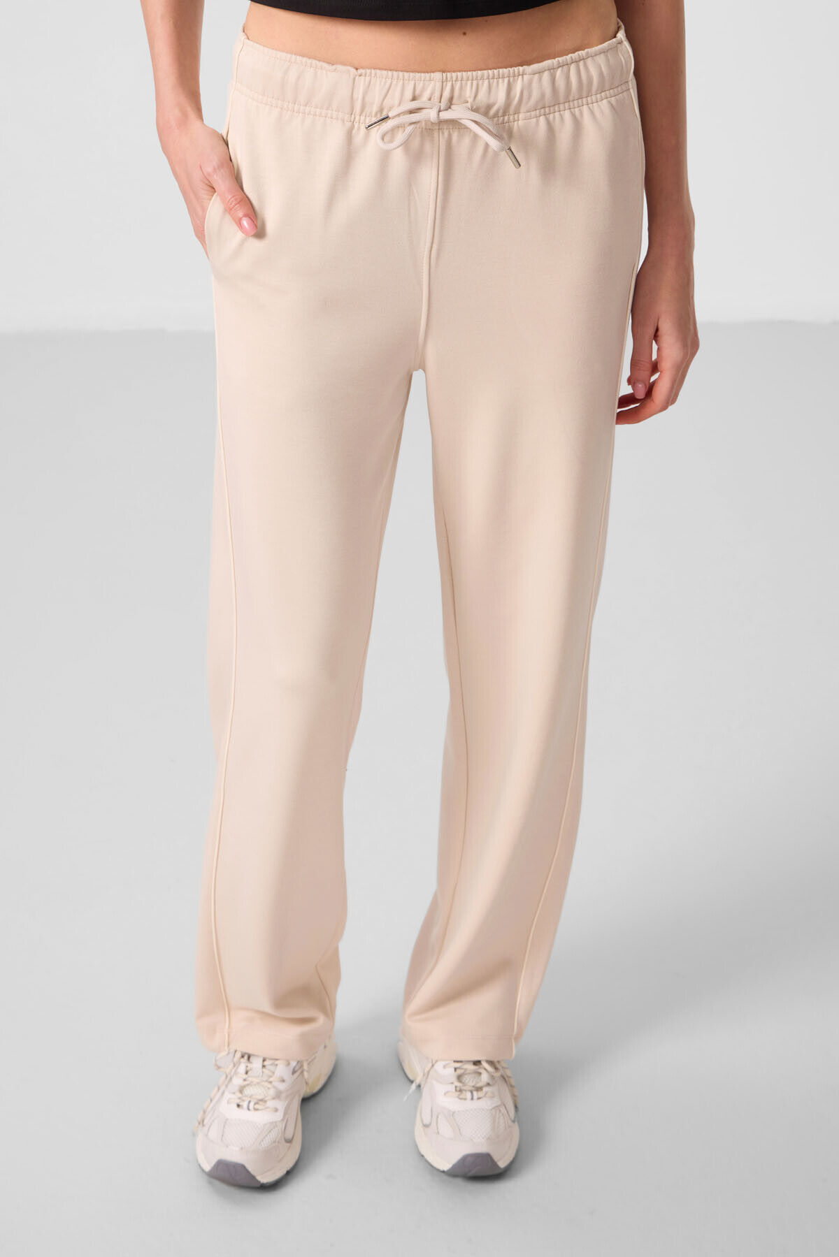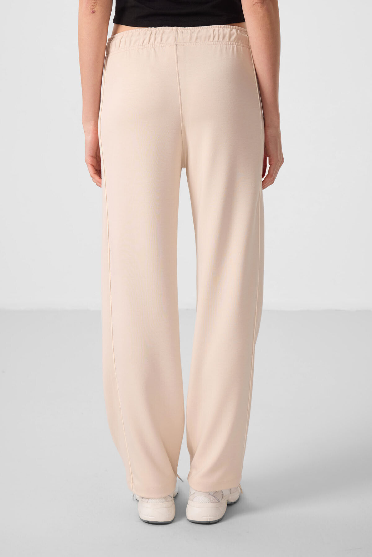 TommyLife Bej Yumuşak Dokulu Yan Panel Detaylı Geniş Paça Kadın Palazzo Pantolon - 94669