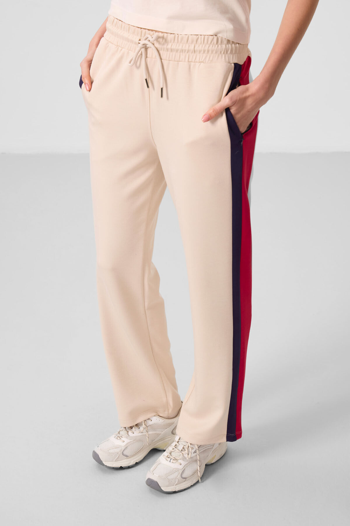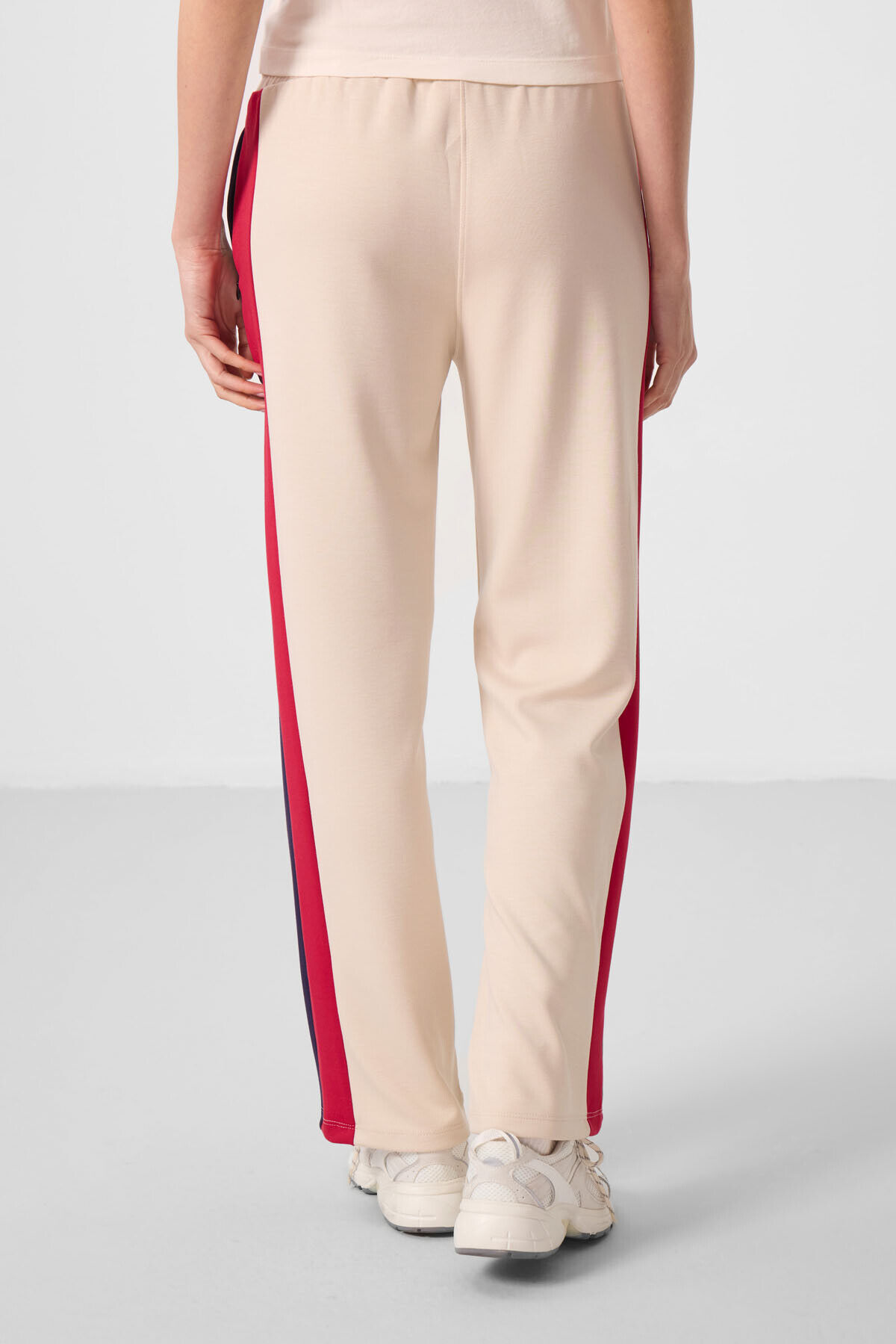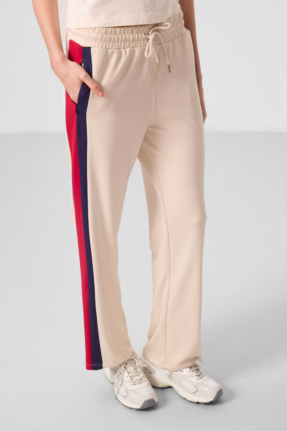 TommyLife Bej Yumuşak Dokulu Yan Panel Detaylı Geniş Paça Kadın Palazzo Pantolon - 94671