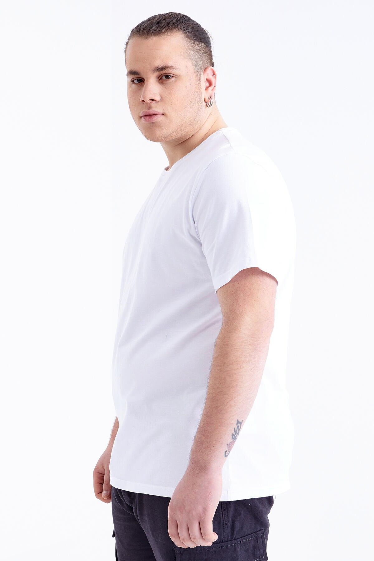TommyLife Beyaz Basic Kısa Kol O Yaka Büyük Beden Erkek T-Shirt - 88072