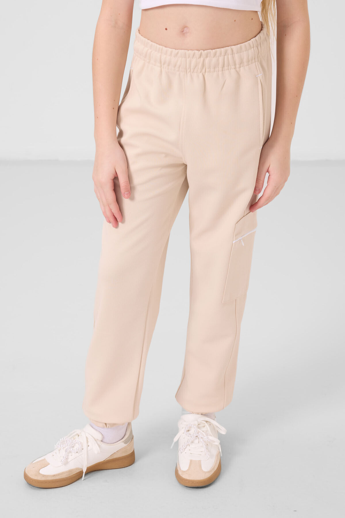 TommyLife Beyaz-Bej O Yaka Baskılı Lastik Paça Kargo Cepli Kız Çocuk Eşofman Takım - 75173