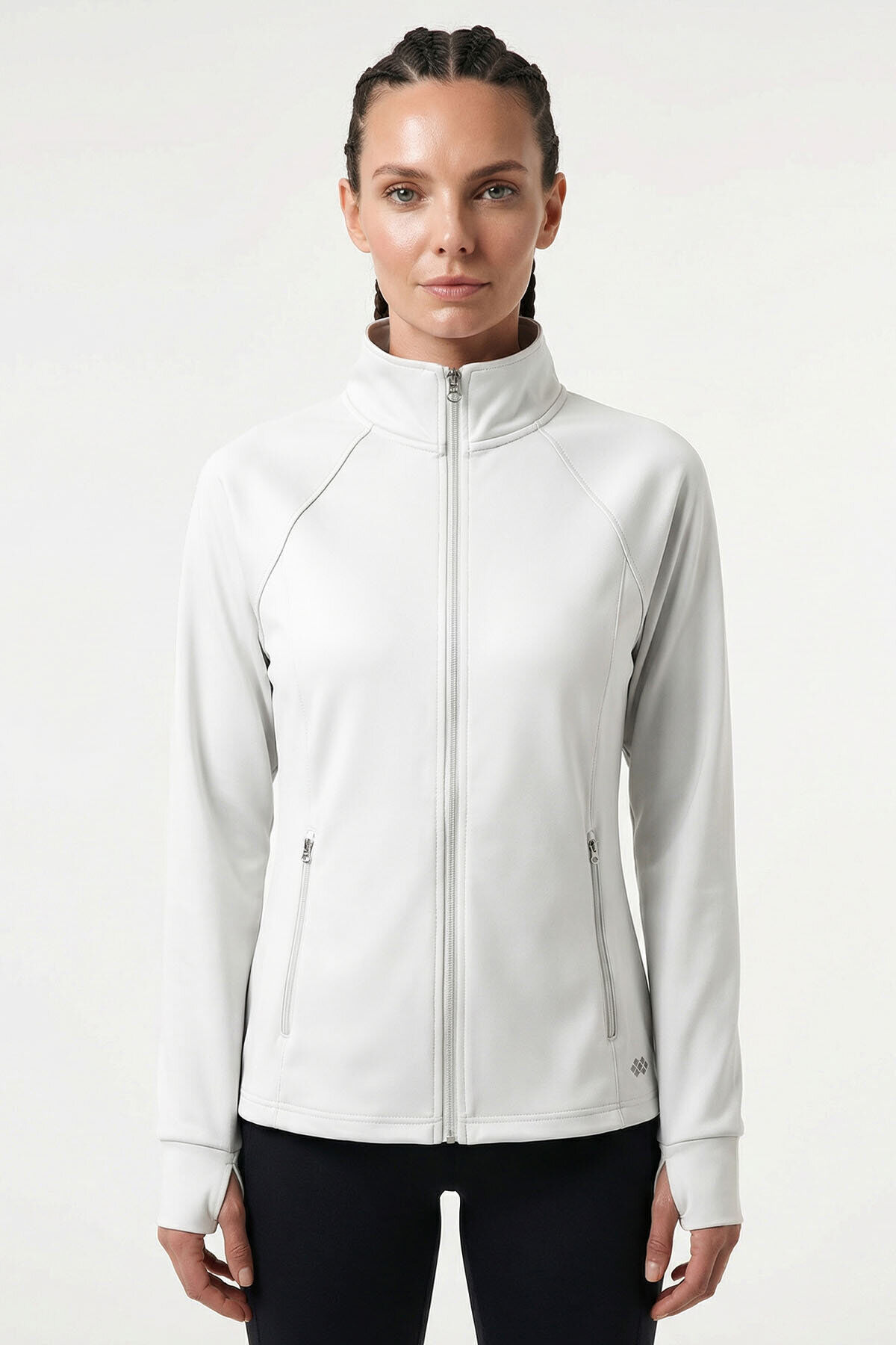 Beyaz Fermuarlı Dik Yaka Basic Rahat Form Kadın Koşu Ceketi - 97310