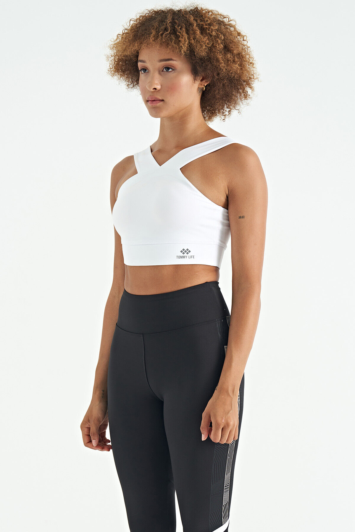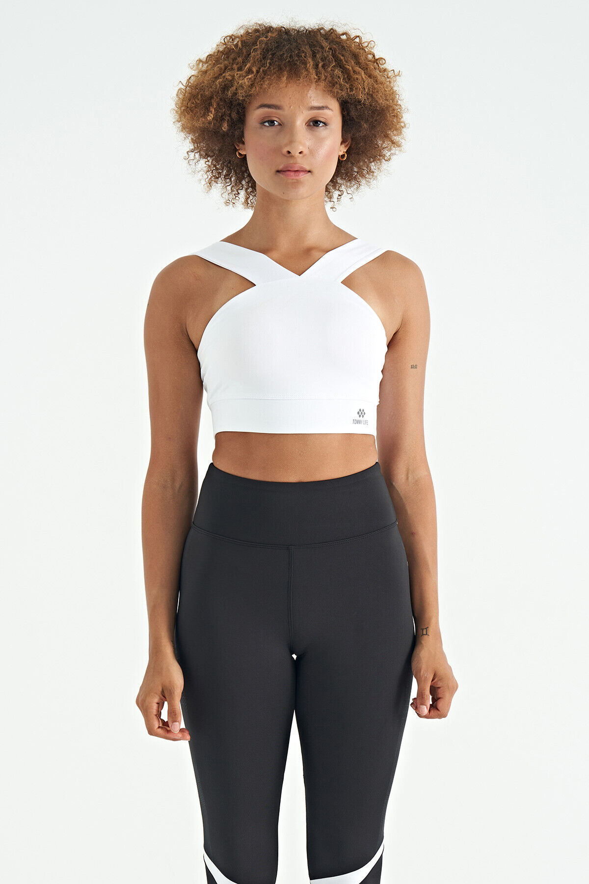 TommyLife Beyaz Logo Baskılı Dar Kalıp Dalgıç Kumaş Kadın Büstiyer - 97259