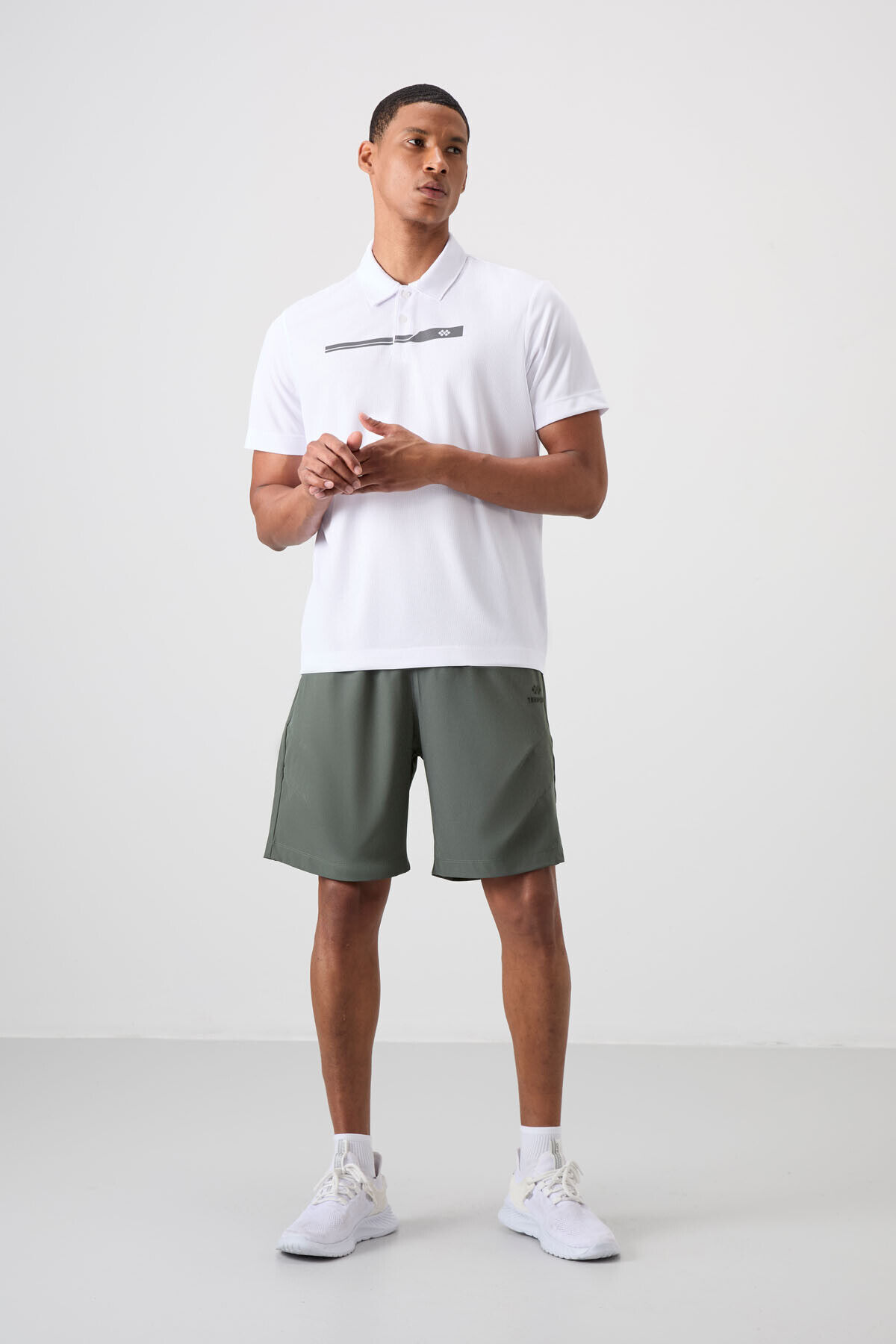 TommyLife Beyaz Nefes Alan Dokulu İnce Esnek Standart Fit Polo Yaka Erkek Performans T-Shirt - 88393