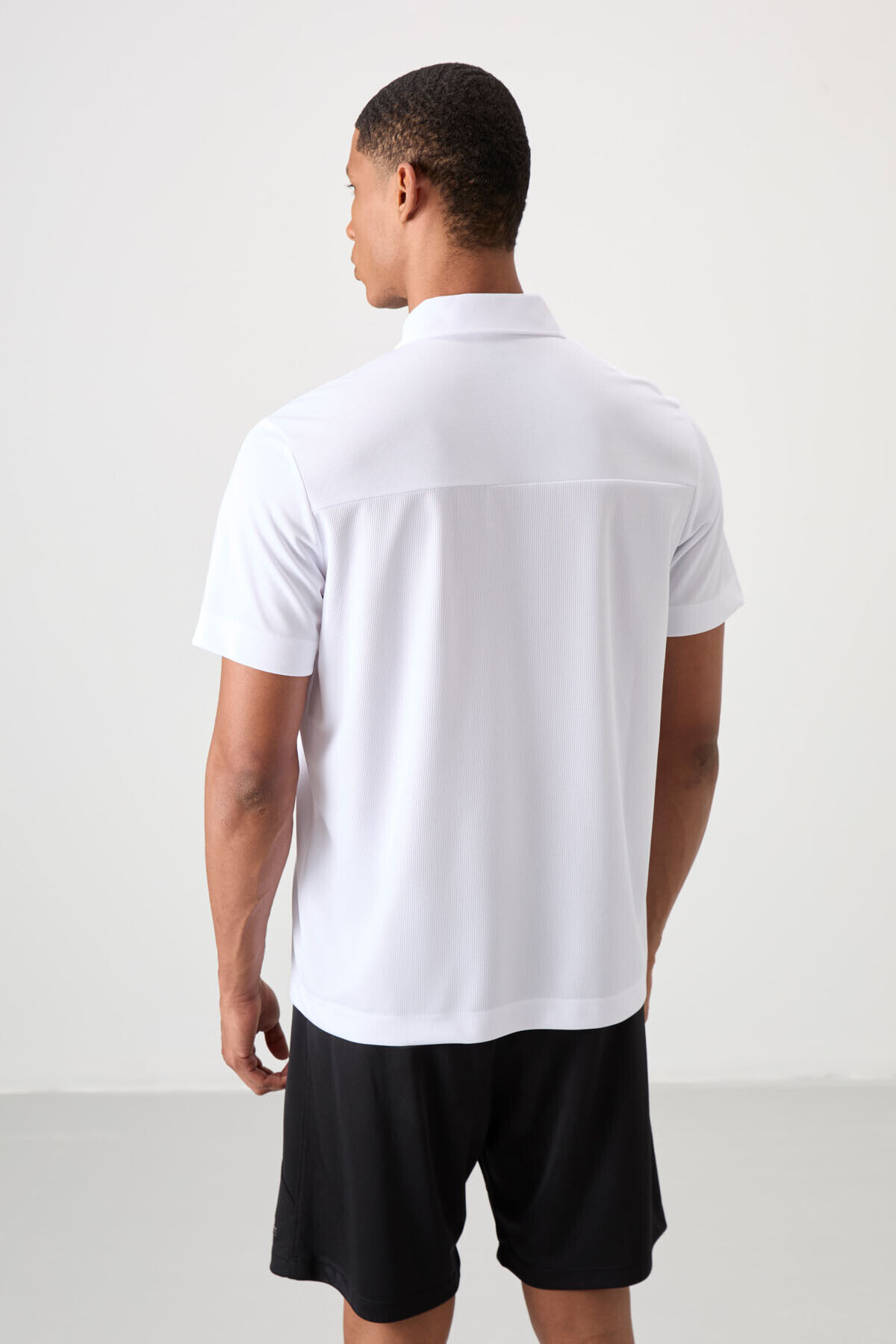 TommyLife Beyaz Nefes Alan Dokulu İnce Esnek Standart Fit Polo Yaka Erkek Performans T-Shirt - 88402