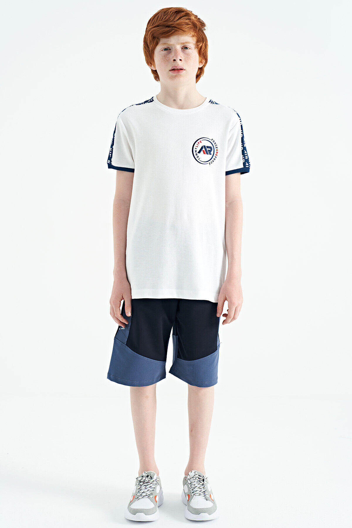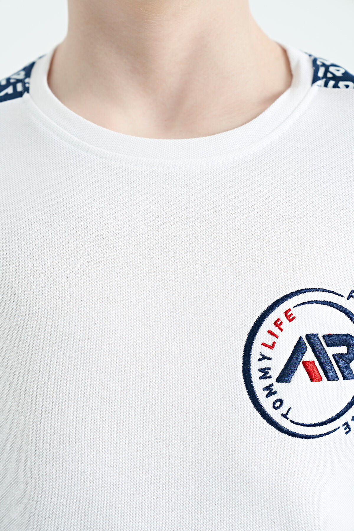 TommyLife Beyaz Omuz Baskı Detaylı Standart Kalıp O Yaka Erkek Çocuk T-Shirt - 11121