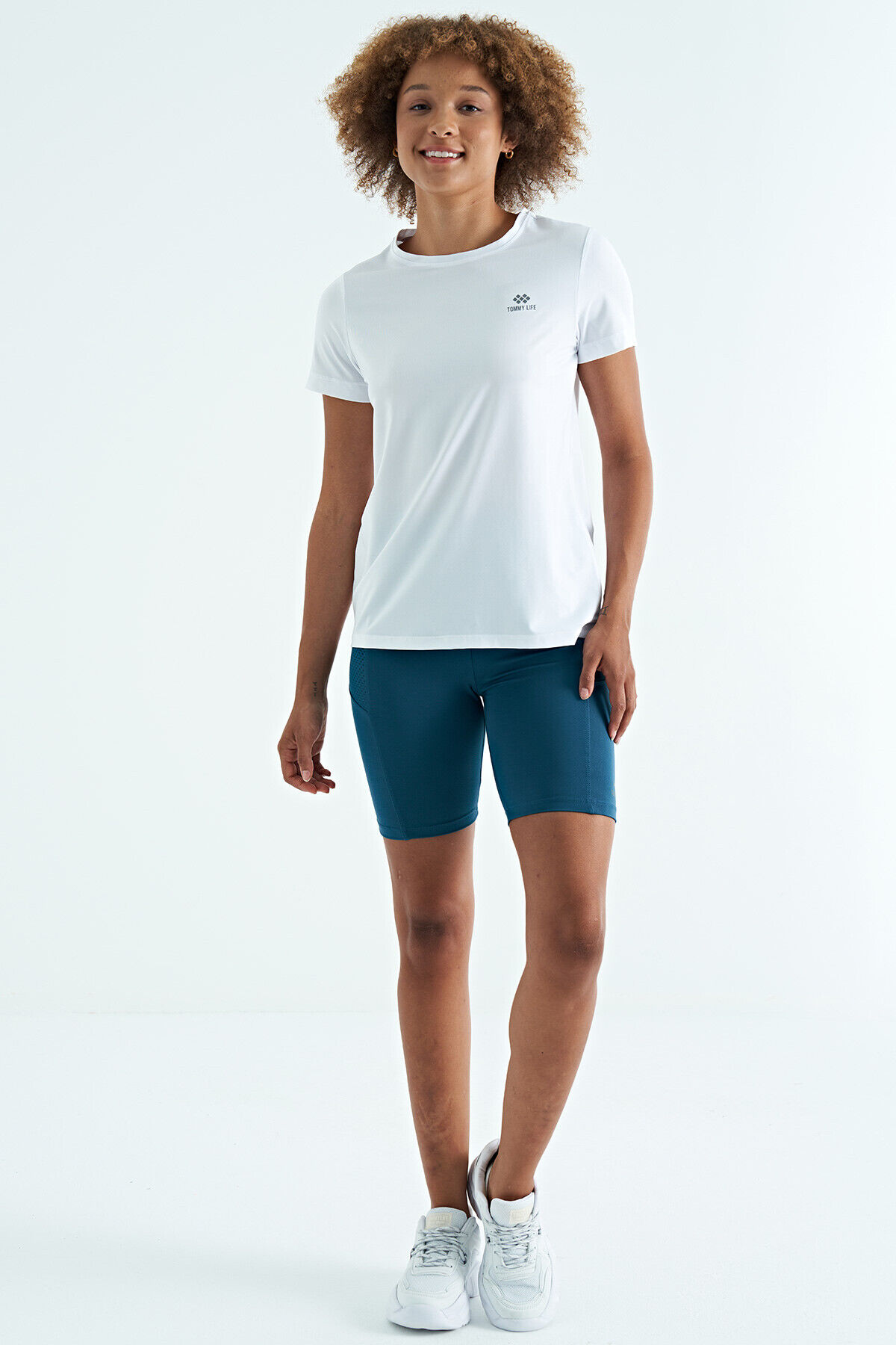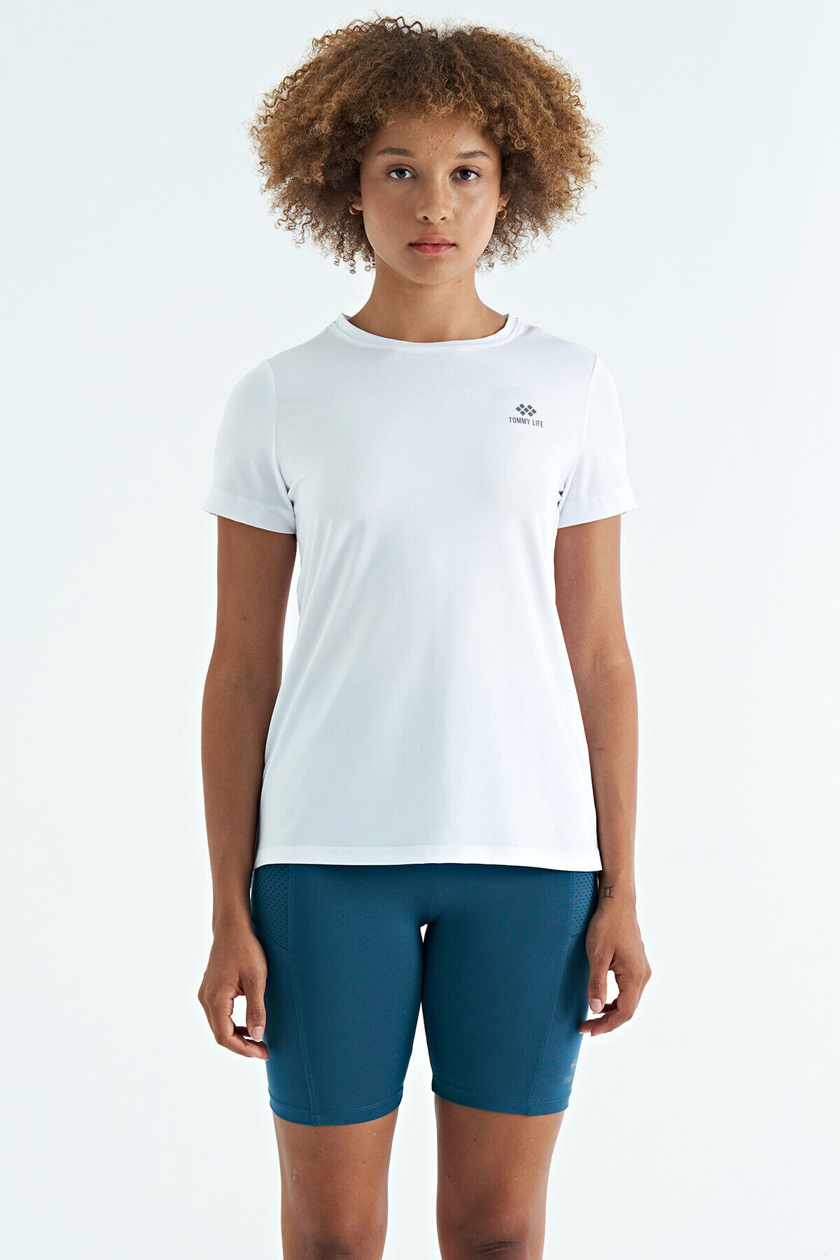 TommyLife Beyaz Sırt Yırtmaç Detaylı O Yaka Kısa Kollu Standart Kalıp Kadın T-Shirt - 97267