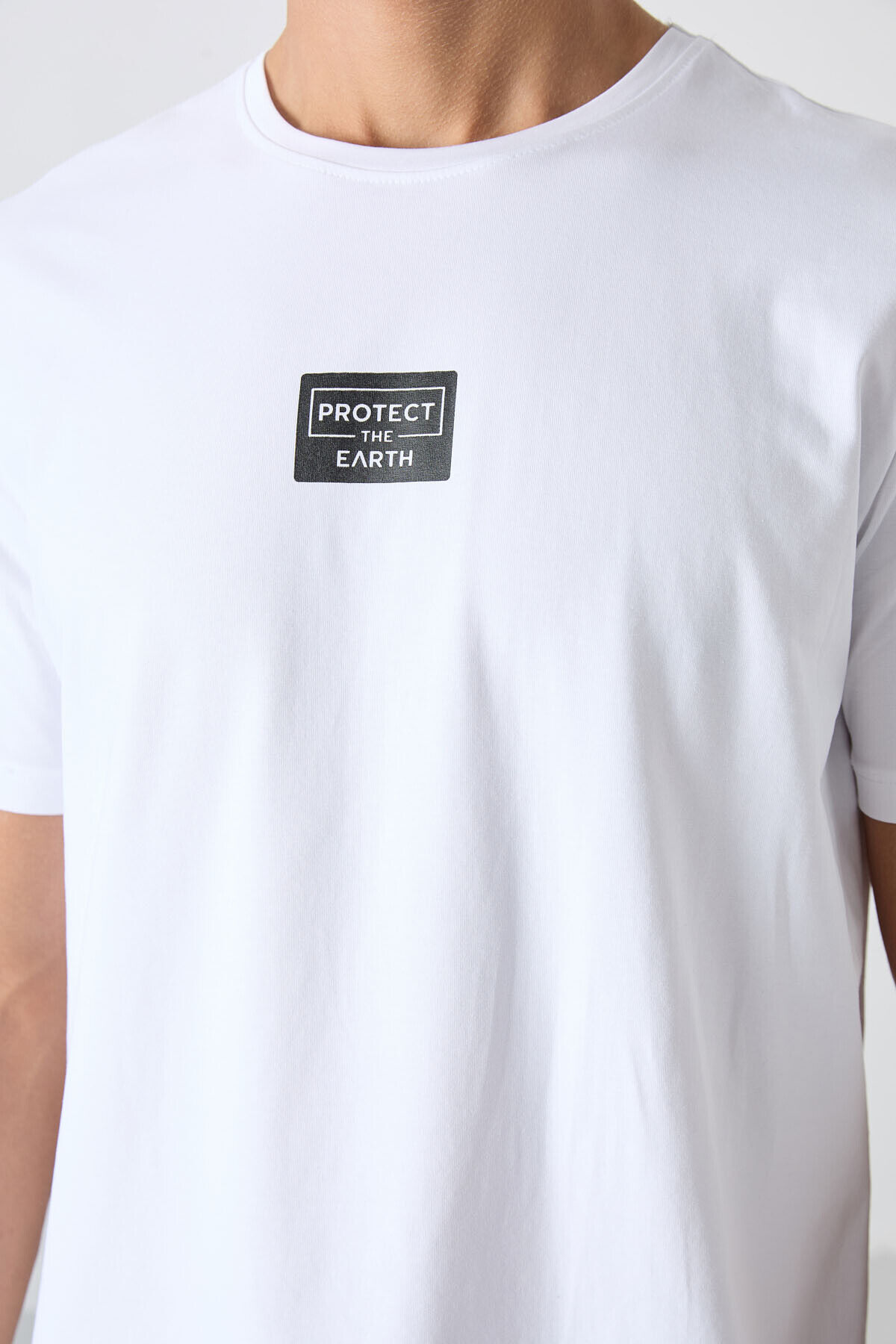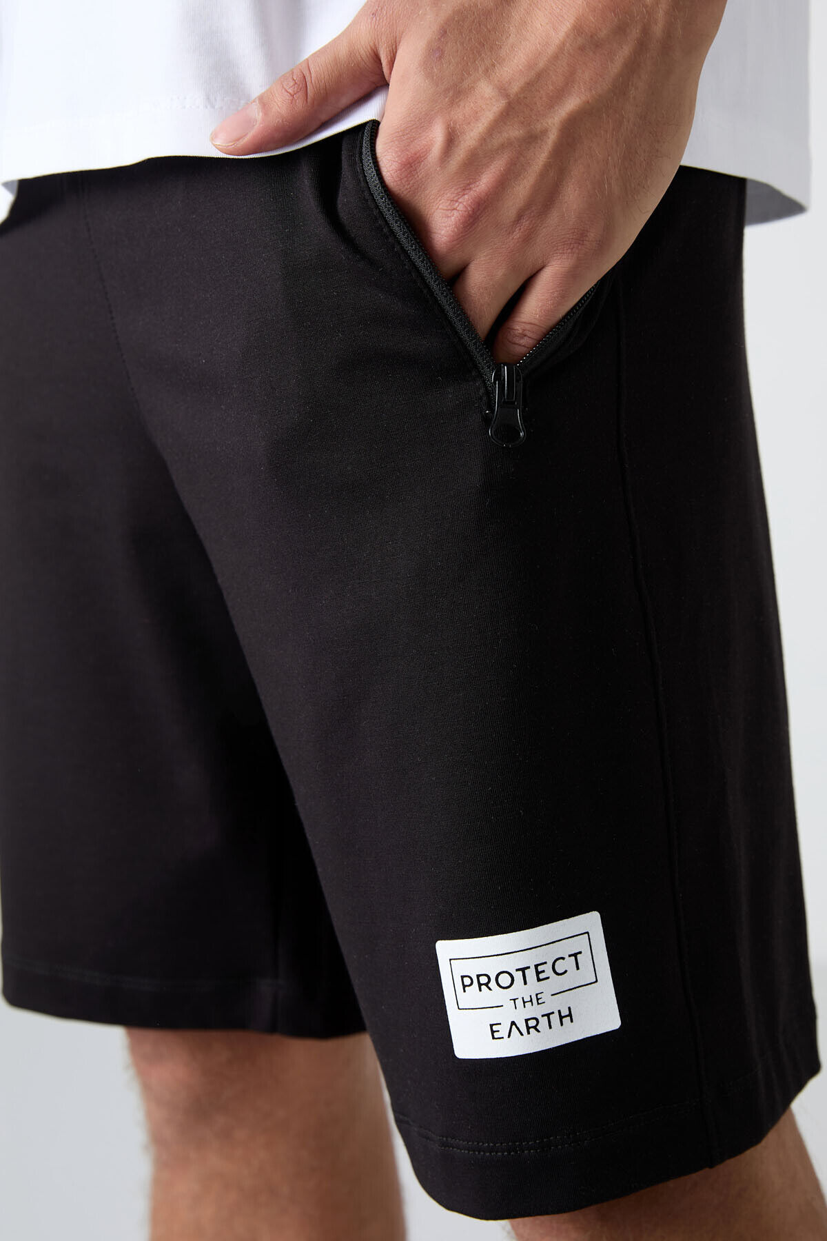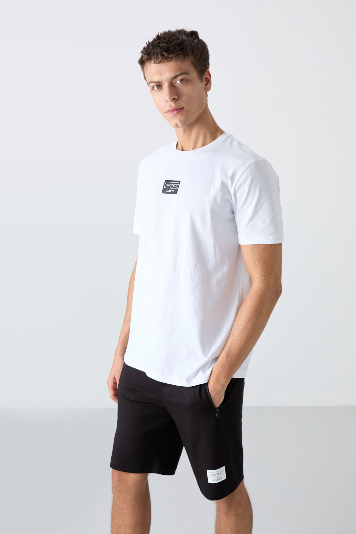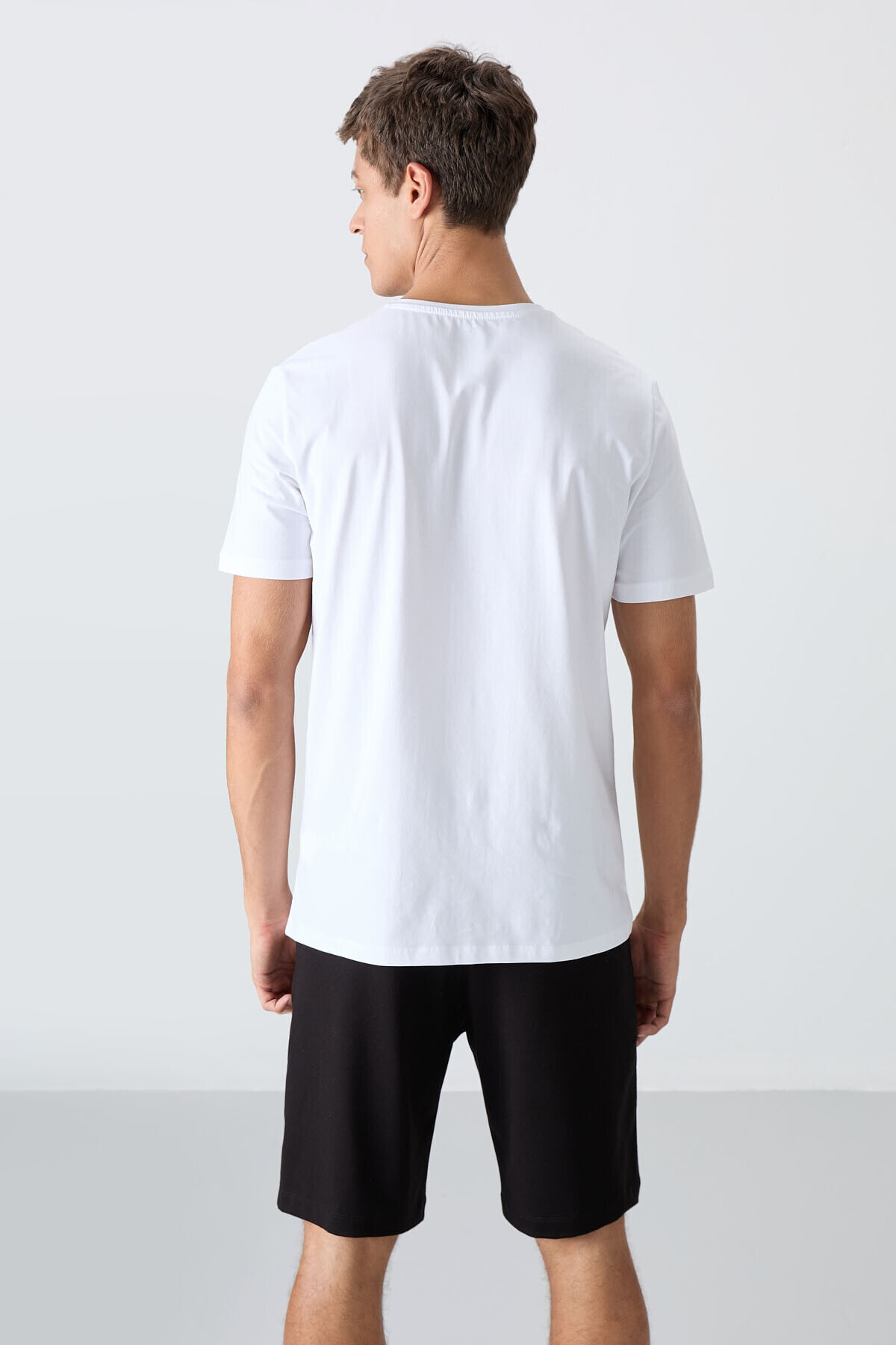 Beyaz - Siyah Pamuklu Yumuşak Dokulu Standart Fit Baskılı Erkek Şortlu Takım - 85243