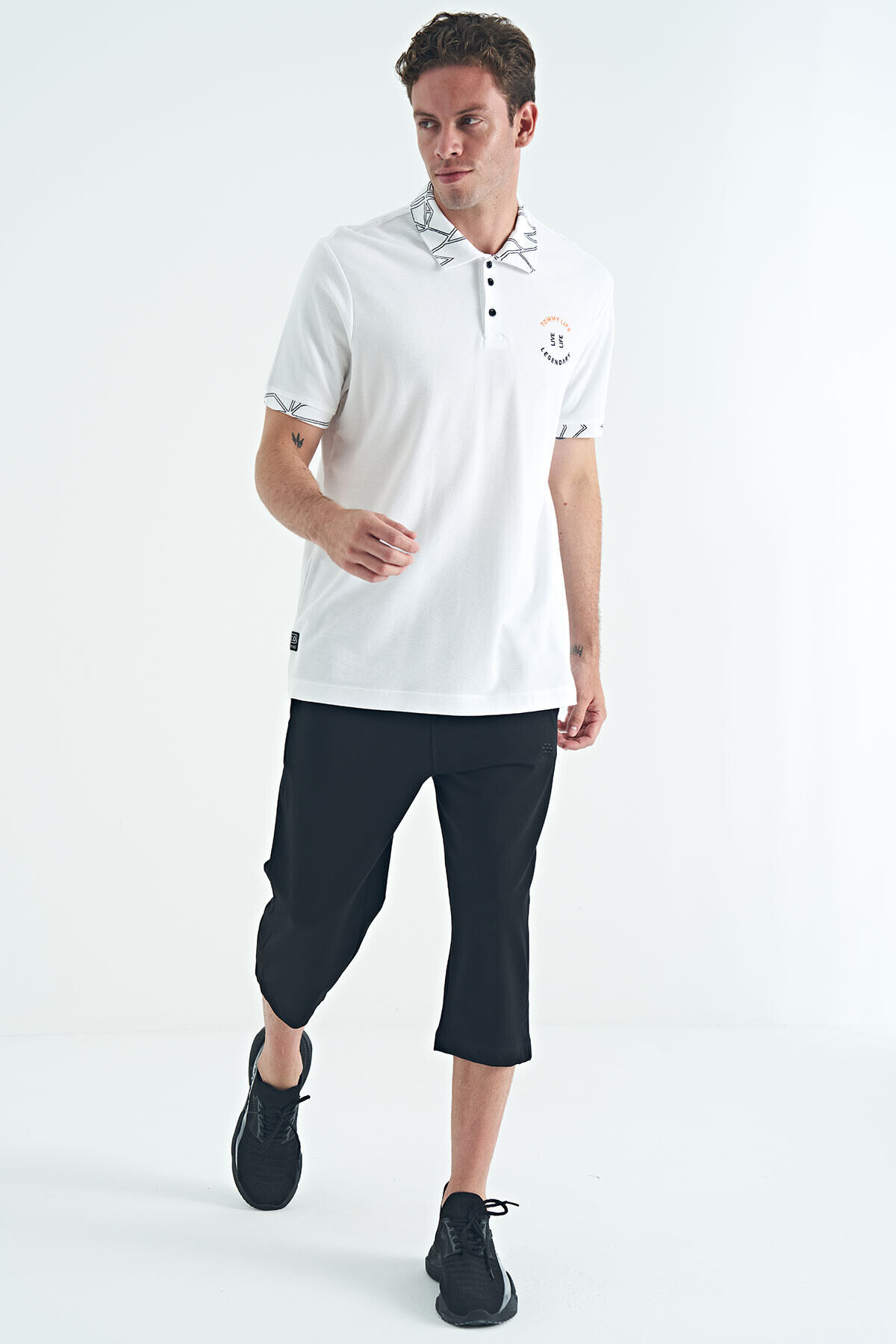 TommyLife Beyaz Yazı Nakışlı Baskı Detaylı Standart Kalıp Polo Yaka Erkek T-Shirt - 88239