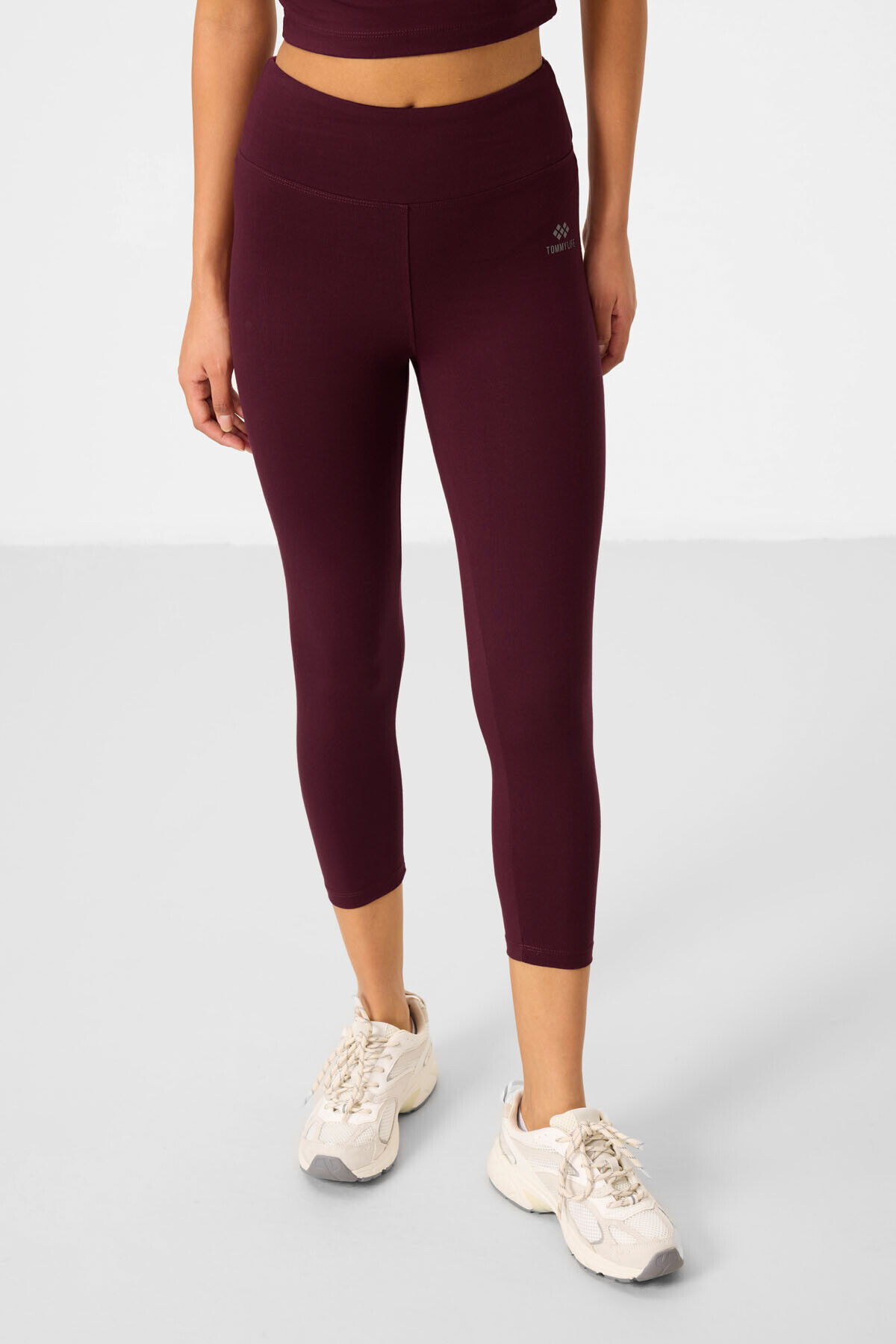 TommyLife Bordo Yüksek Bel Kapri-Crop T-Shirt Slim Fit Kadın Tayt Takım - 95285