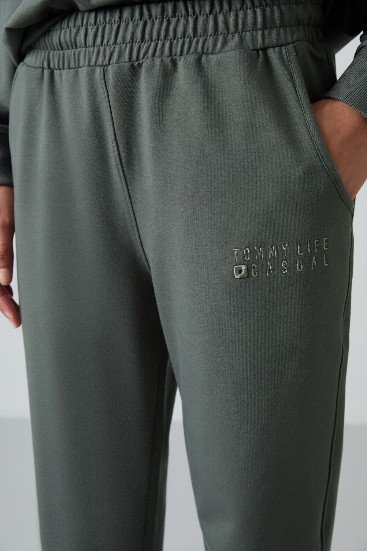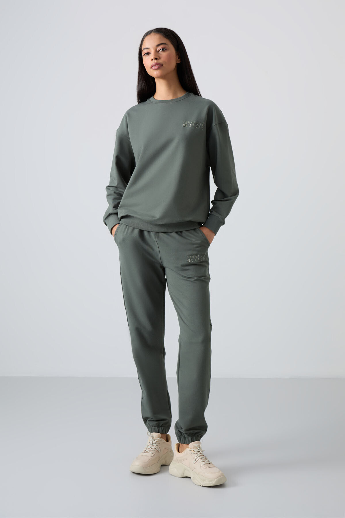 TommyLife Çağla Basic Pamuklu O Yaka Oversize Lastik Paça Kadın Eşofman Takım - 95287