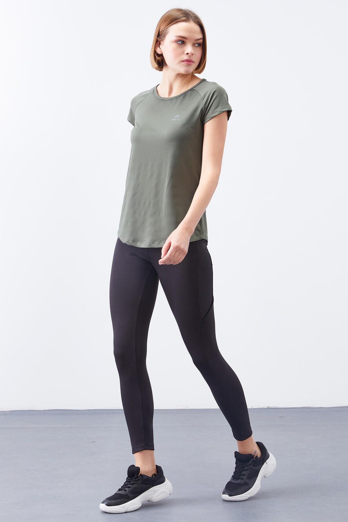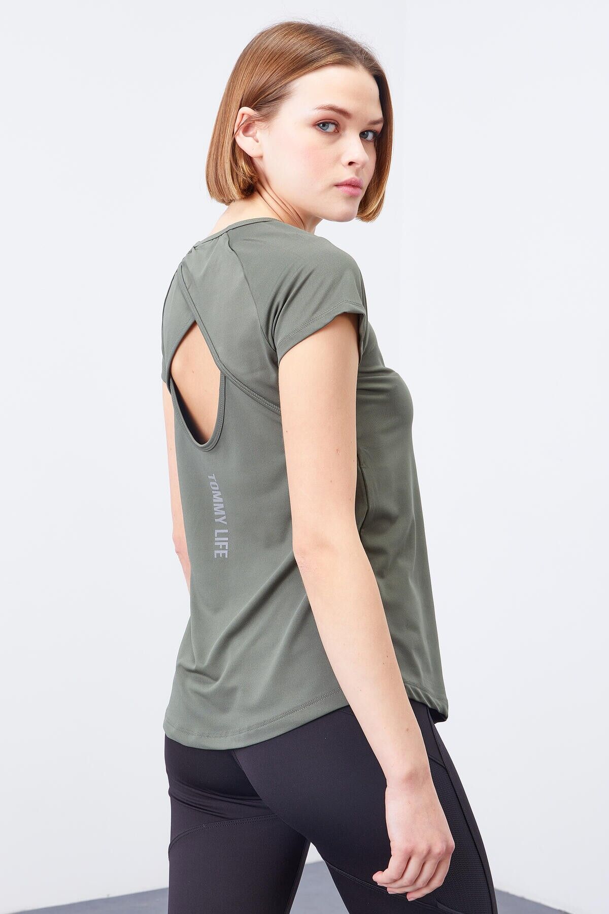 TommyLife Çağla Sırt Pencereli Kısa Kol Standart Kalıp O Yaka Kadın T-Shirt - 97101