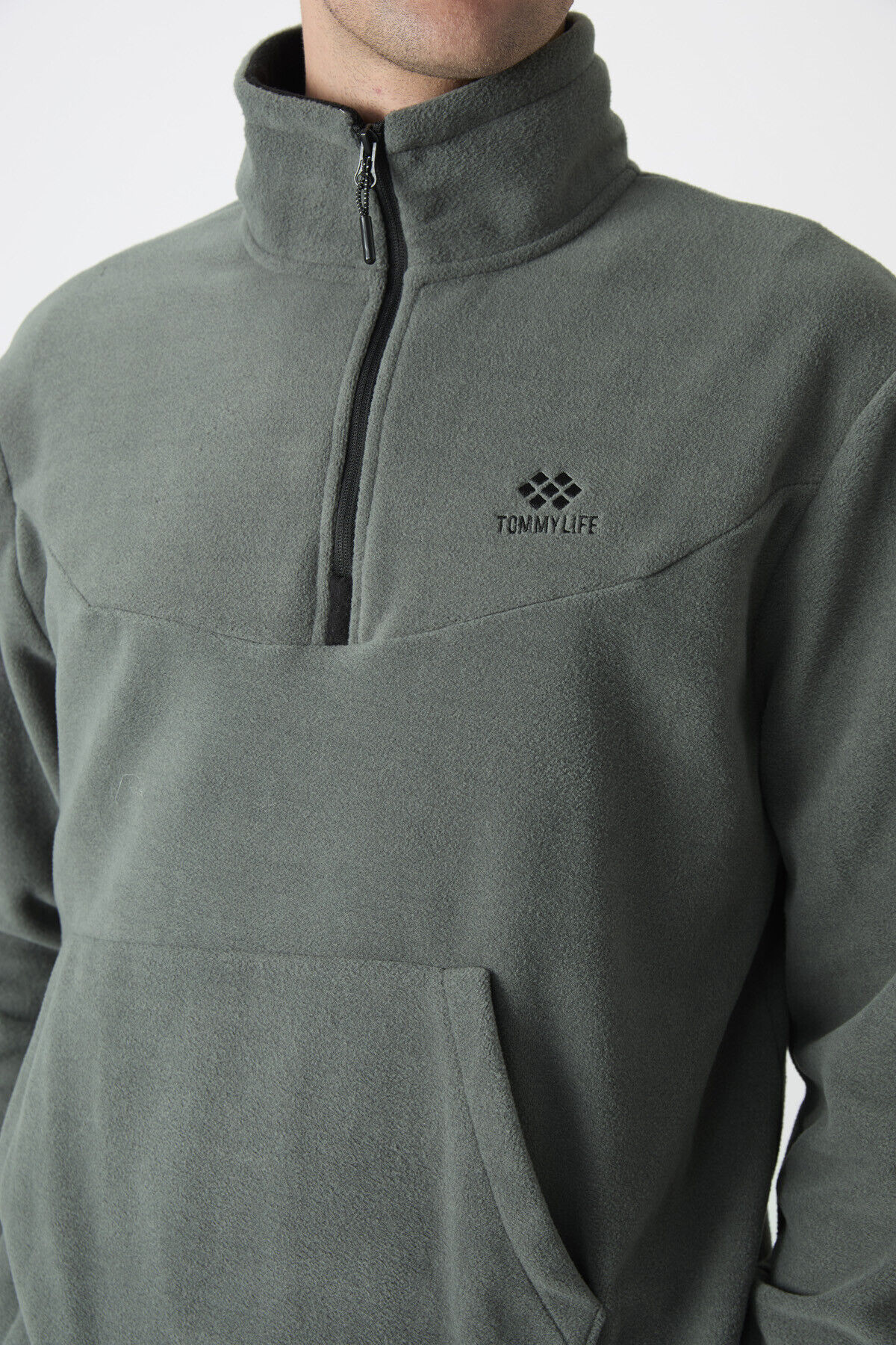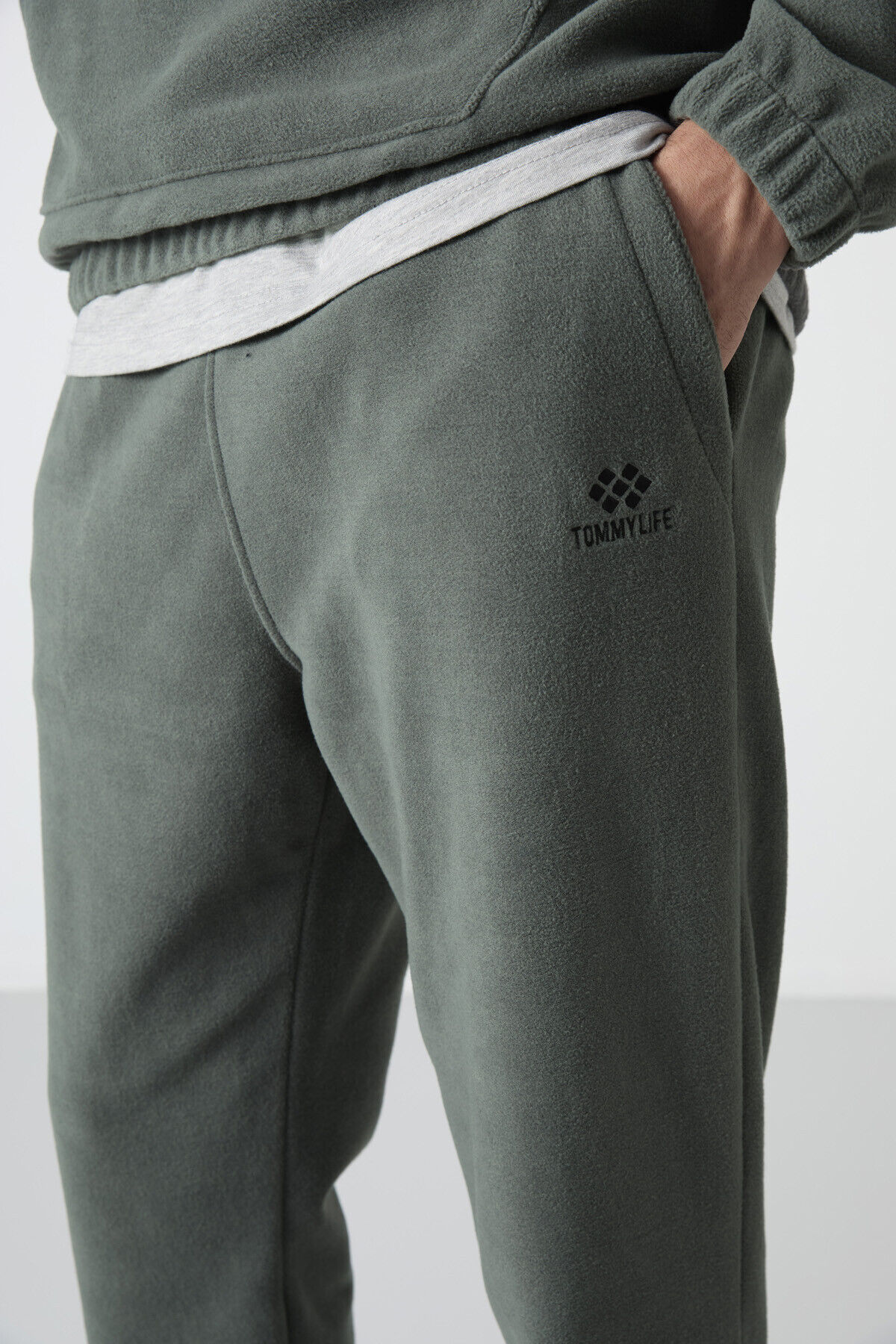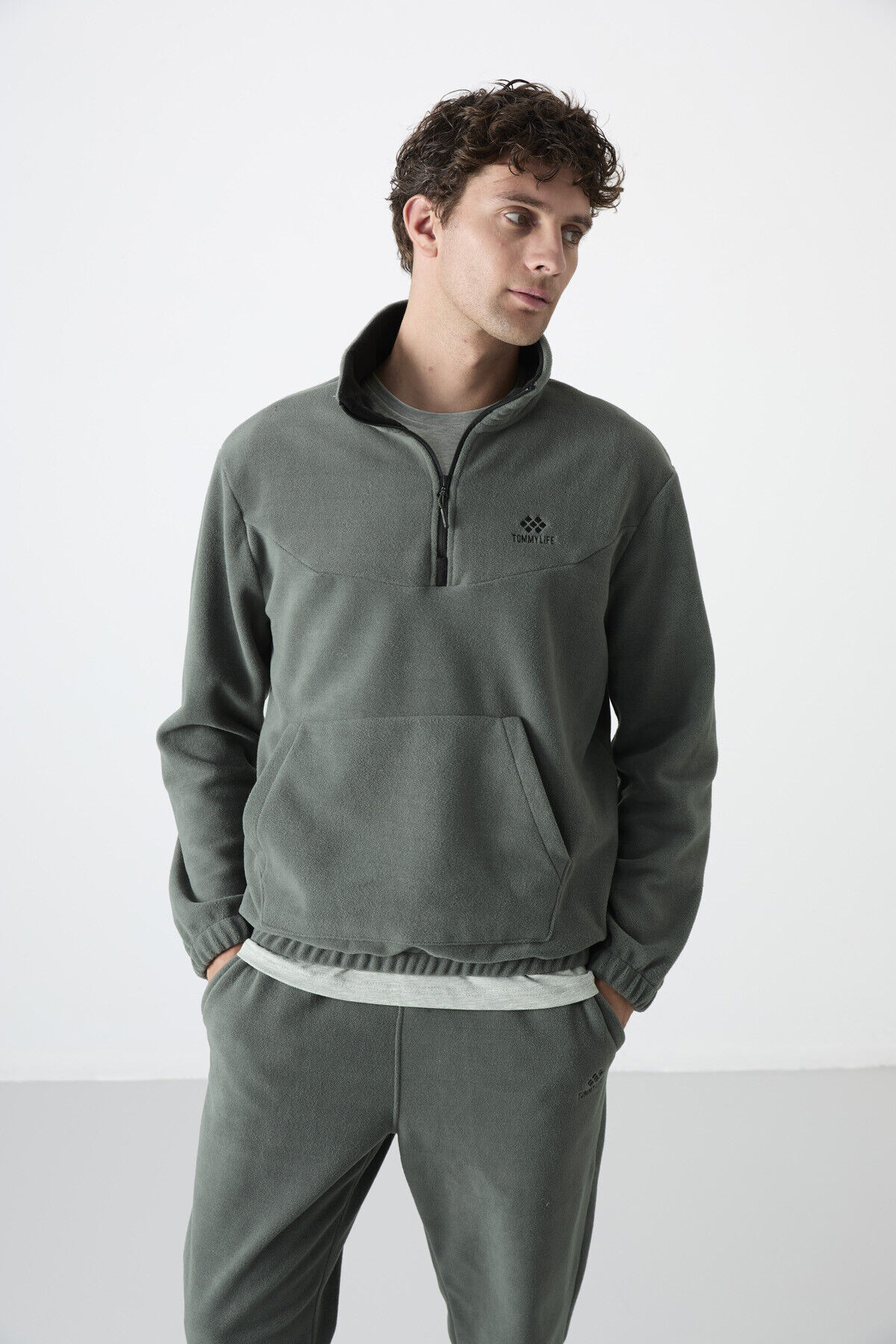 TommyLife Çağla Yarım Fermuar Dik Yaka Lastik Paça Polar Erkek Eşofman Takımı - 85159