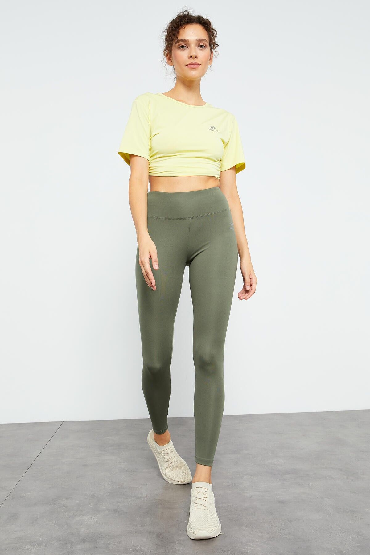 TommyLife Çağla Yüksek Bel Streç Slim Fit Dar Paça Kadın Tayt - 94545