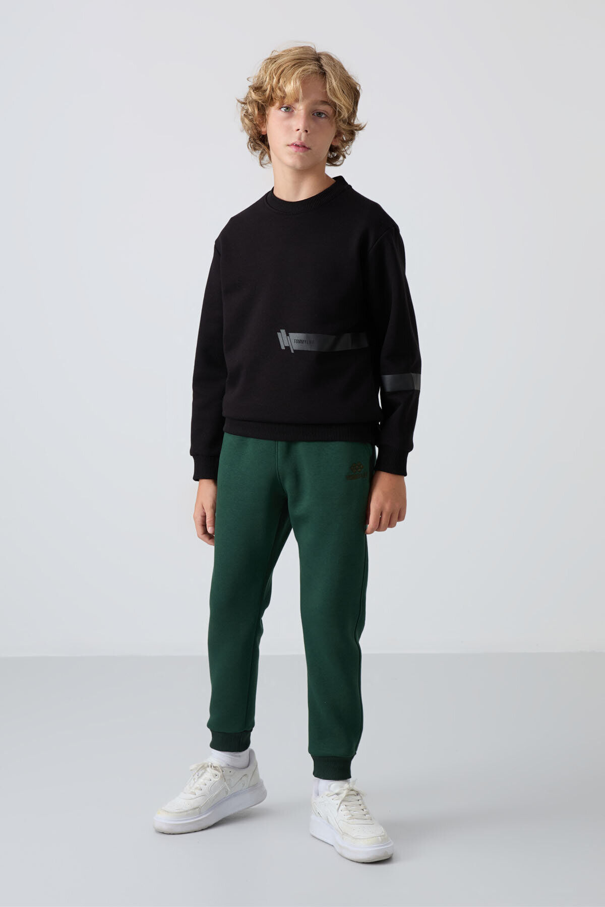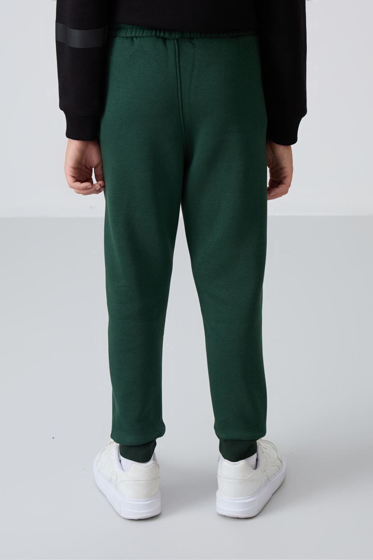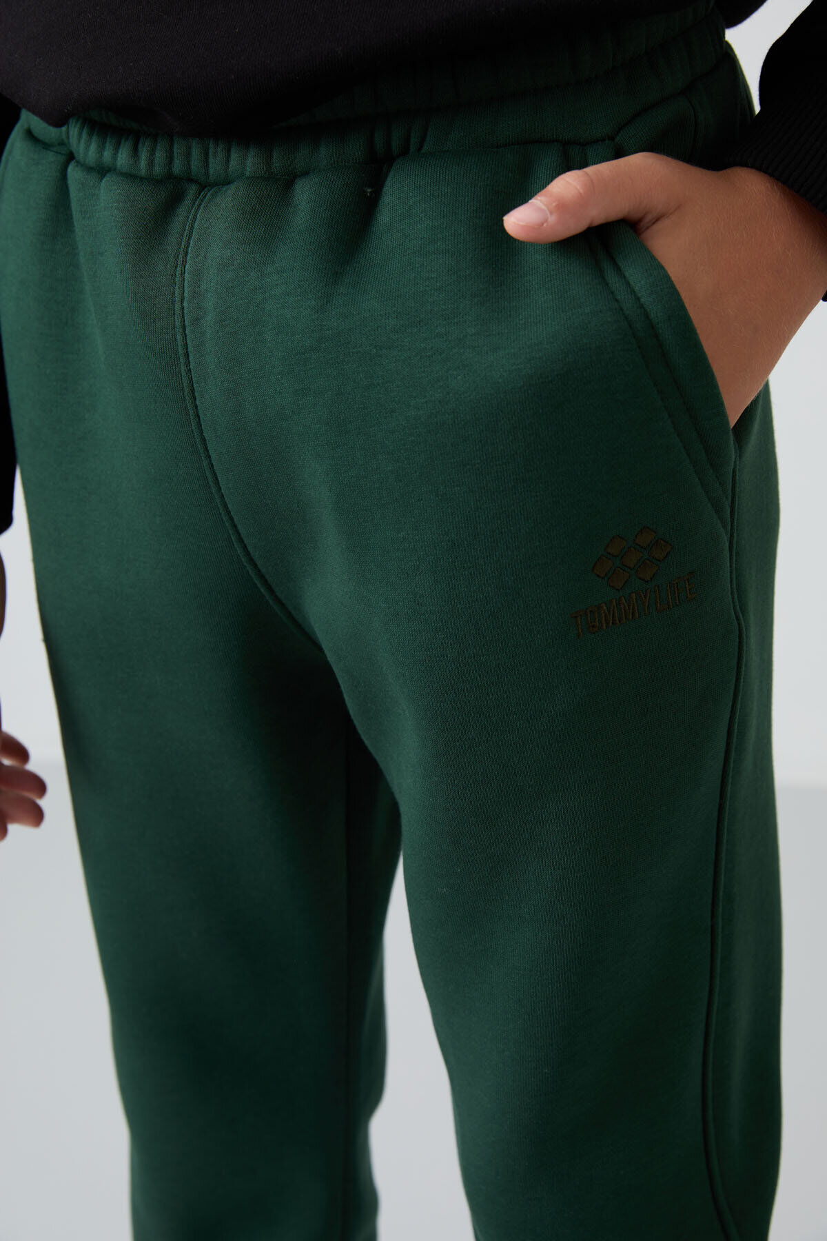 TommyLife Çam Yeşil Pamuklu Kalın İçi Tüylü Standart Fit Nakışlı Erkek Çocuk Eşofman Alt - 11224