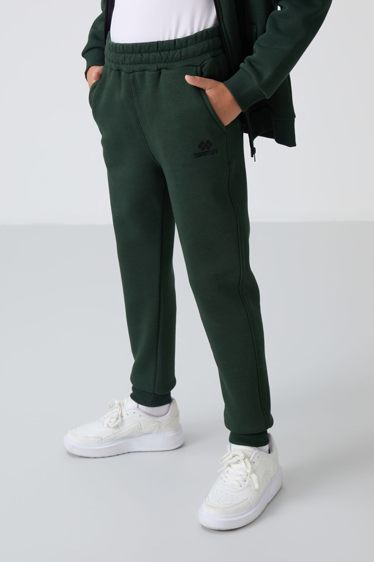 TommyLife Çam Yeşil Pamuklu Kalın İçi Tüylü Standart Fit Nakışlı Erkek Çocuk Eşofman Takım - 11256