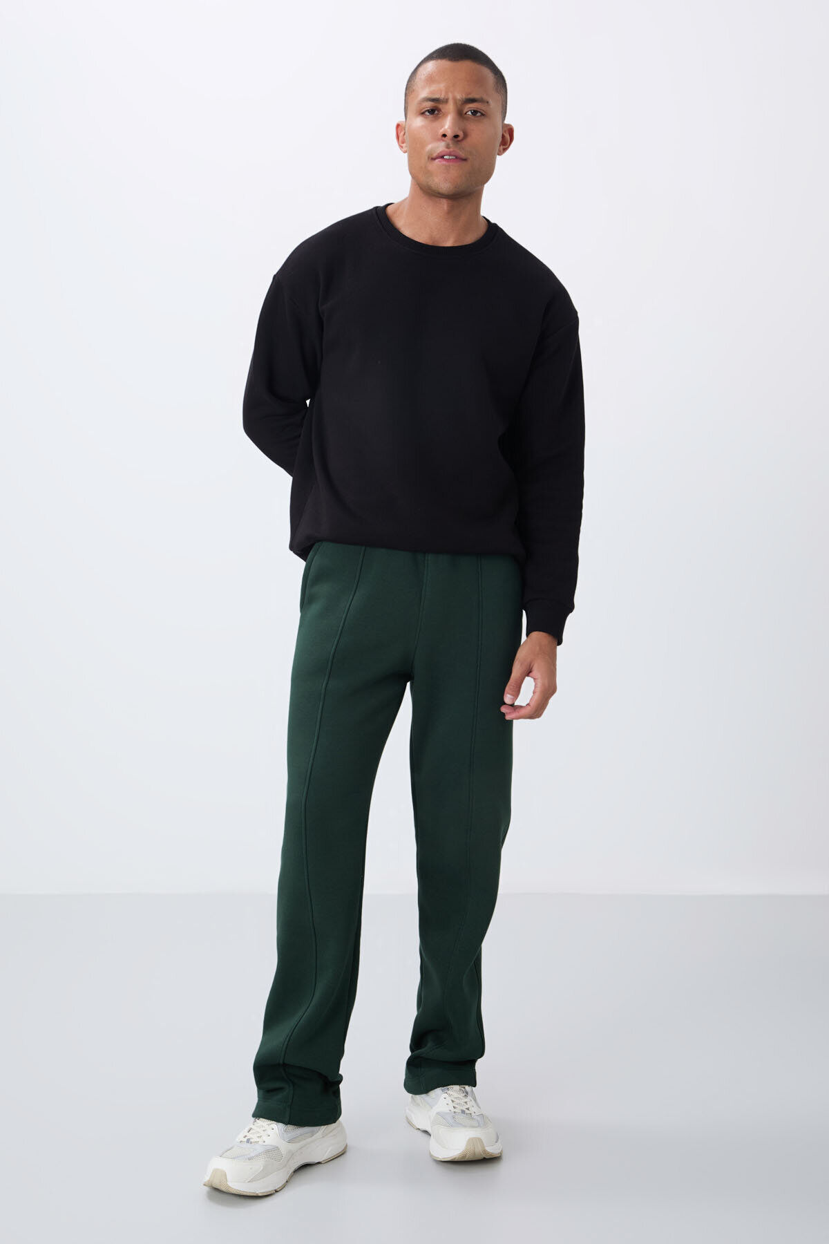 TommyLife Çam Yeşil Pamuklu Kalın İçi Tüylü Yumuşak Dokulu Oversize Nakışlı Erkek Eşofman Altı -82146