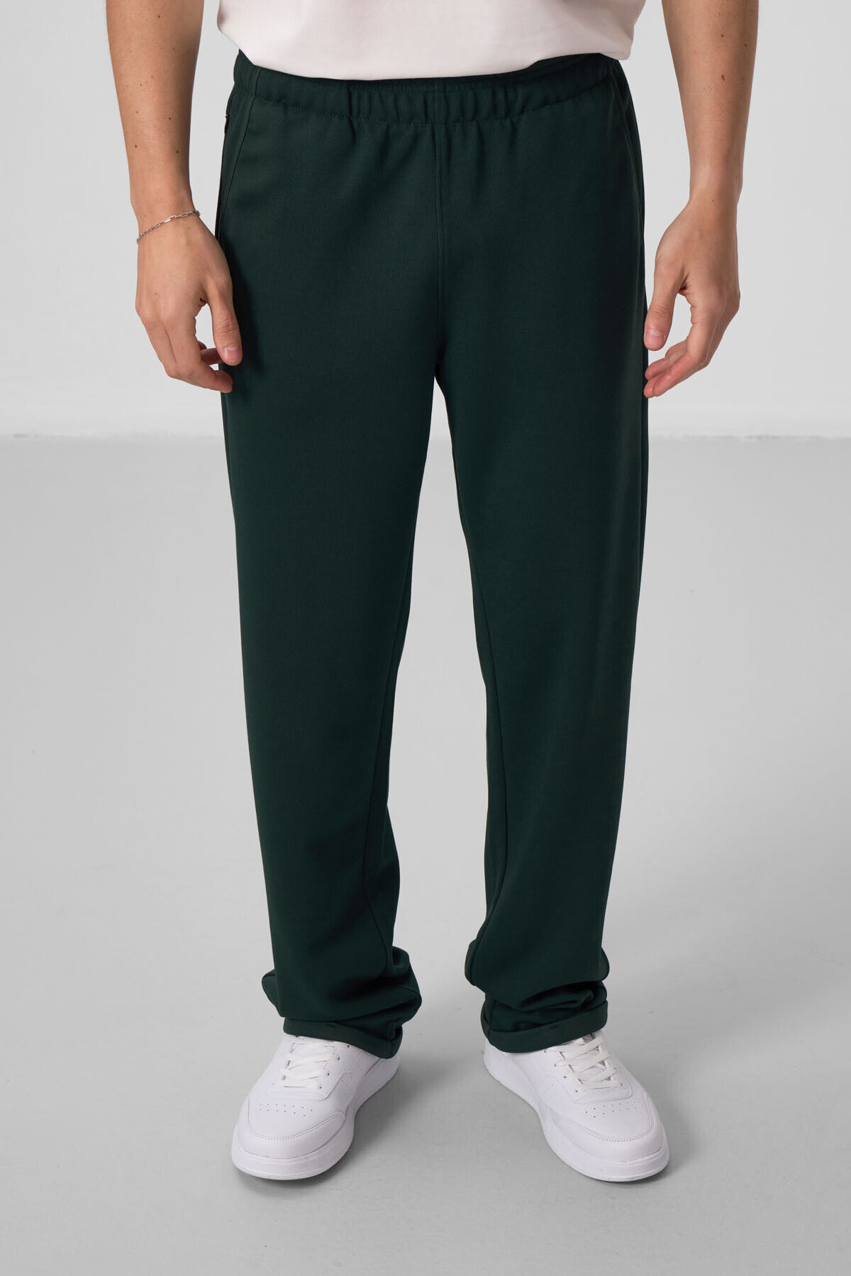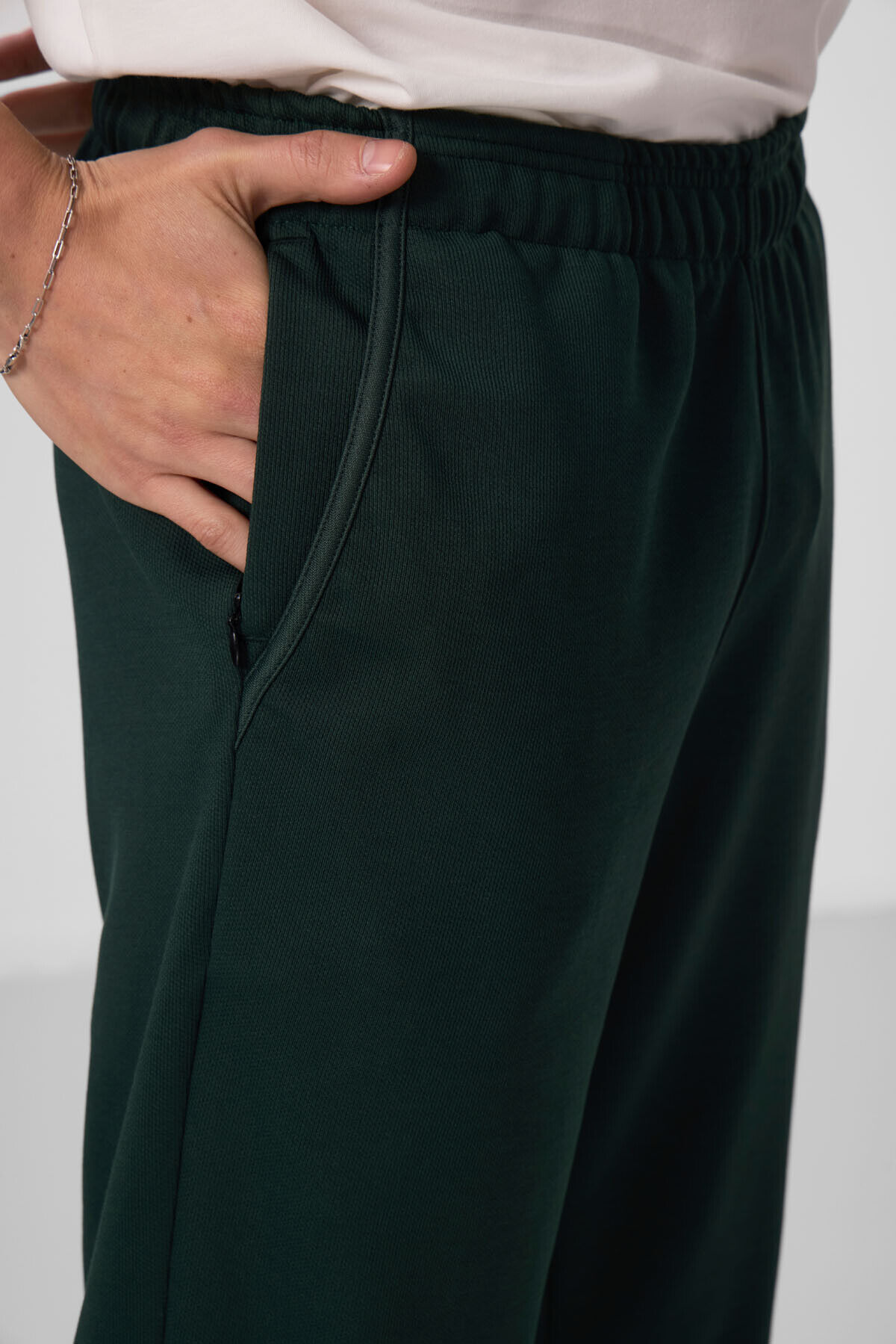 TommyLife Çam Yeşili Yüzeyi Dokulu Rahat Form Palazzo Erkek Pantolon - 82164