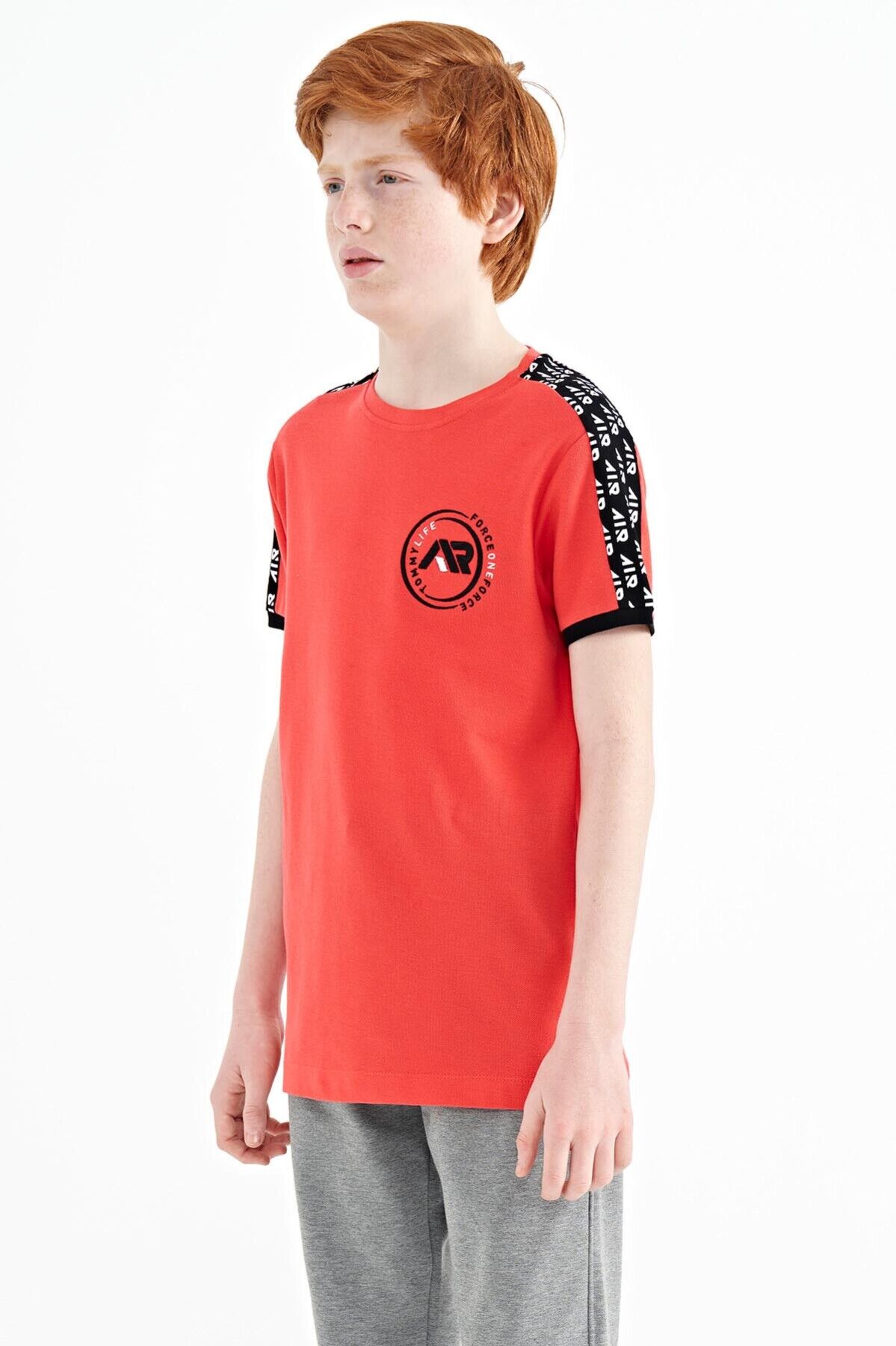 TommyLife Coral Omuz Baskı Detaylı Standart Kalıp O Yaka Erkek Çocuk T-Shirt - 11121