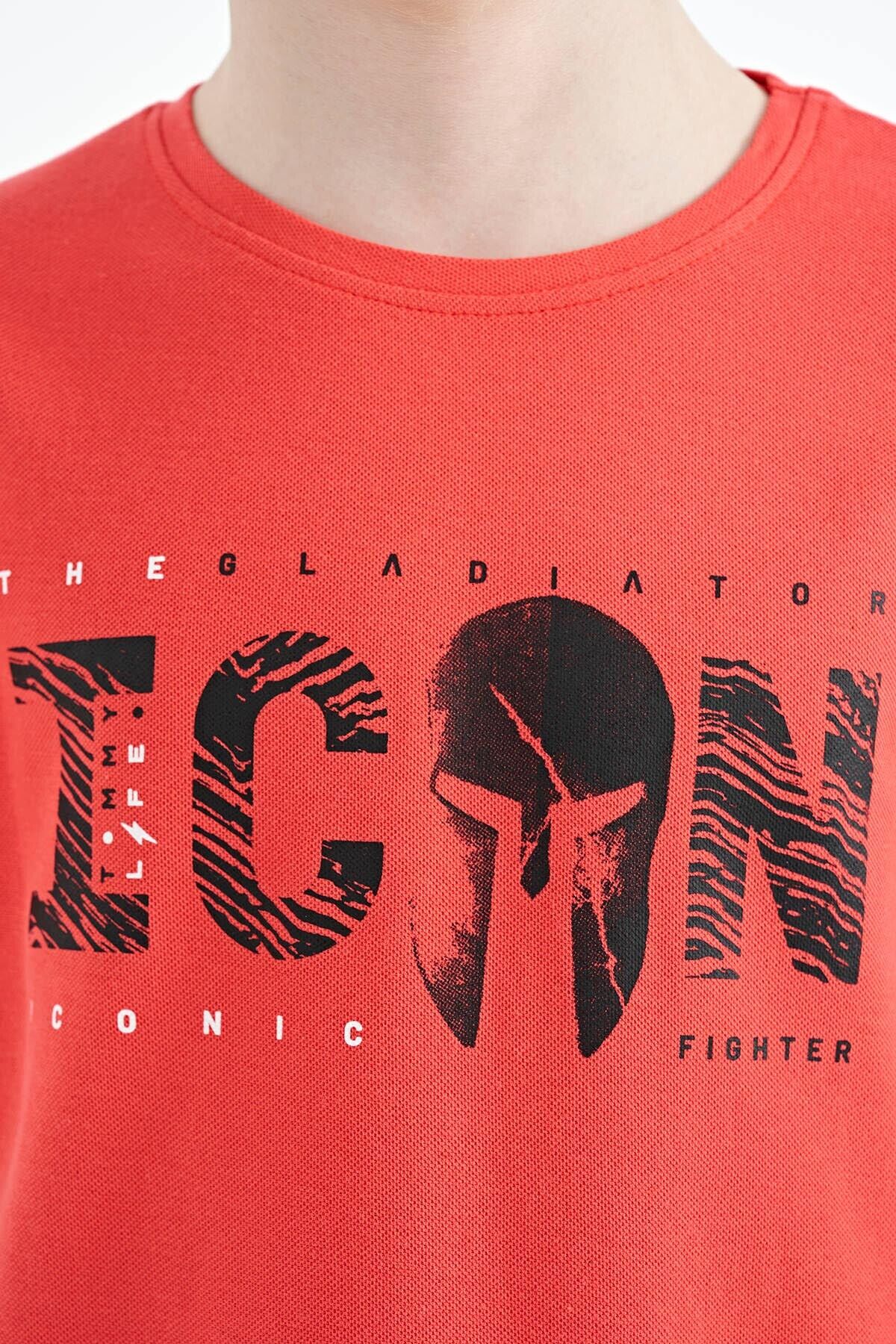 TommyLife Coral Ön Yazı Nakışlı O Yaka Standart Kalıp Erkek Çocuk T-Shirt - 11118