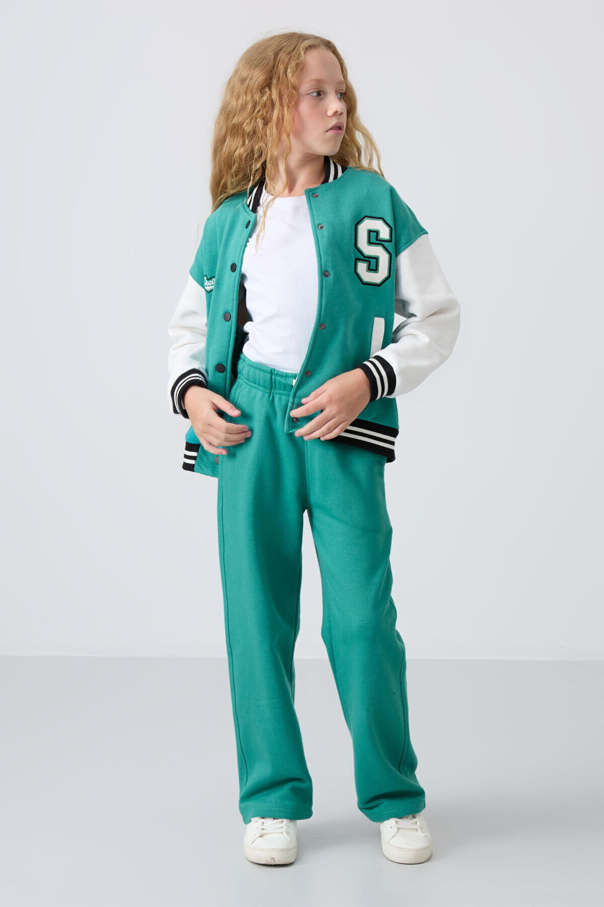 TommyLife Deniz Yeşil Pamuklu İçi Tüylü Yumuşak Dokulu Standart Fit Nakışlı Kız Çocuk Eşofman Alt - 75146