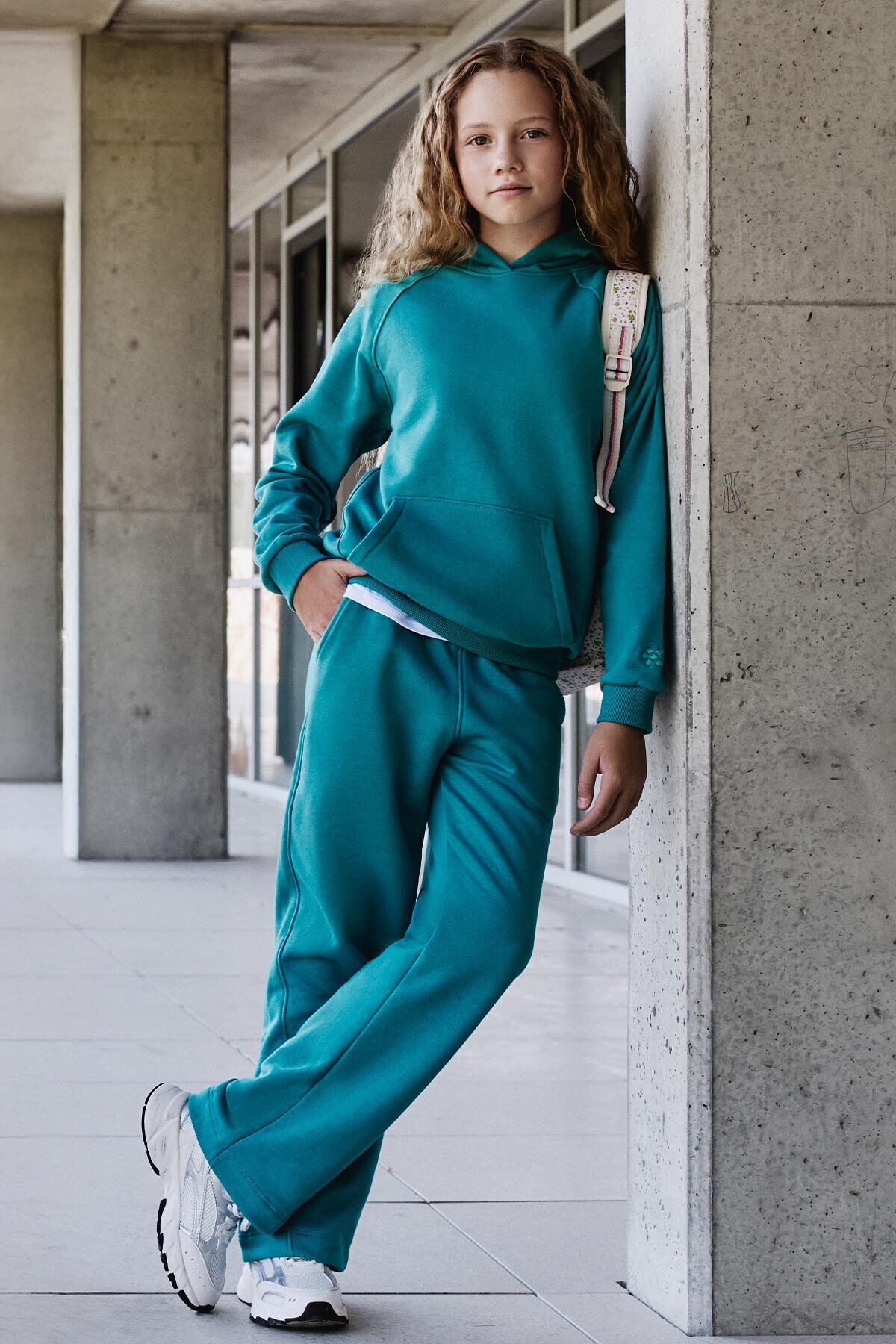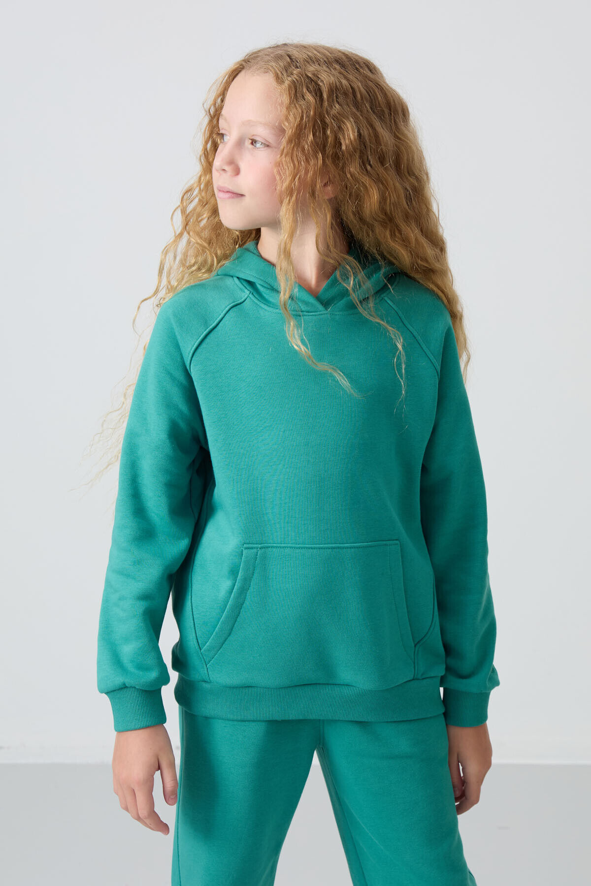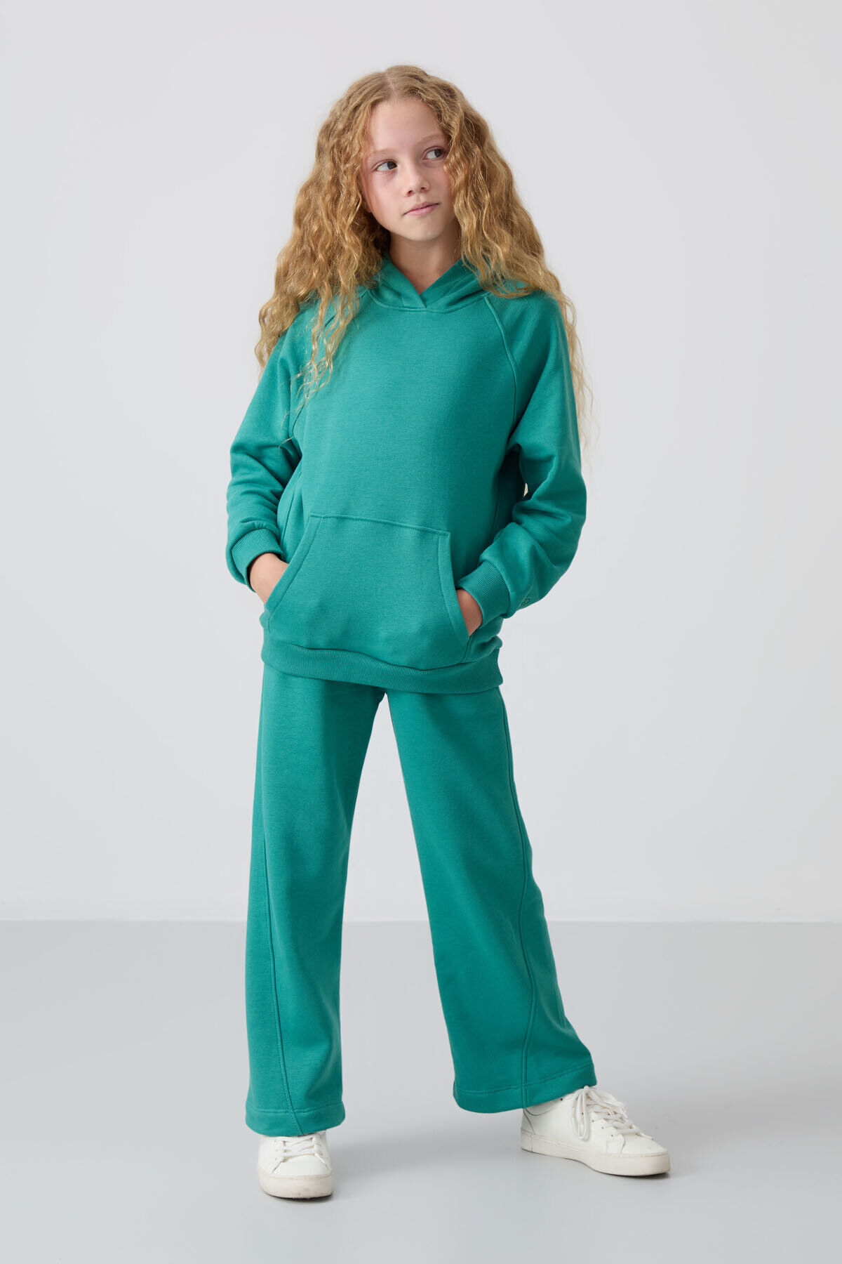 TommyLife Deniz Yeşil Pamuklu İçi Tüylü Yumuşak Dokulu Standart Fit Nakışlı Kız Çocuk Eşofman Takım - 75162