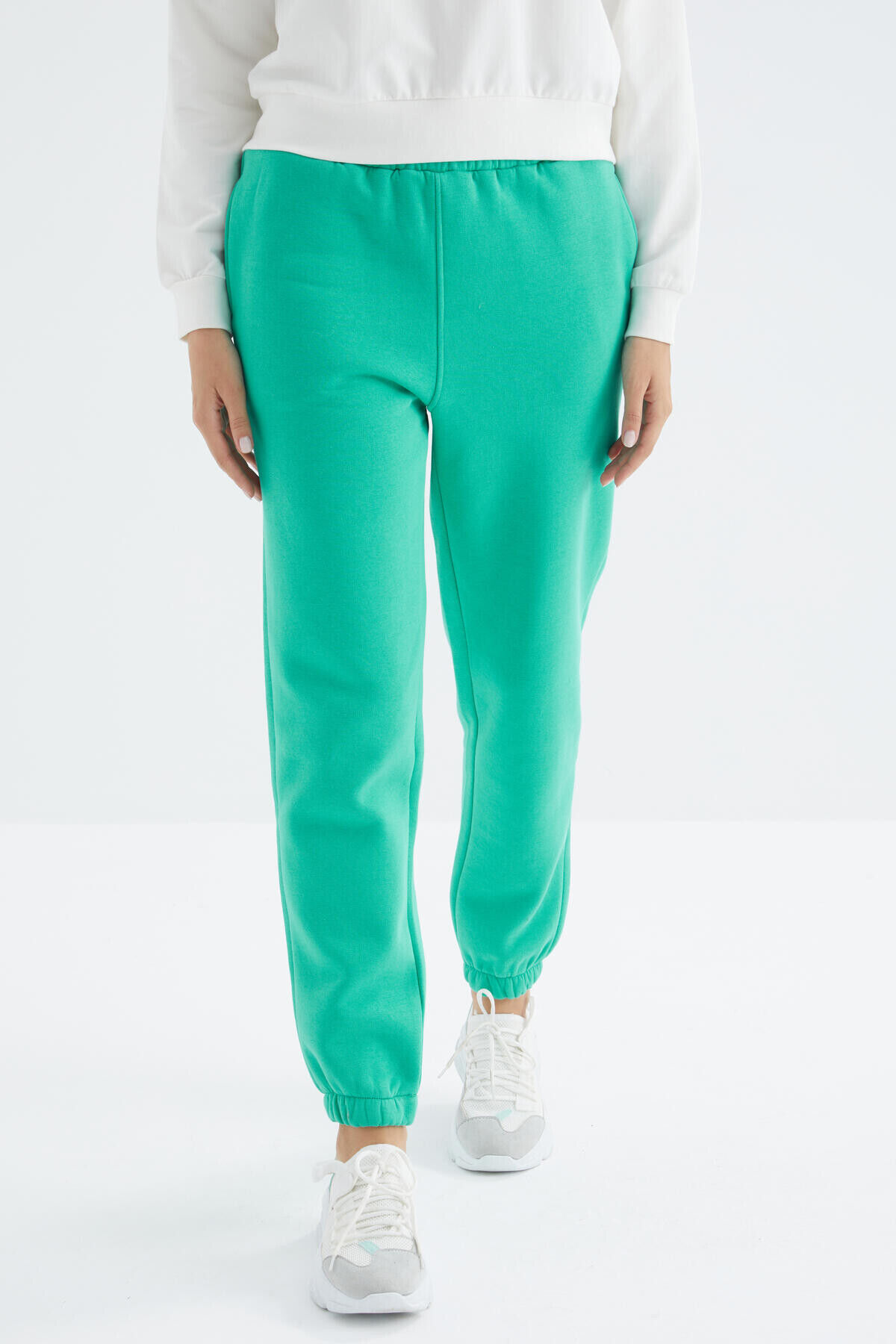 TommyLife Deniz Yeşili Yüksek Bel Şardonlu 3 İplik Pamuklu Basic Kadın Eşofman Alt - 94624