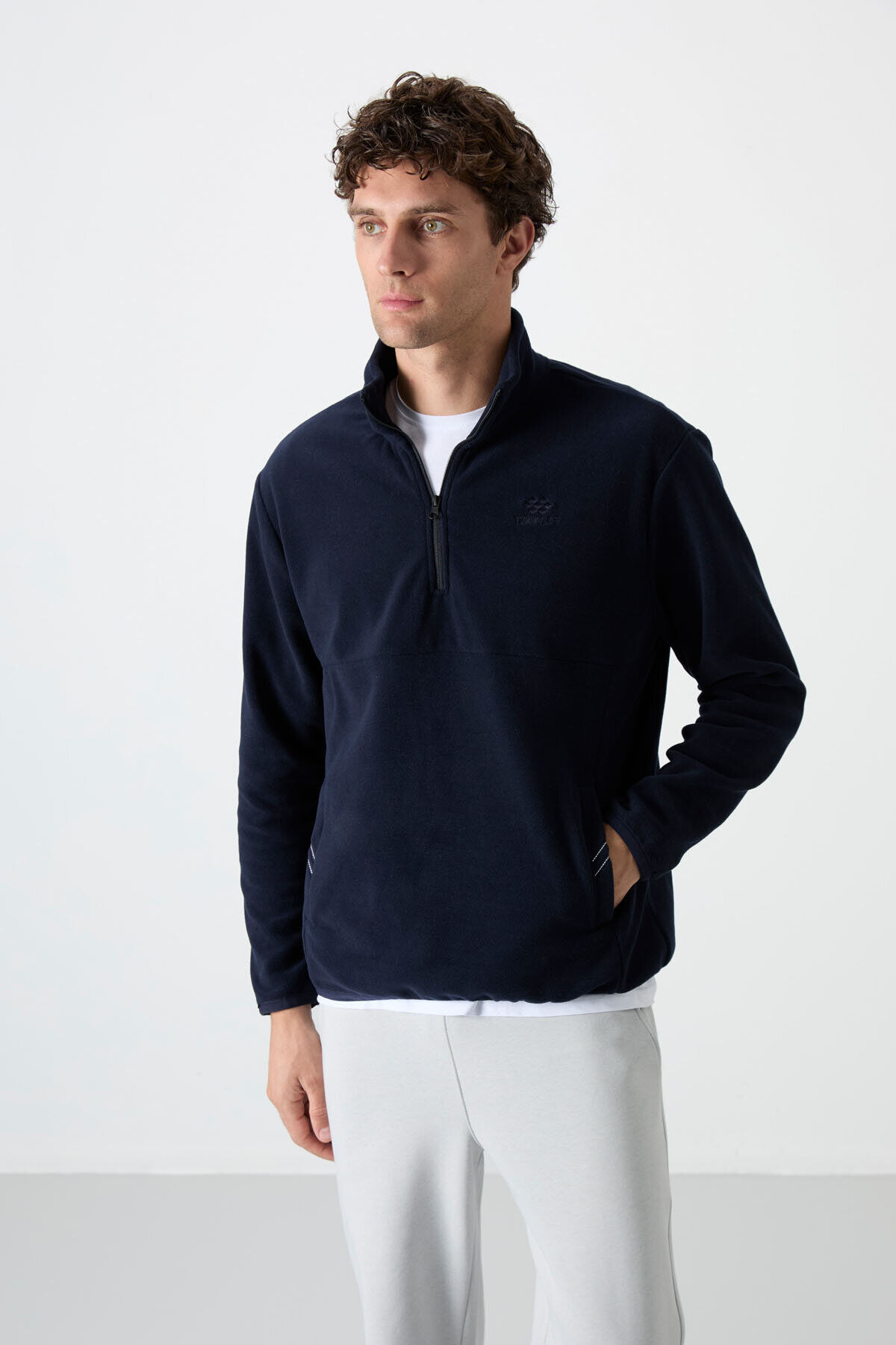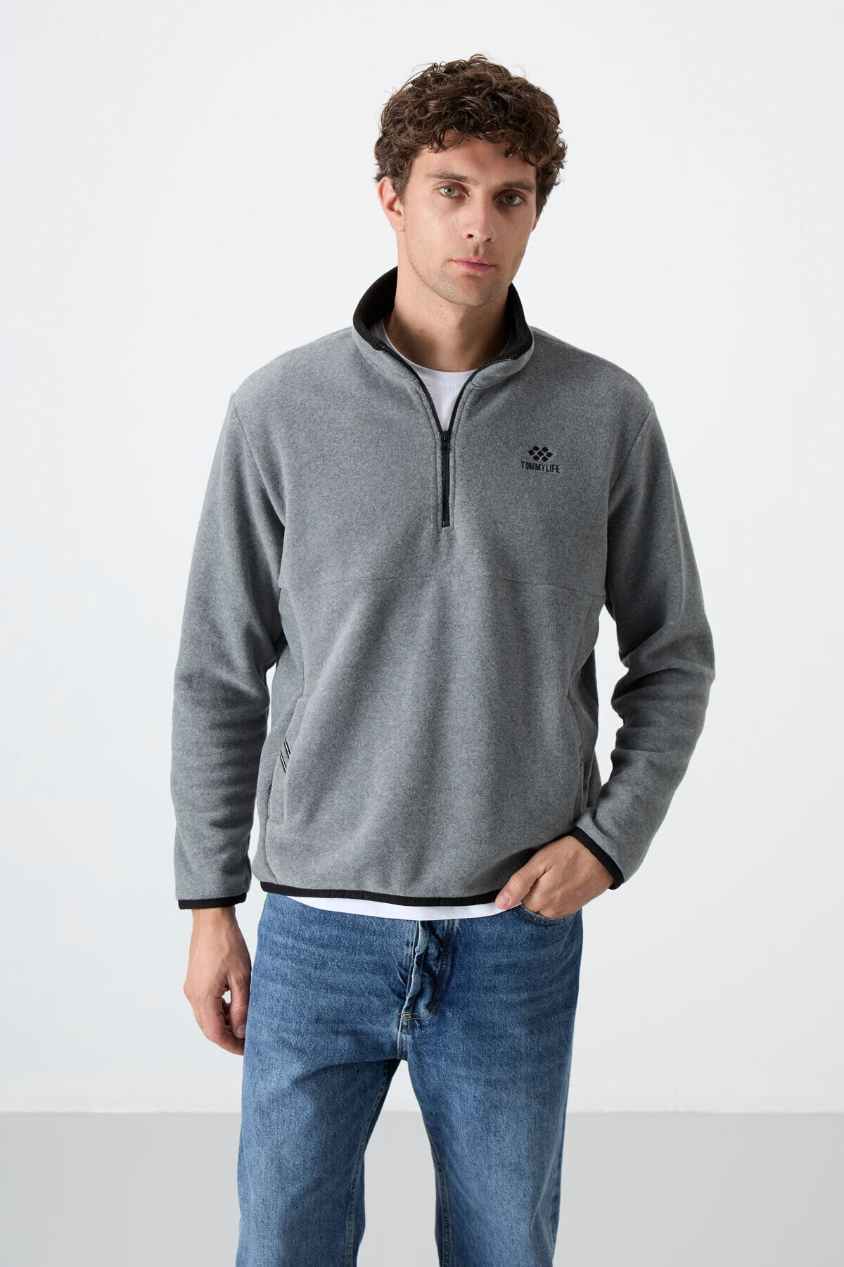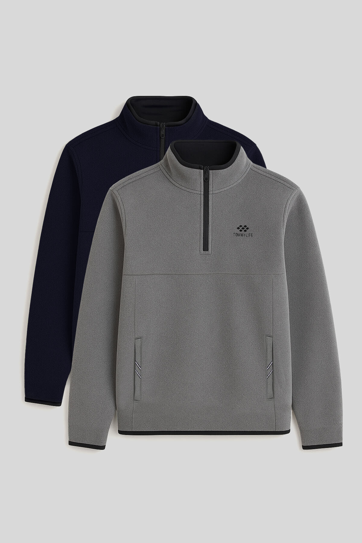 TommyLife Dik Yaka Yarım Fermuarlı 2li Paket Lacivert-Gri Melanj Erkek Polar Sweatshirt - 87891