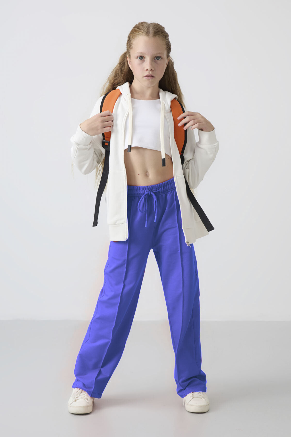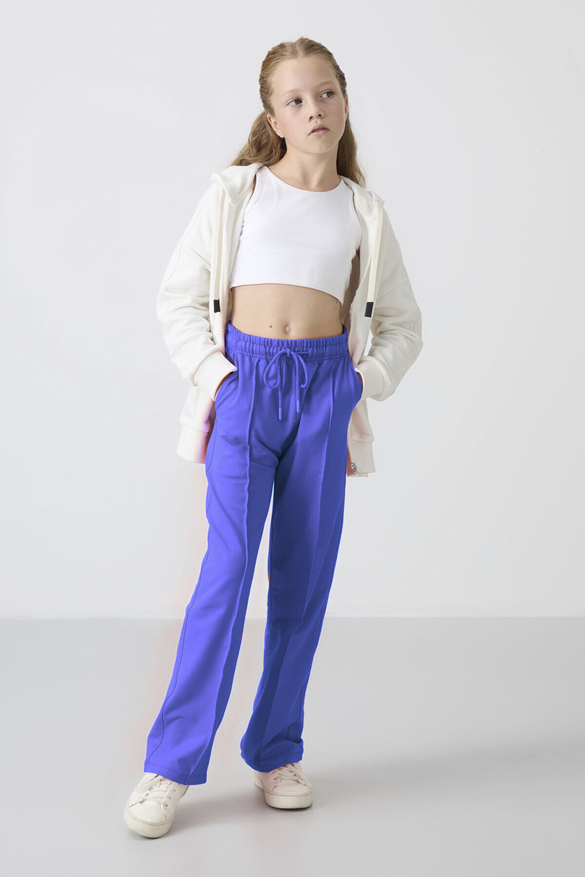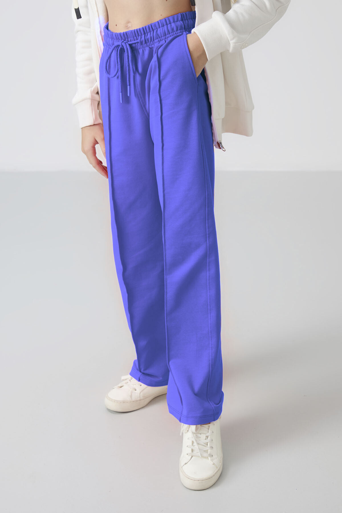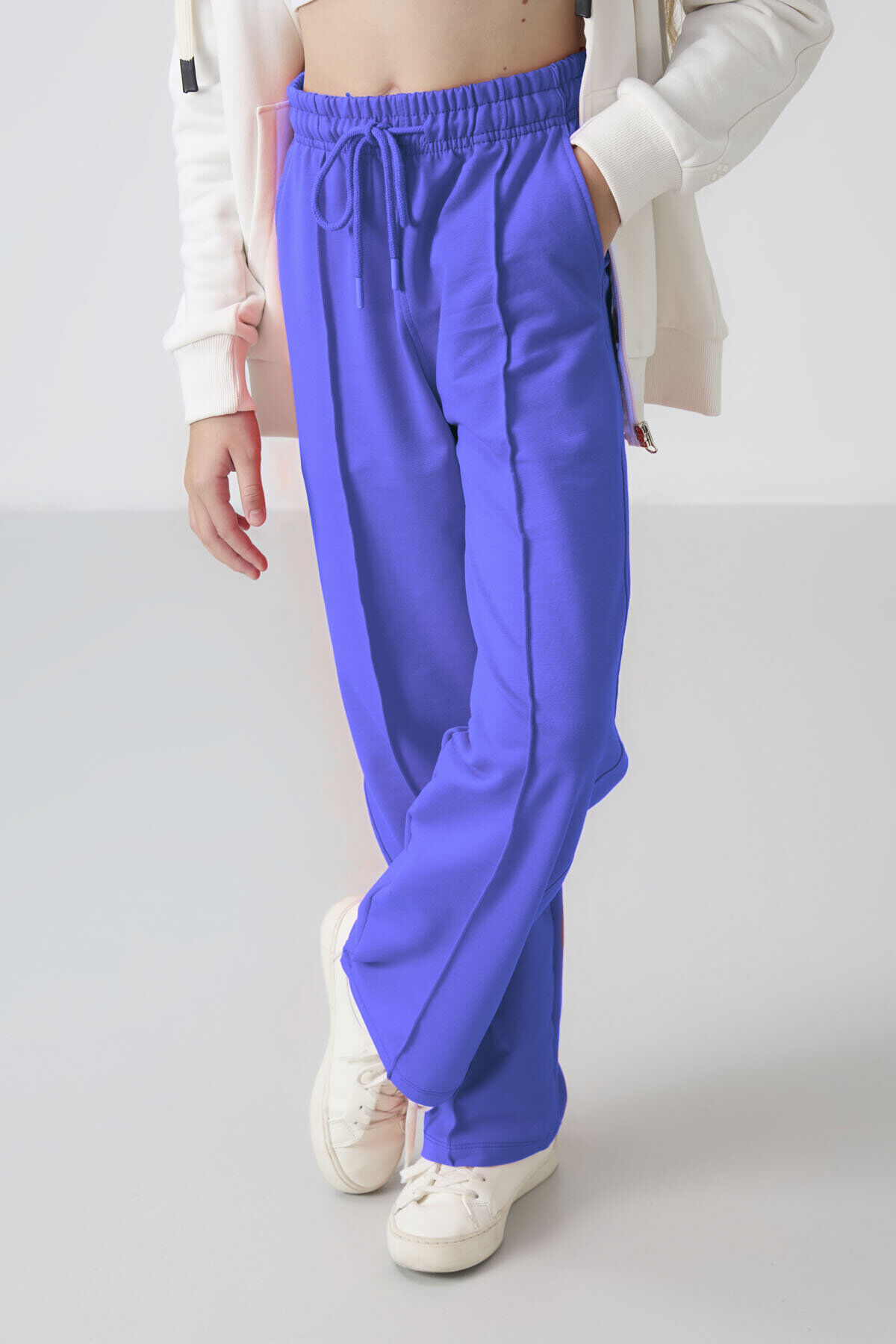 TommyLife Eflatun Cepli Ön Dikiş Detaylı Geniş Paça Kız Çocuk Eşofman Altı -75144