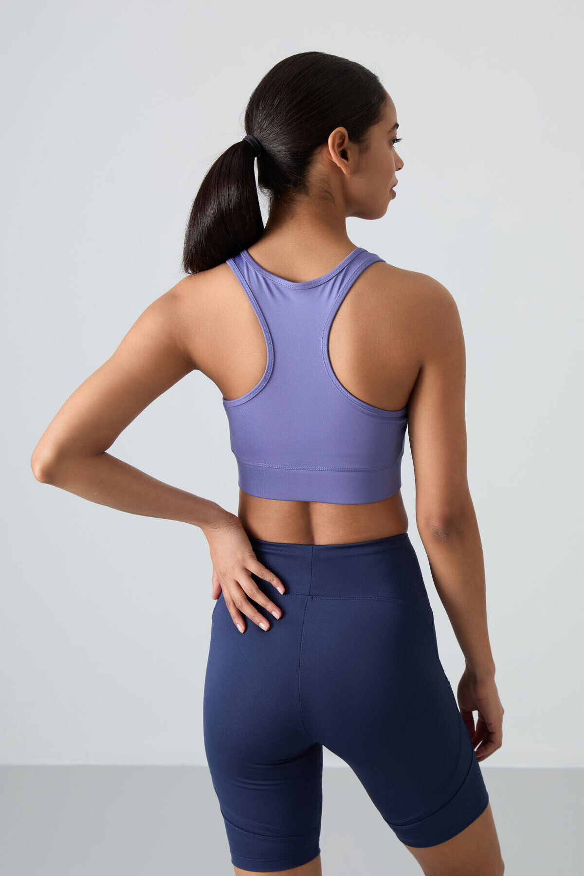 TommyLife Eflatun Sırt Detaylı Dar Kalıp U Yaka Kadın Spor Büstiyer - 97120
