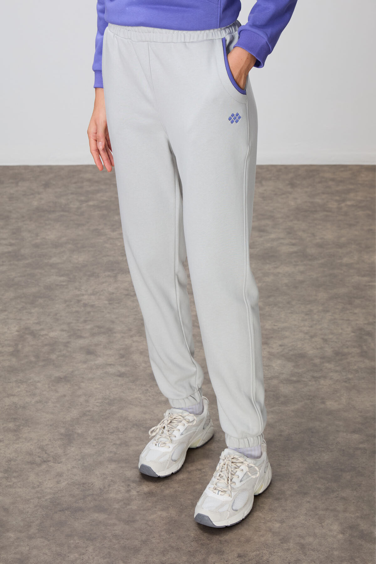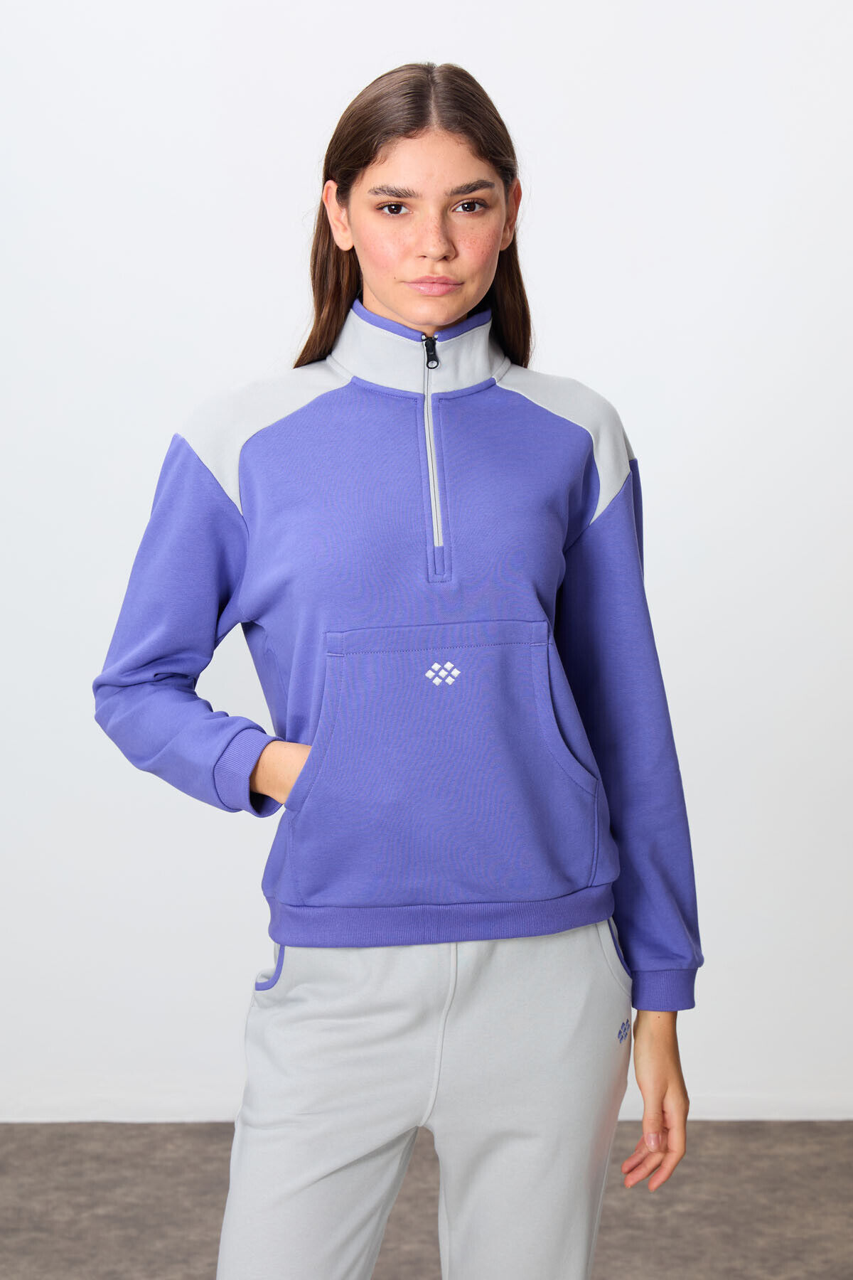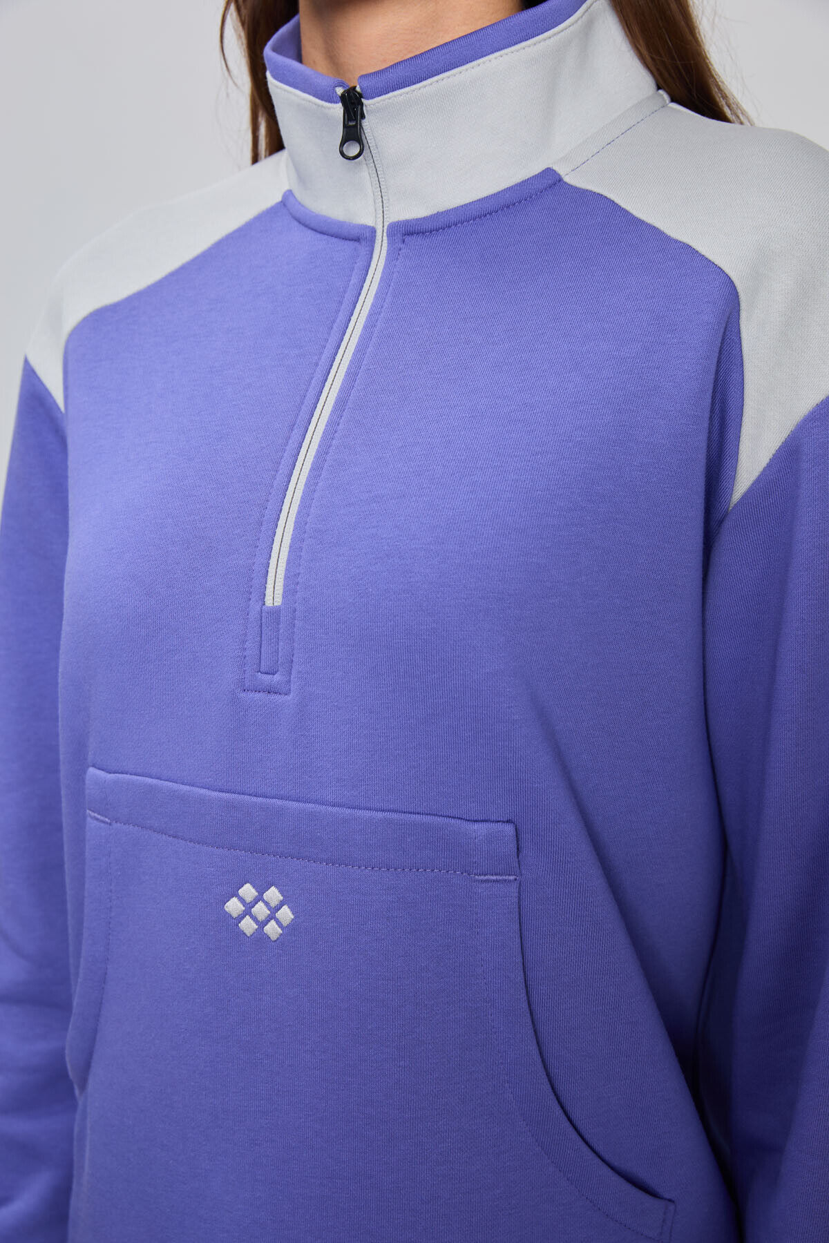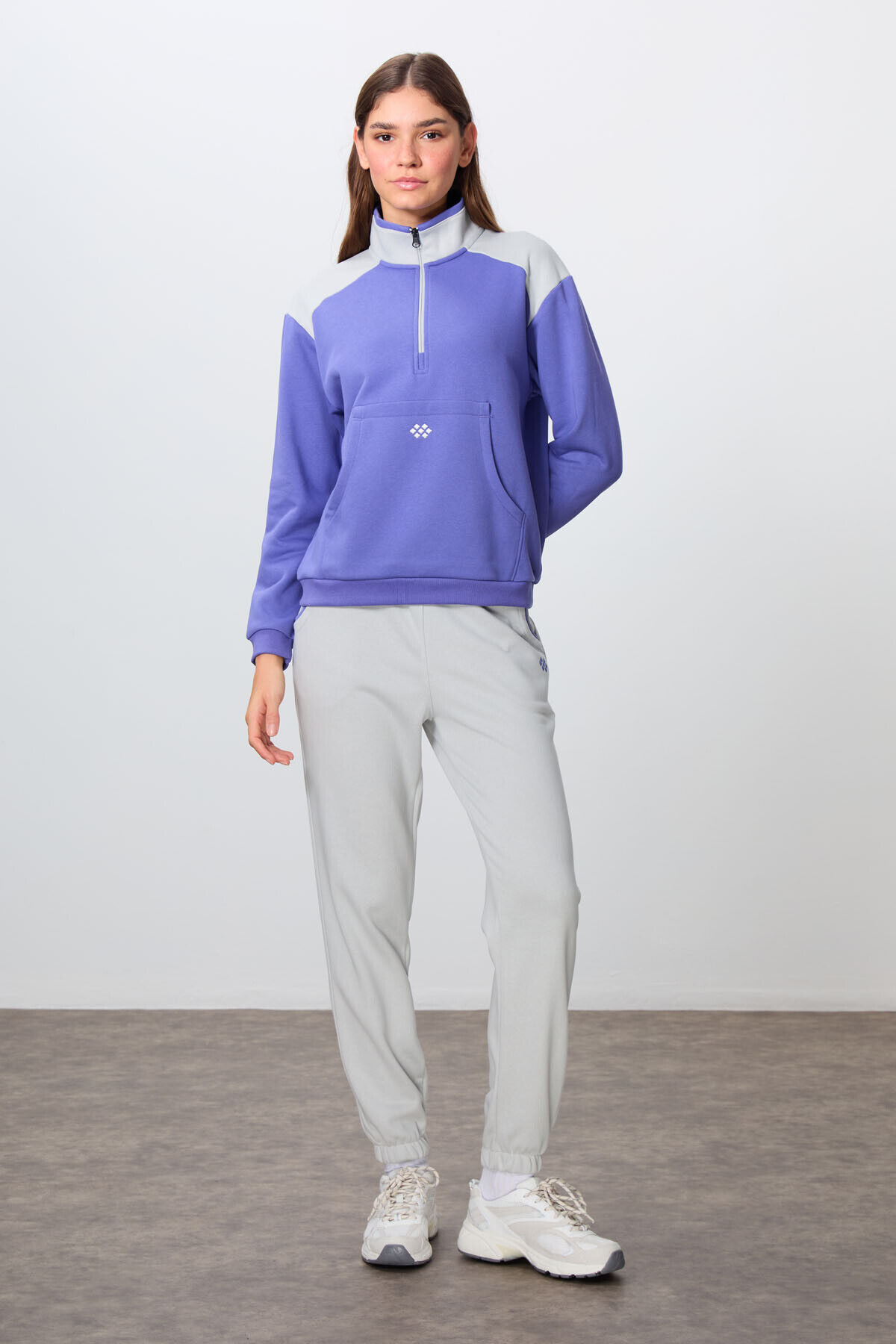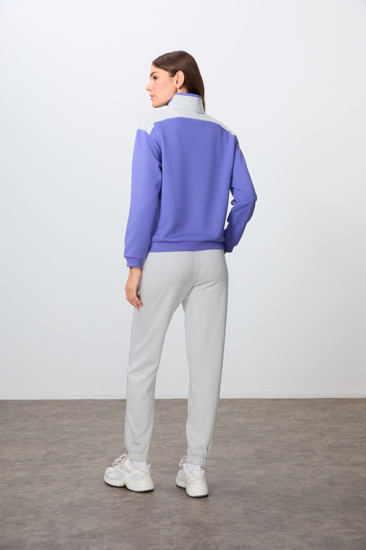 TommyLife Eflatun-Taş Kompakt Pamuklu Kalın Pürüzsüz Dokulu Dik Yaka Oversize Fit Kadın Eşofman Takım - 95342