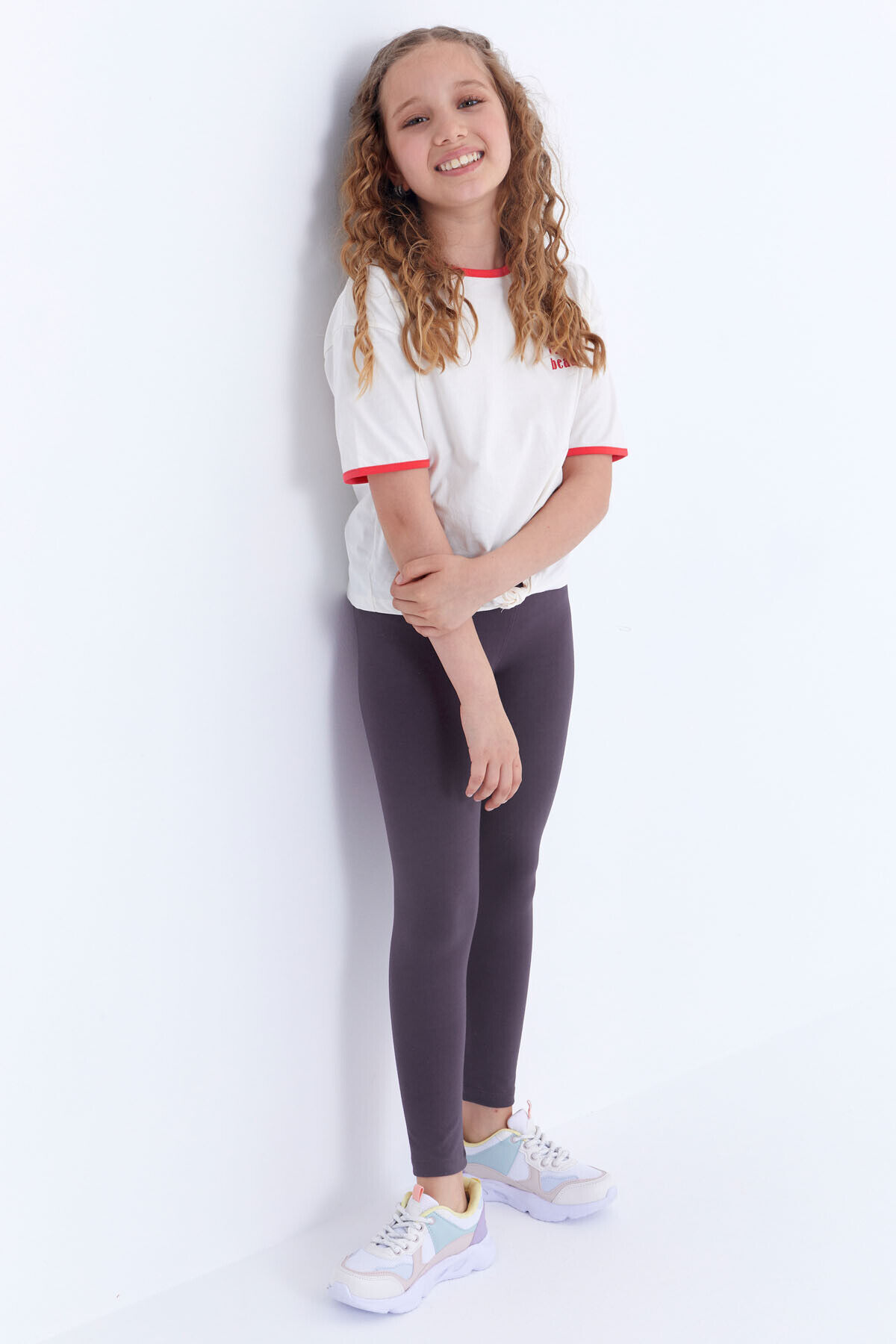 TommyLife Eflatun Yüksek Bel Dar Paça Kız Çocuk Tayt - 75047