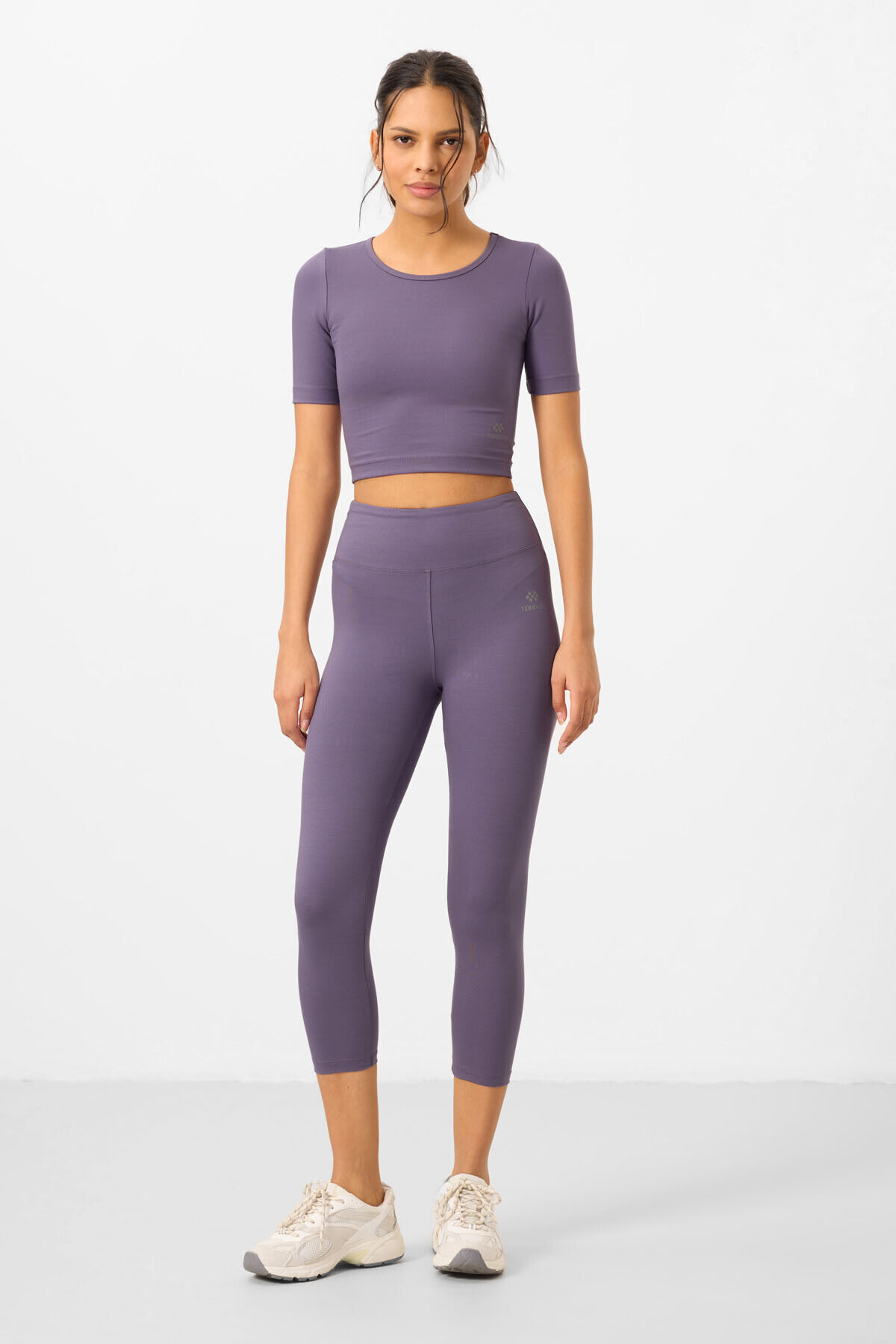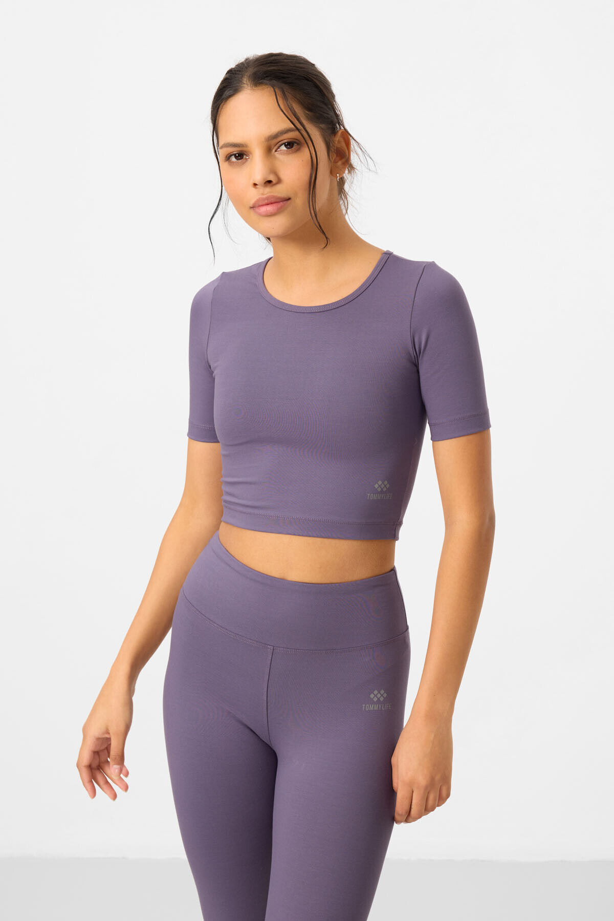 TommyLife Eflatun Yüksek Bel Kapri-Crop T-Shirt Slim Fit Kadın Tayt Takım - 95285
