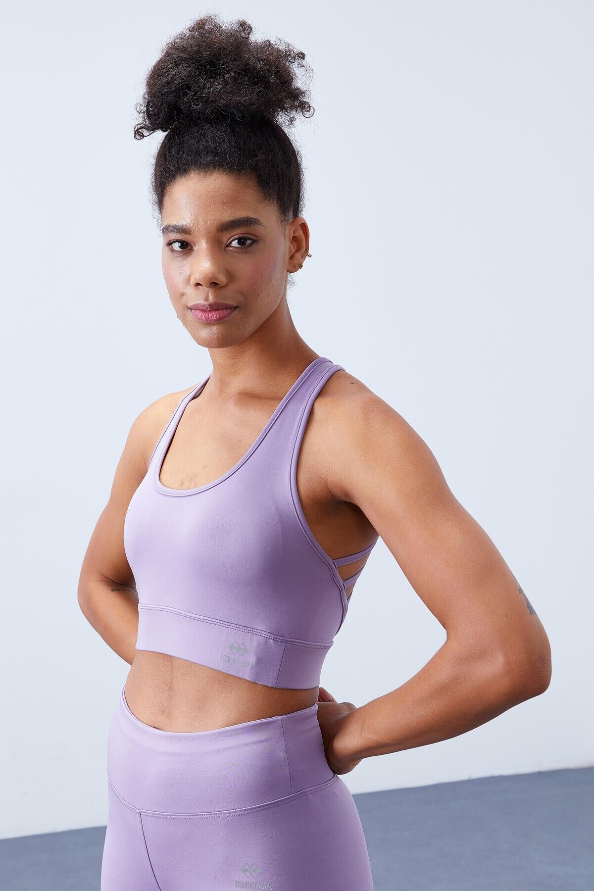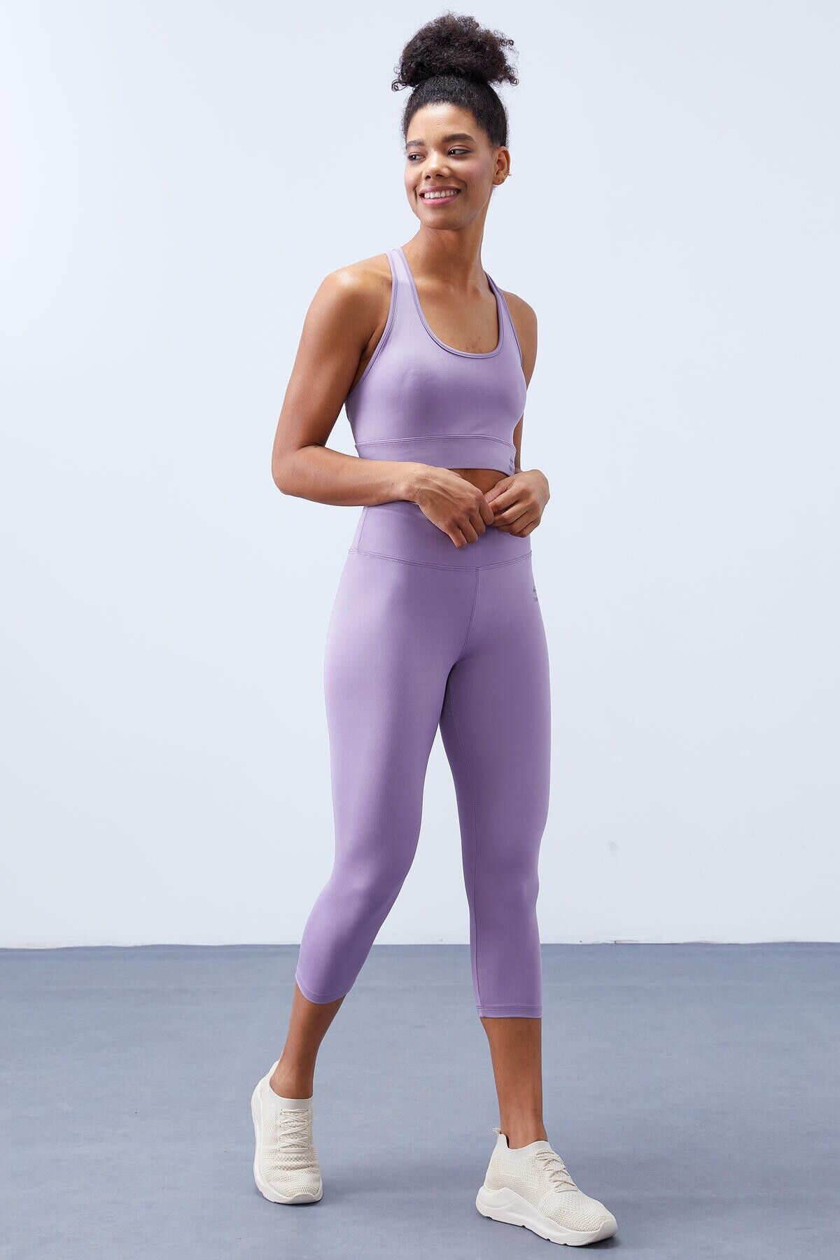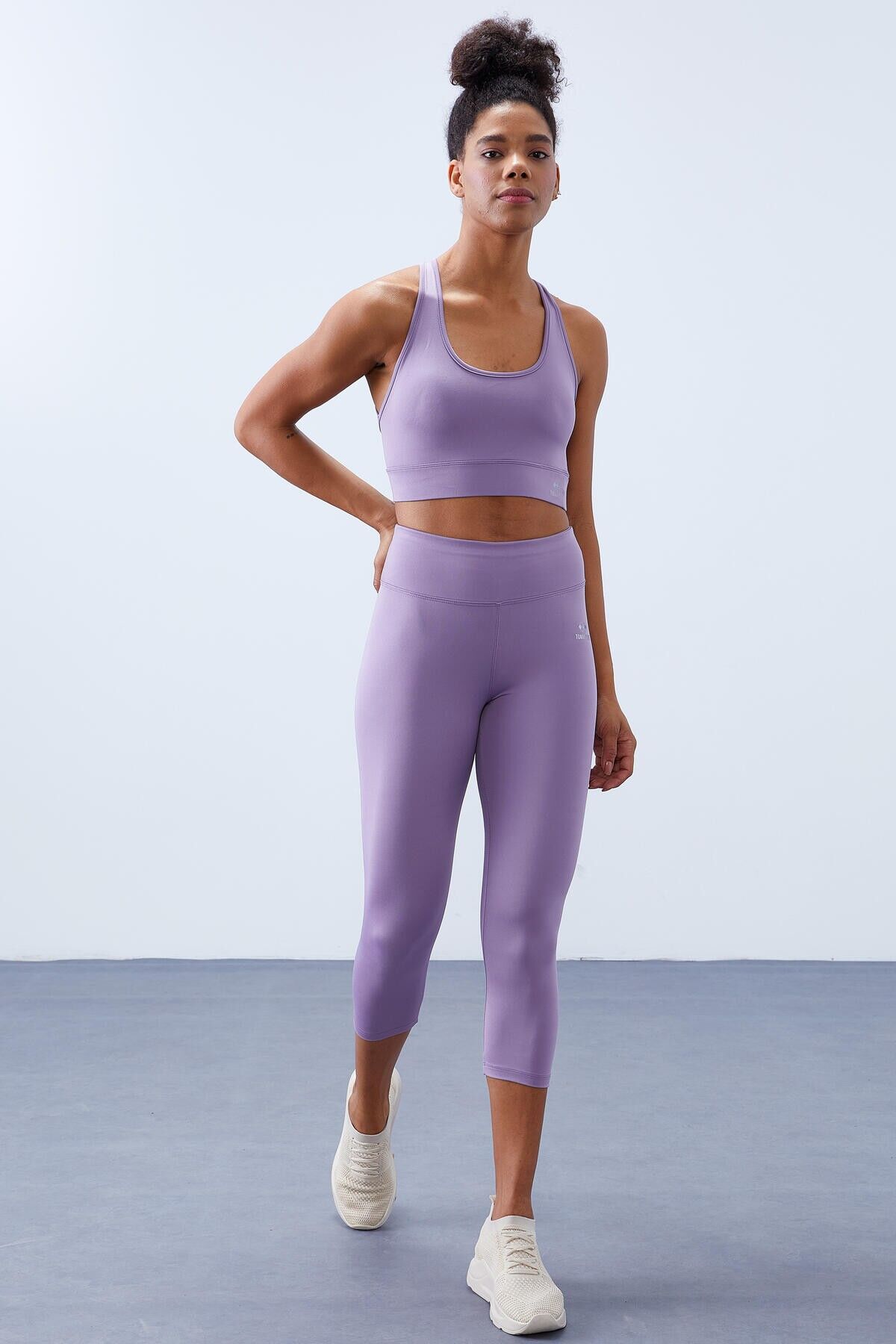 TommyLife Eflatun Yüksek Bel Toparlayıcı Çapraz Sırt Detaylı Slim Fit Kadın Tayt Takım - 95283