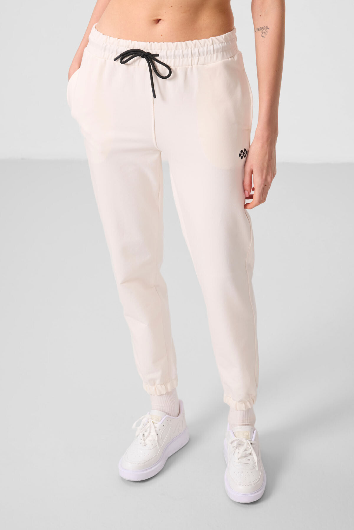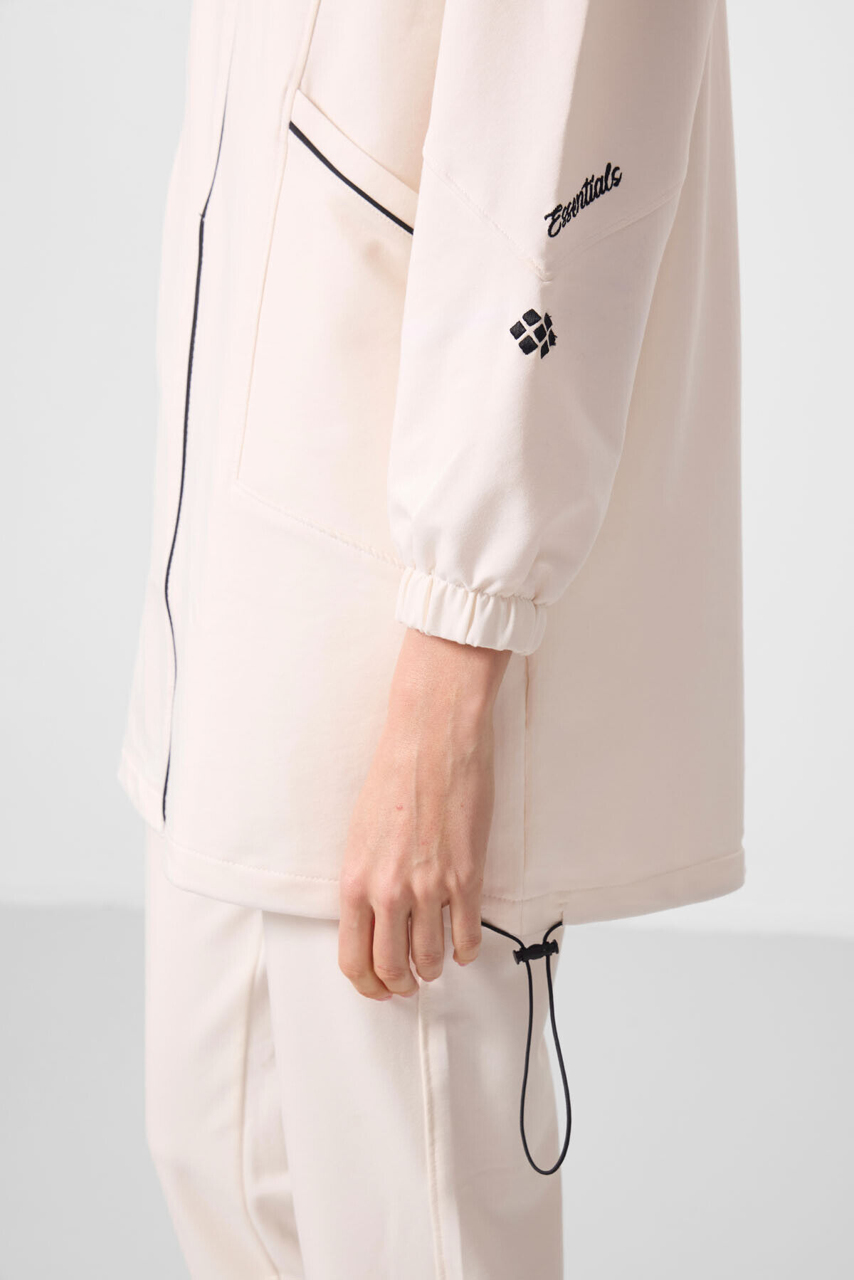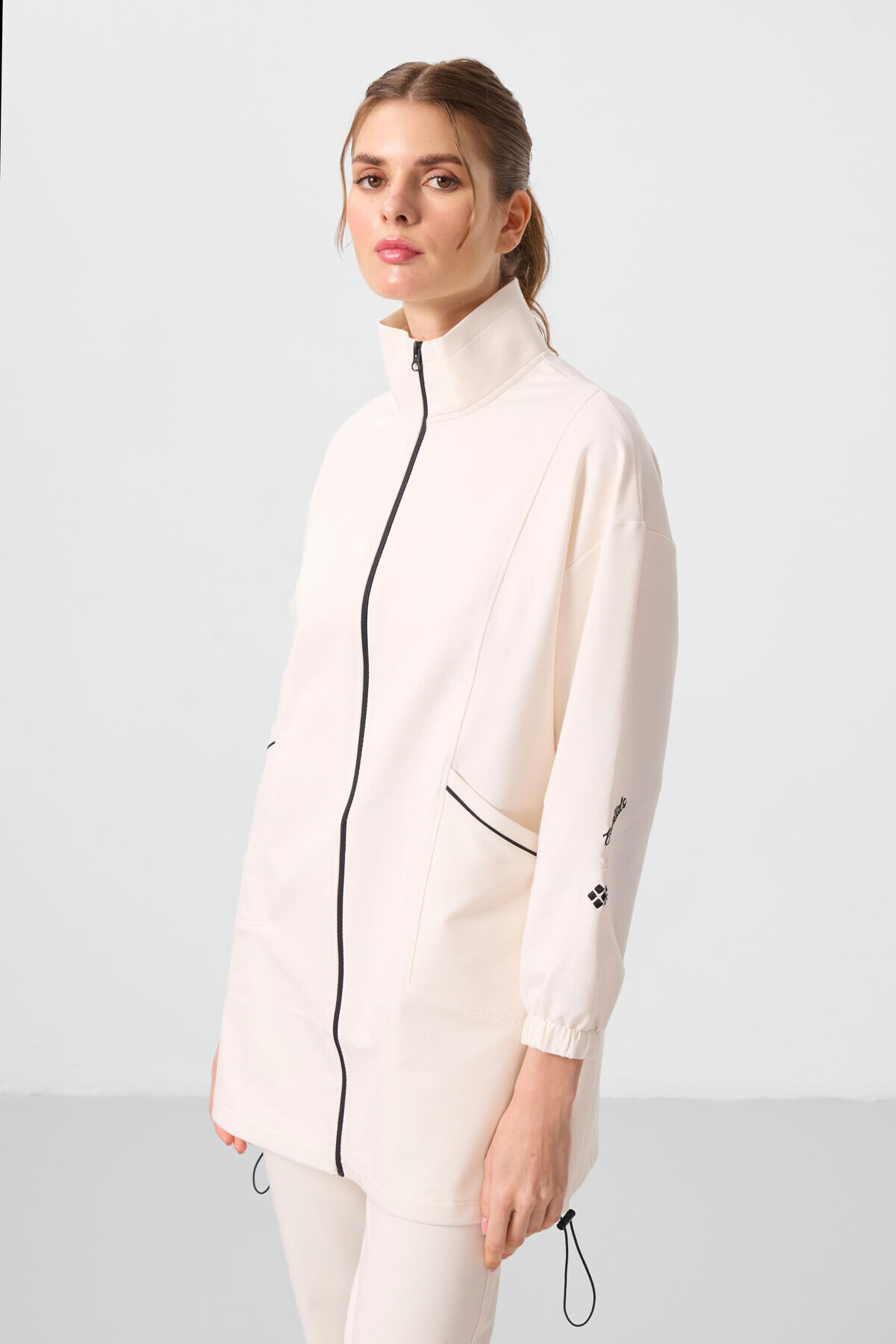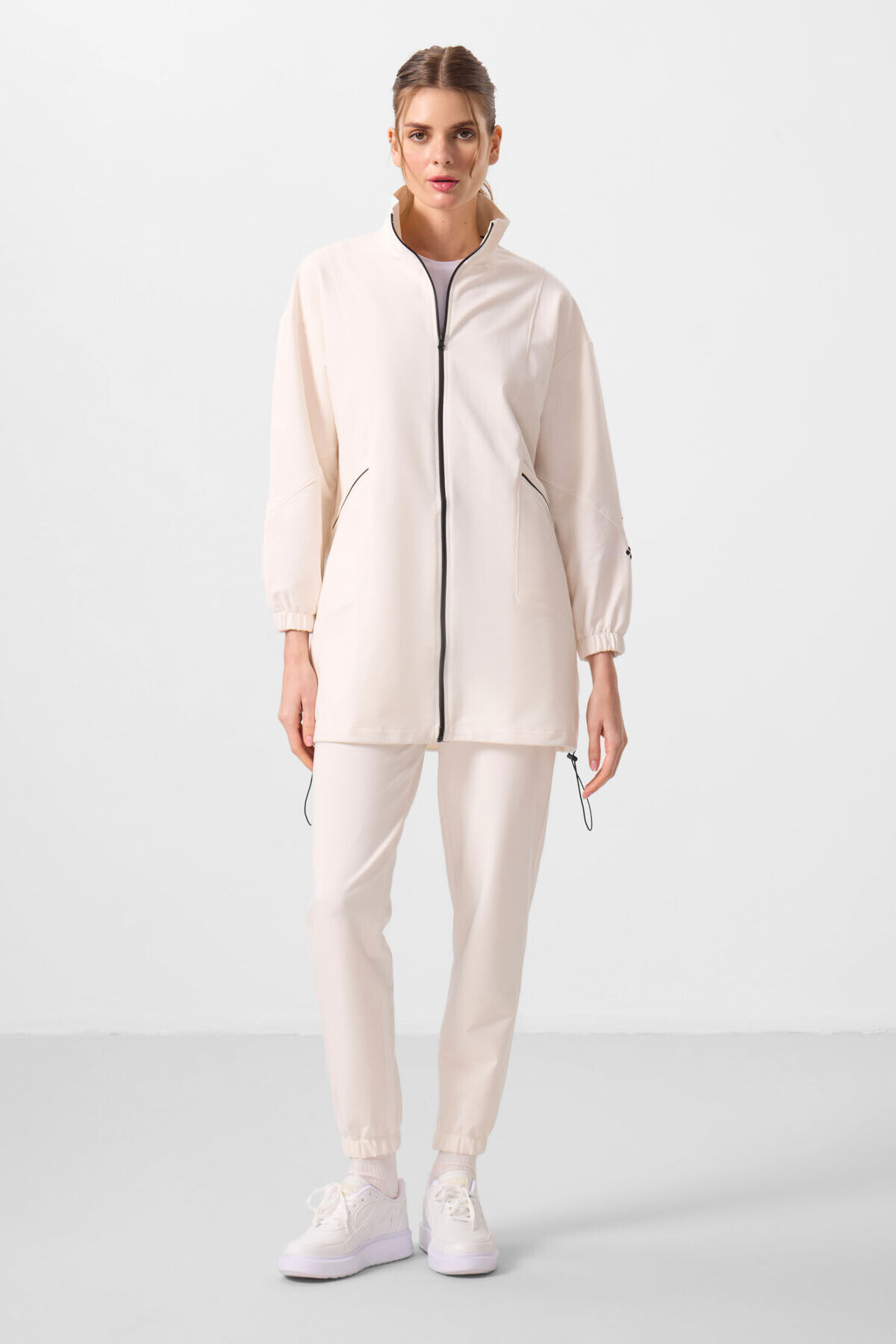Ekru Dik Yaka Fermuarlı Rahat Form Kadın Eşofman Tunik Takım - 95345