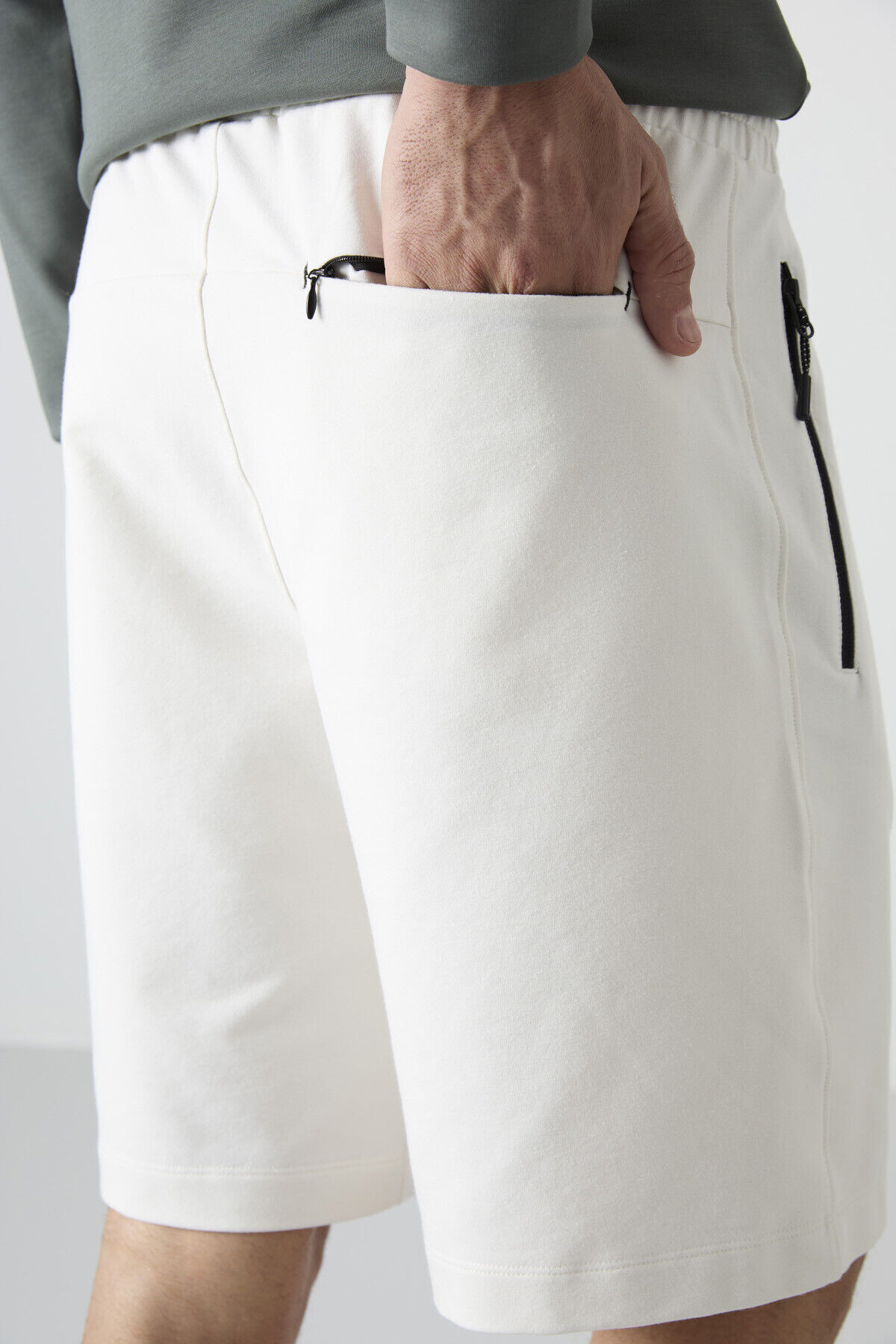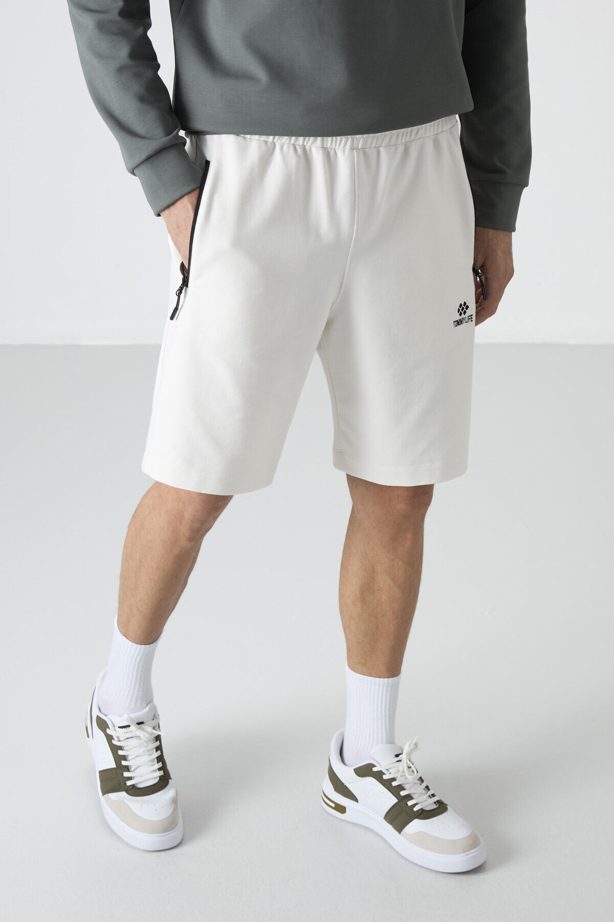 TommyLife Ekru Gizli Fermuar Arka Cepli Bağcıklı Standart Kalıp Erkek Şort - 81136
