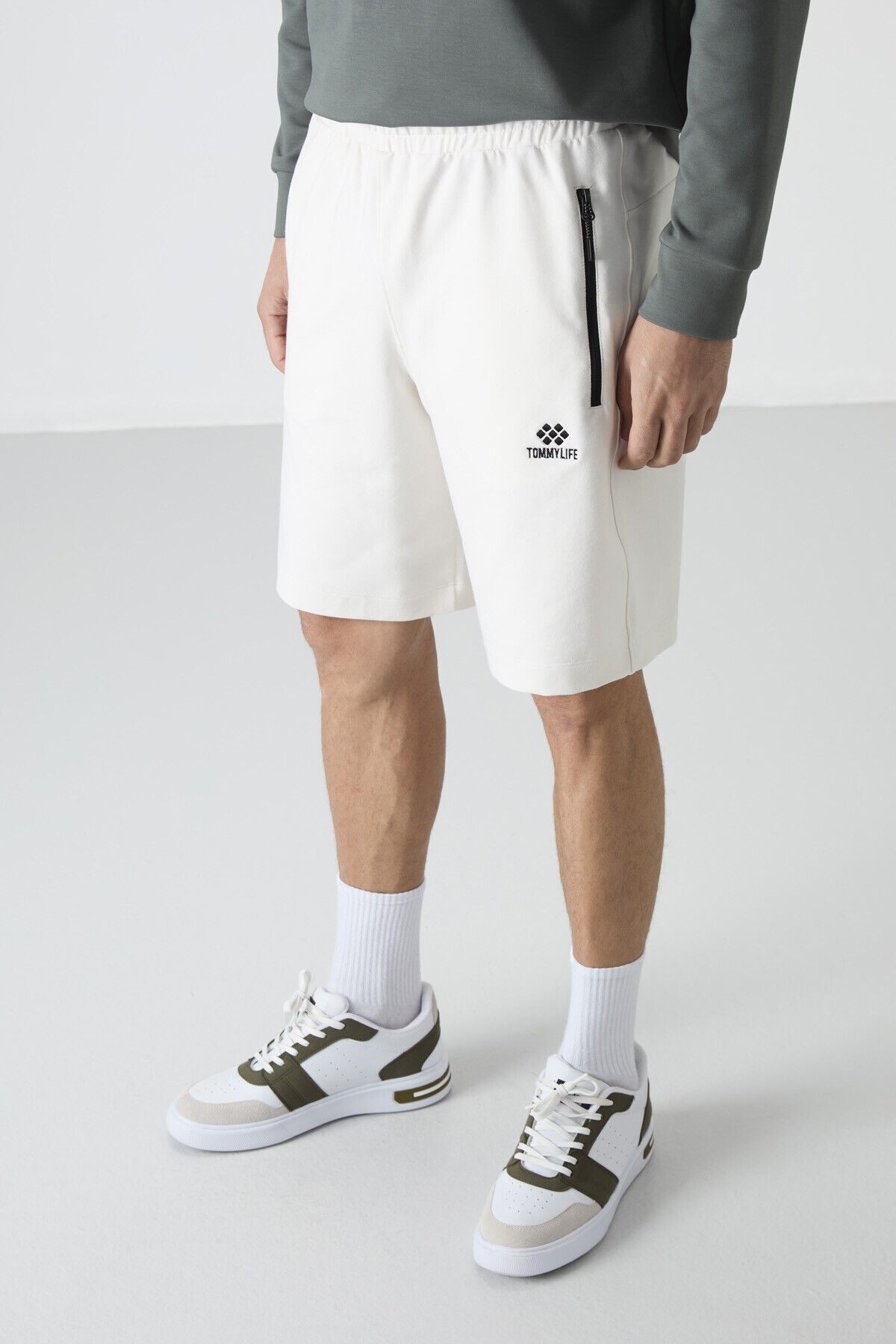 Ekru Gizli Fermuar Arka Cepli Bağcıklı Standart Kalıp Erkek Şort - 81136