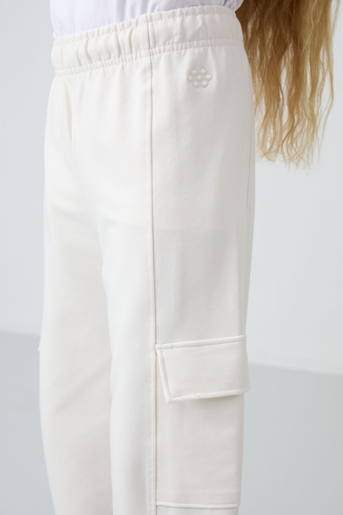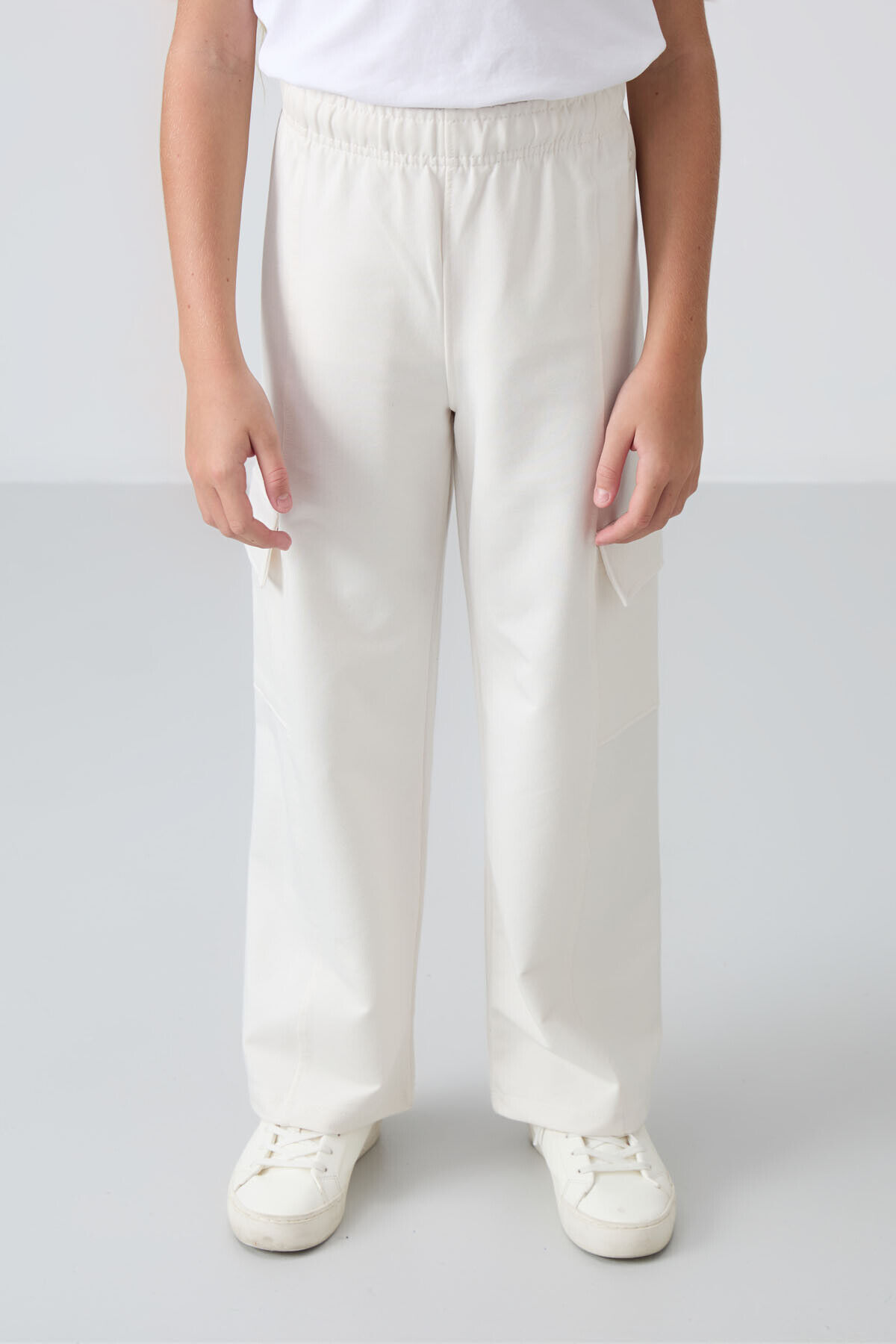Ekru Kargo Cepli Ön Dikiş Detaylı Geniş Paça Kız Çocuk Eşofman Altı - 75143