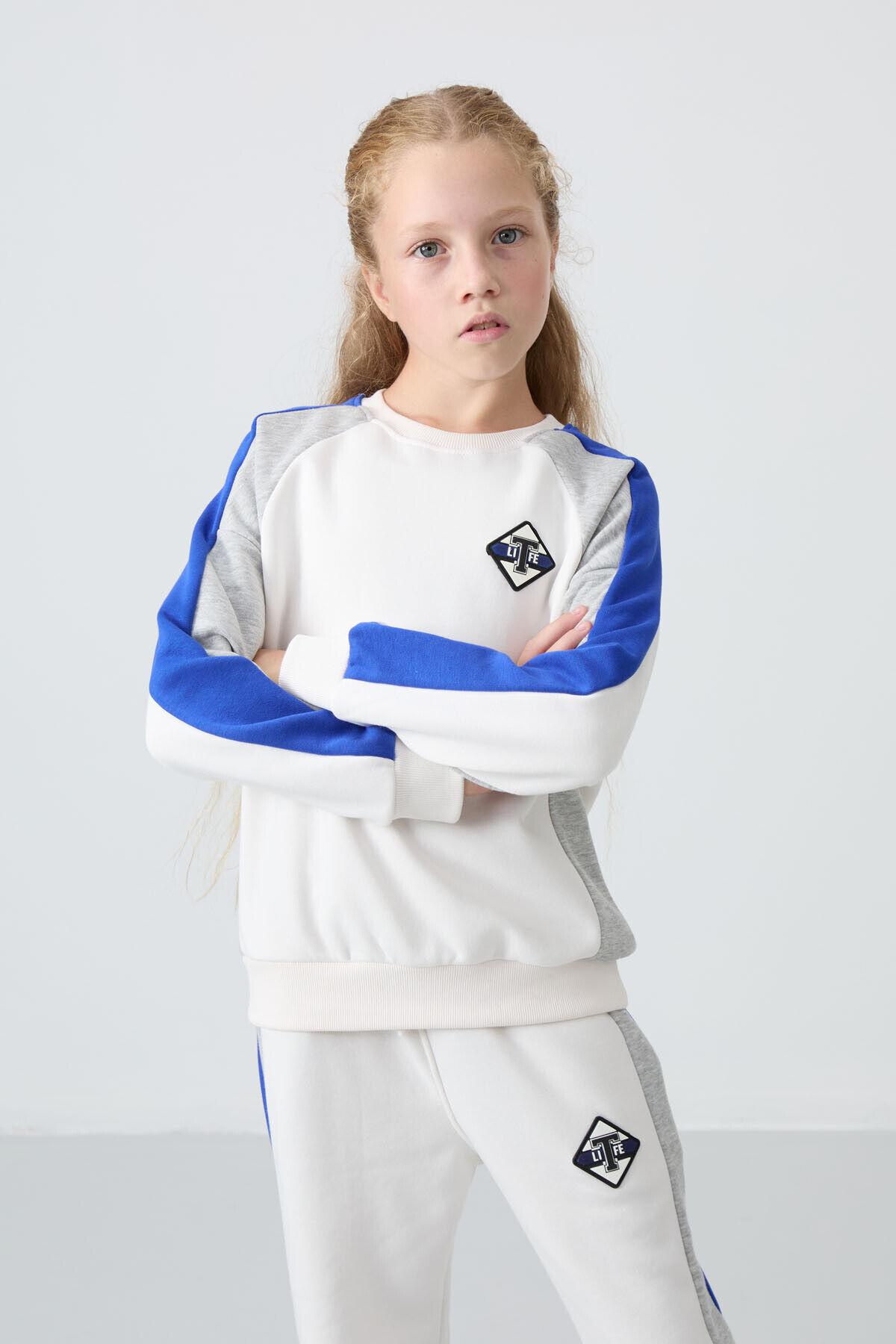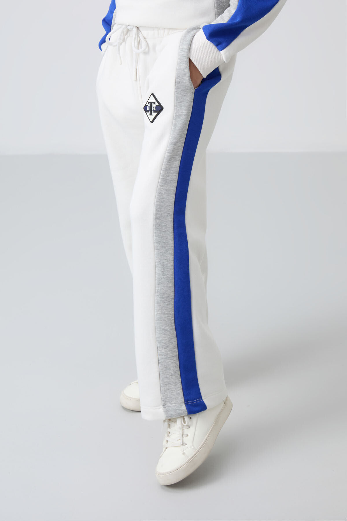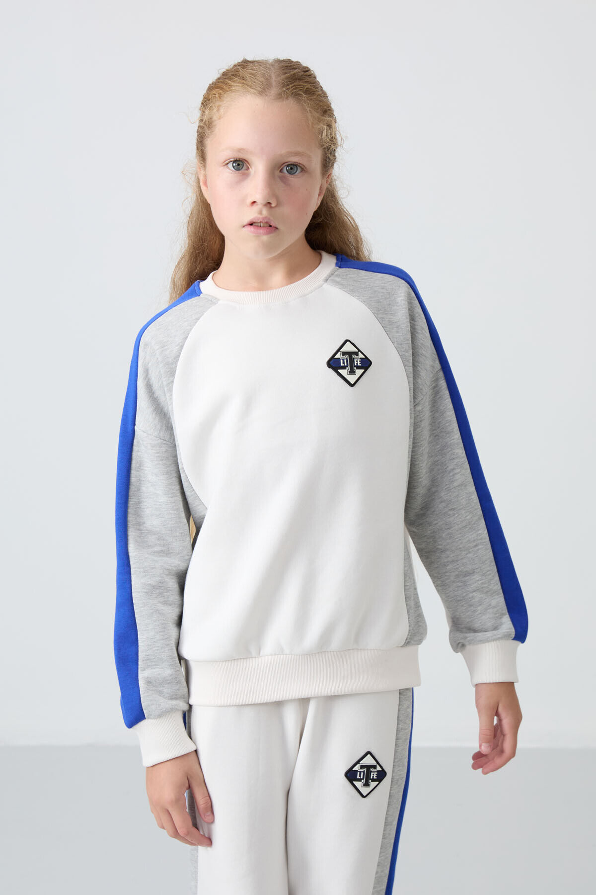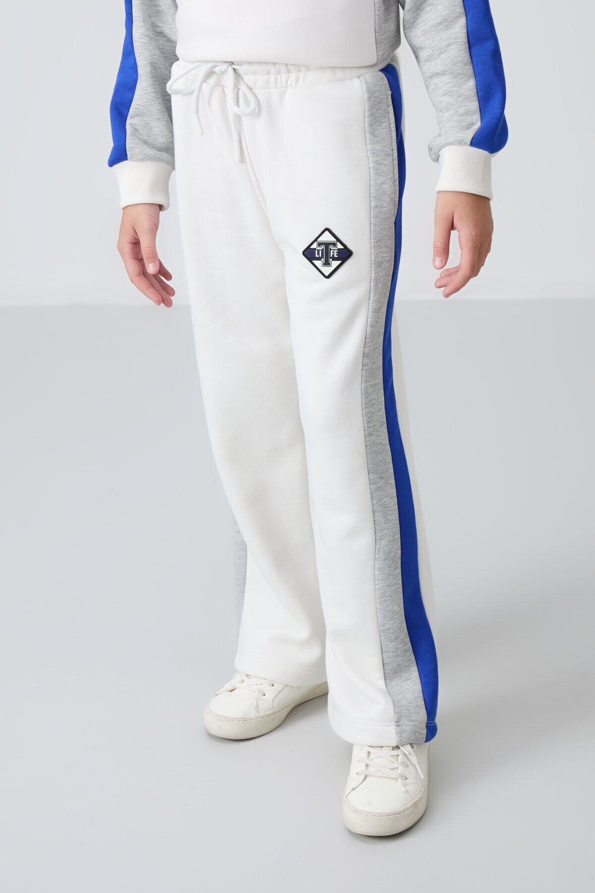 TommyLife Ekru O Yaka Geniş Paça Standart Fit Baskılı Kız Çocuk Eşofman Takım - 75165