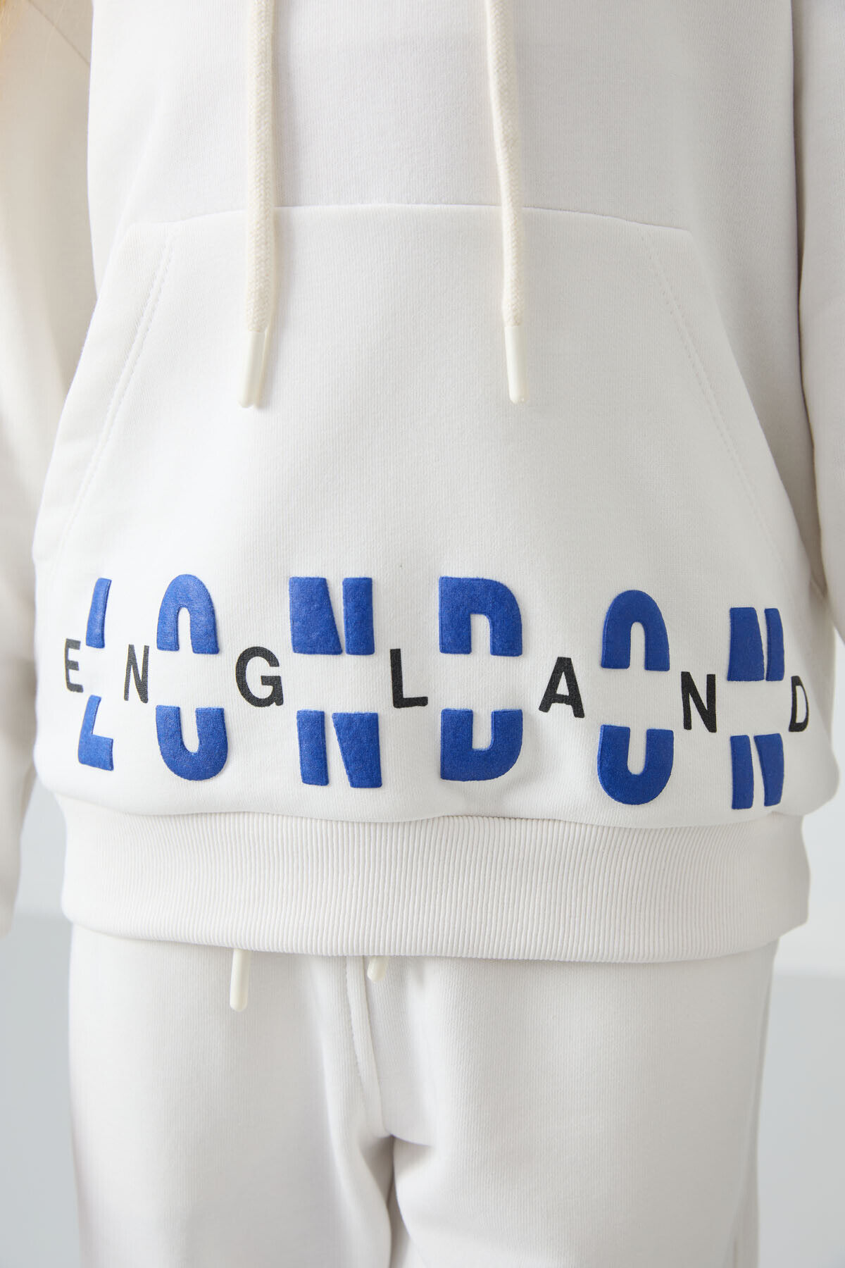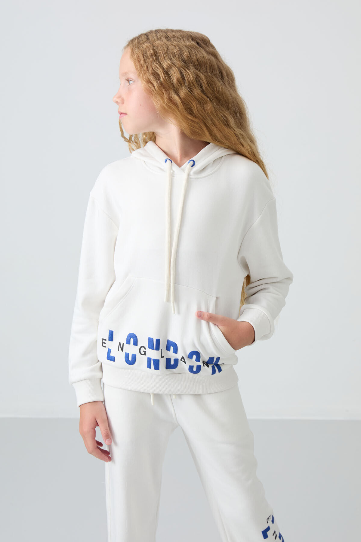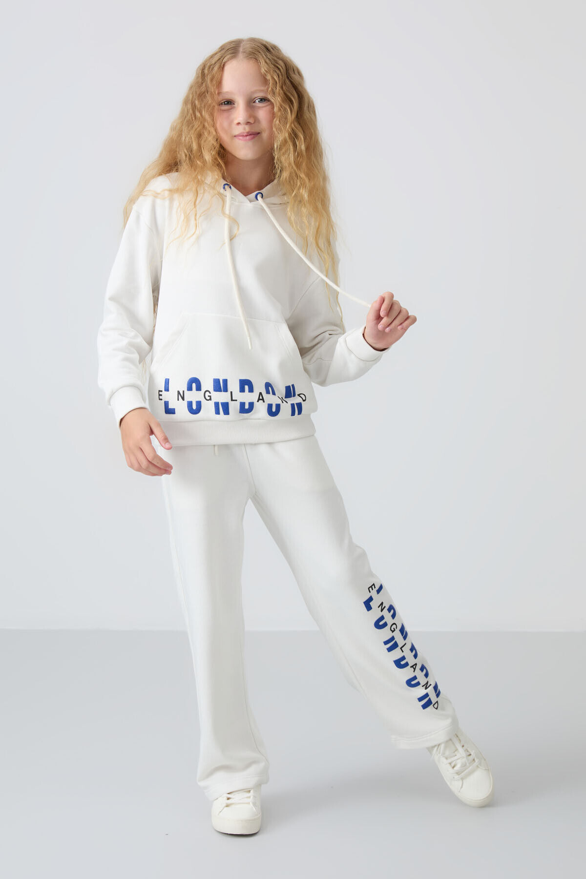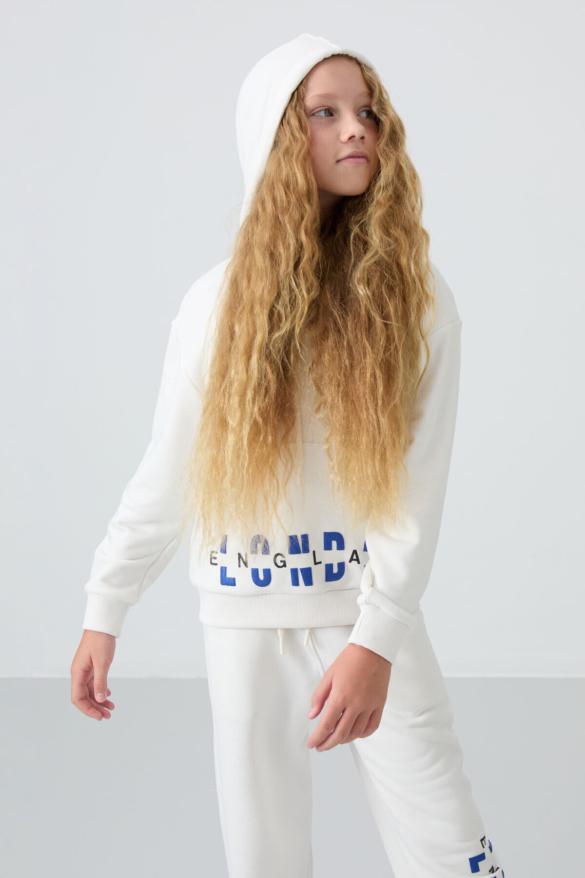 TommyLife Ekru Pamuklu İçi Tüylü Yumuşak Dokulu Oversize Baskılı Kız Çocuk Eşofman Takım - 75147