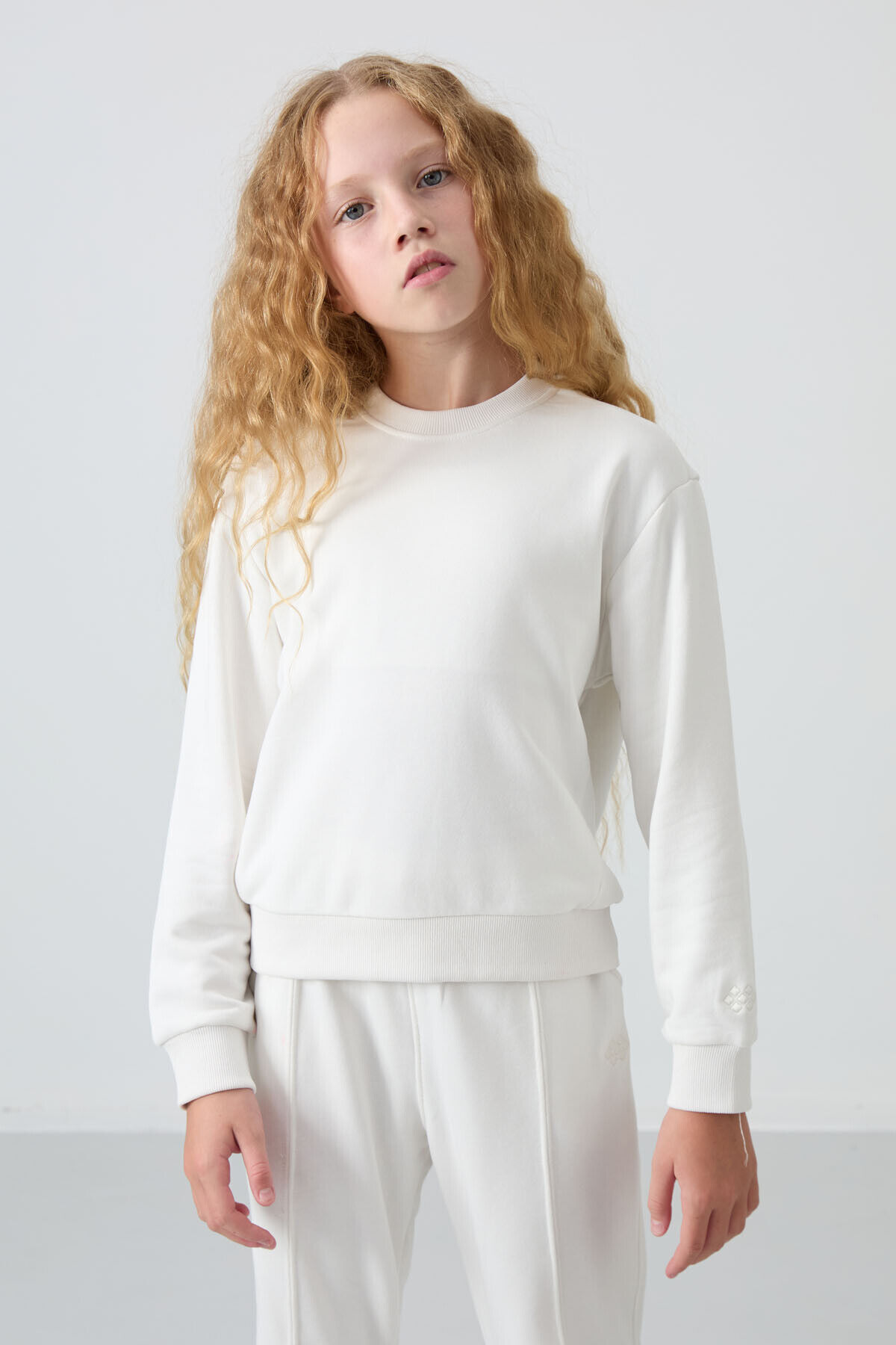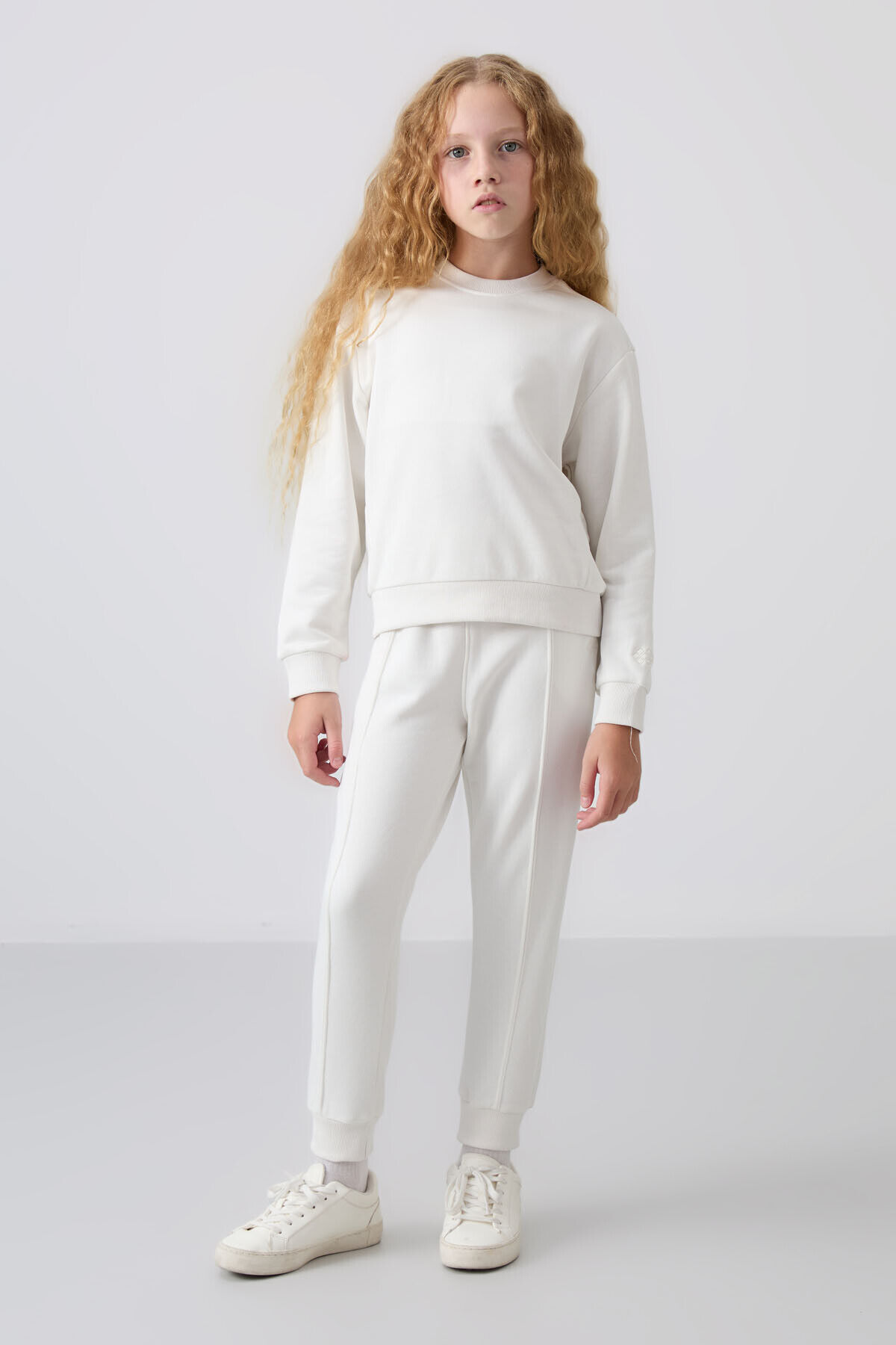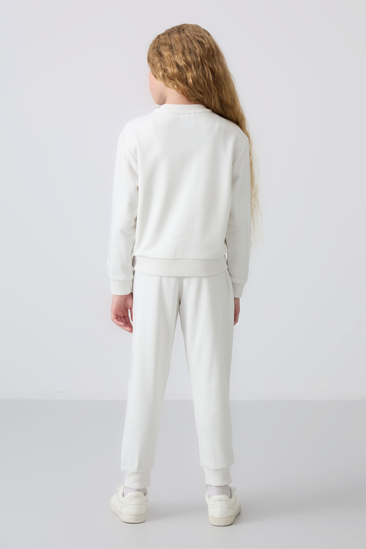 TommyLife Ekru Pamuklu İçi Tüylü Yumuşak Dokulu Oversize Nakışlı Kız Çocuk Eşofman Takım - 75145