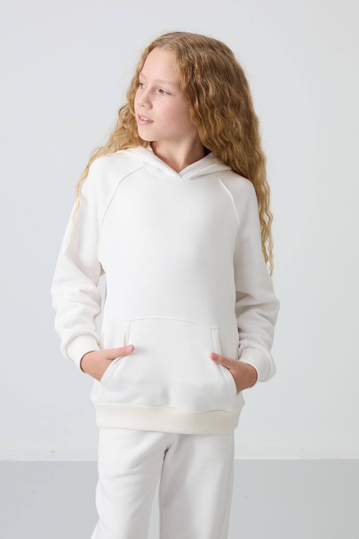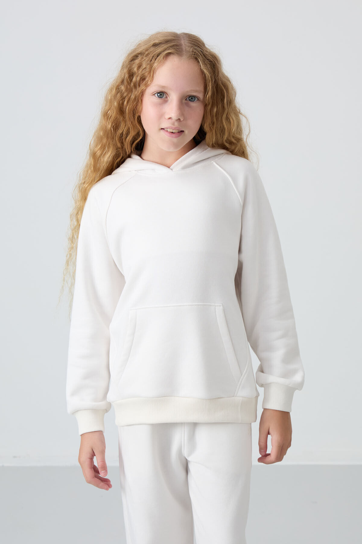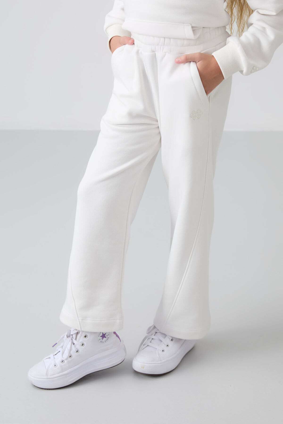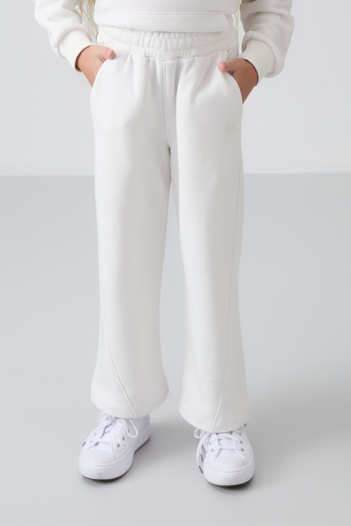 TommyLife Ekru Pamuklu İçi Tüylü Yumuşak Dokulu Standart Fit Nakışlı Kız Çocuk Eşofman Takım - 75162