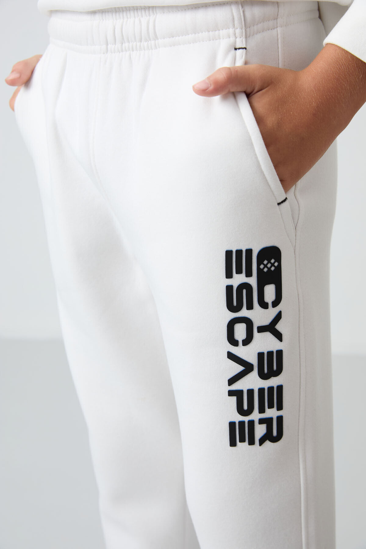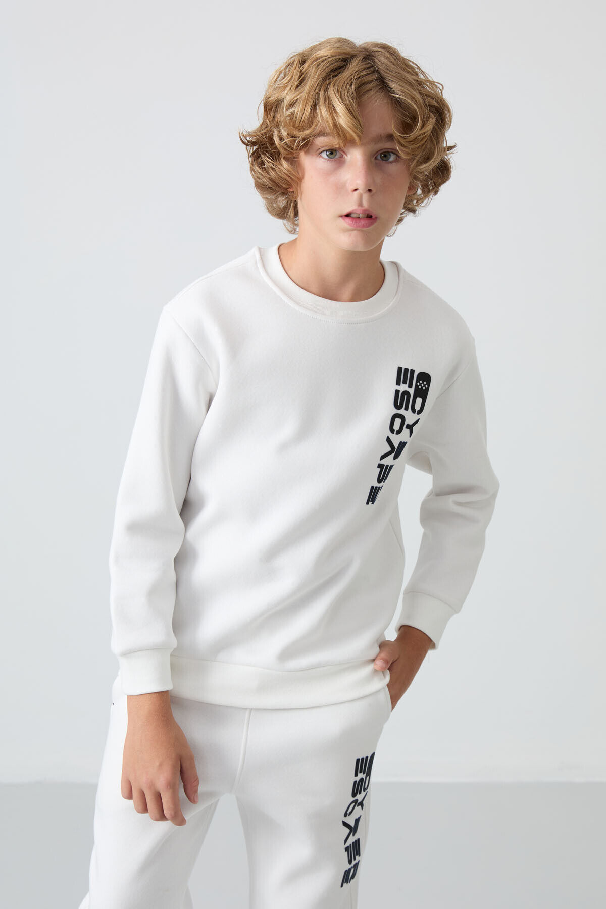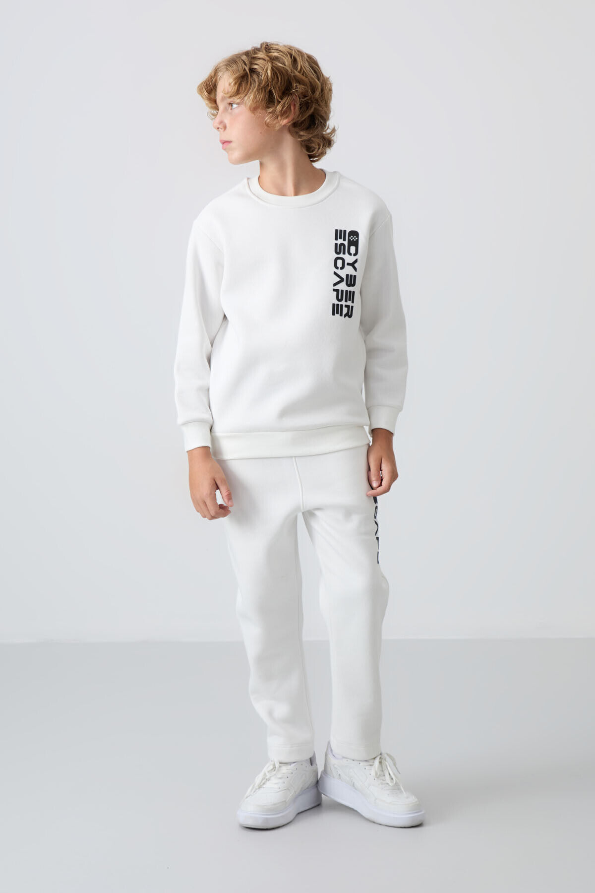 TommyLife Ekru Pamuklu Kalın İçi Tüylü Yumuşak Dokulu Standart Fit Baskılı Erkek Çocuk Eşofman Takım - 11233