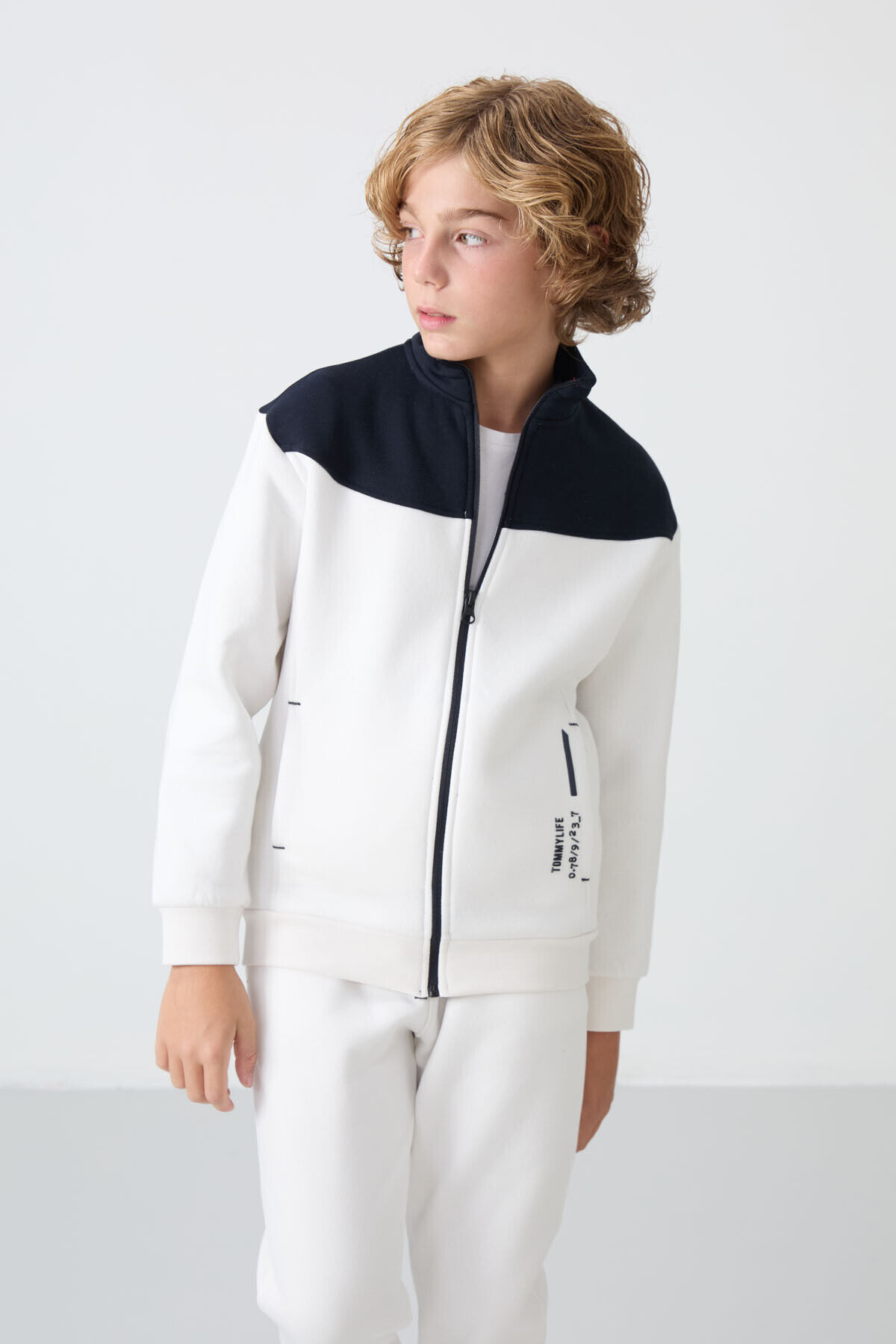 TommyLife Ekru Pamuklu Kalın İçi Tüylü Yumuşak Dokulu Standart Fit Nakışlı Erkek Çocuk Eşofman Takım - 11240