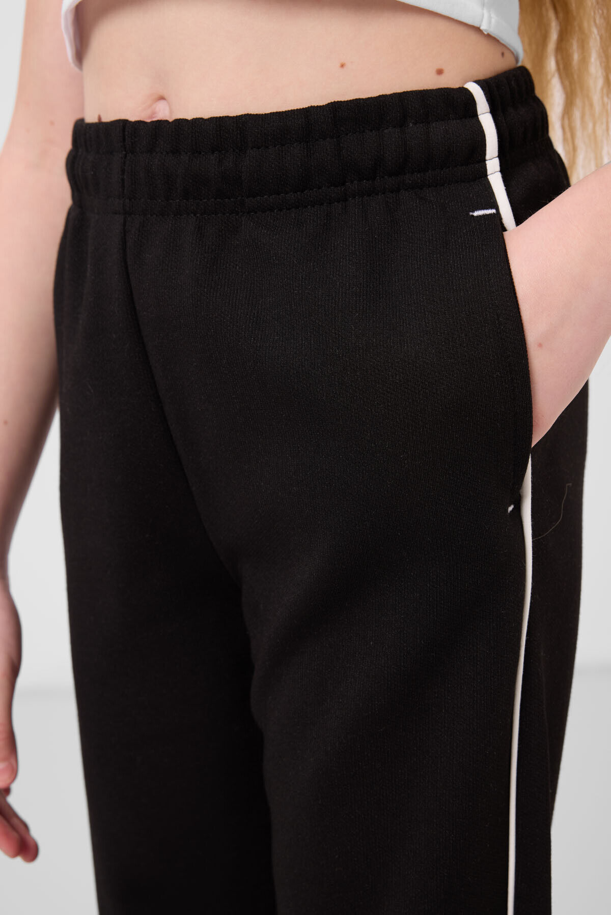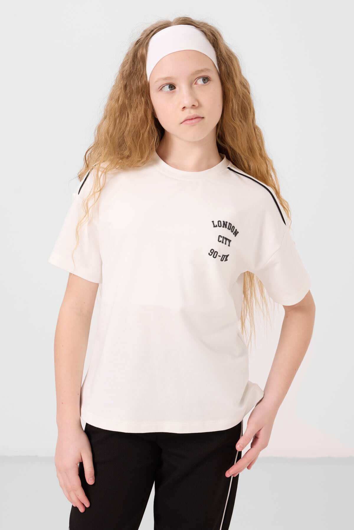 TommyLife Ekru-Siyah O Yaka Baskılı Lastik Paçalı Standart Fit Kız Çocuk Eşofman Takım - 75186