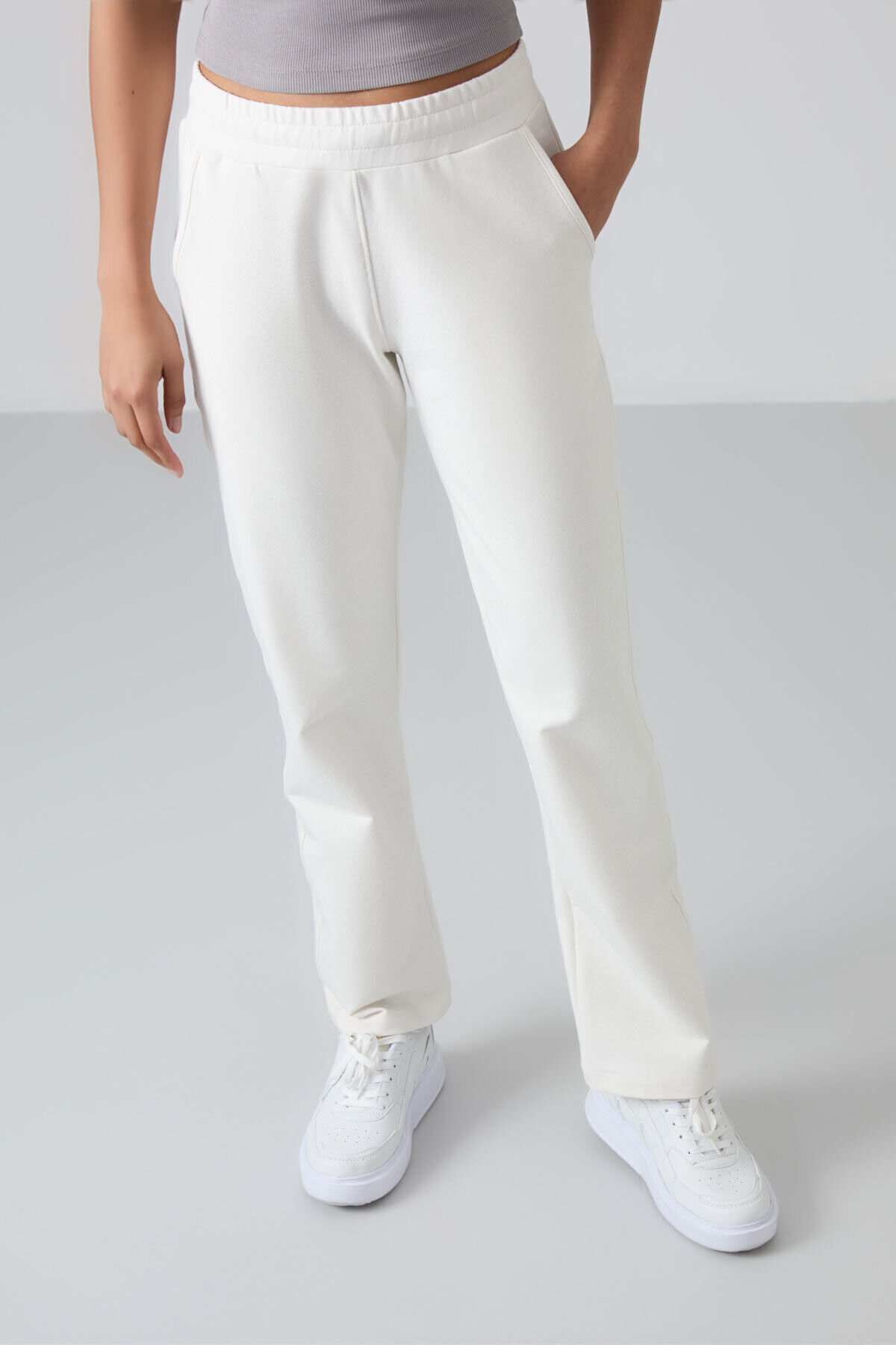 TommyLife Ekru Yüksek Bel Cepli Rahat Form Klasik Paça Kadın Eşofman Alt - 94584