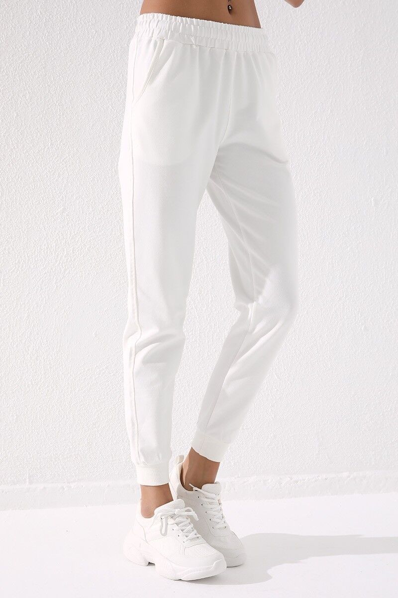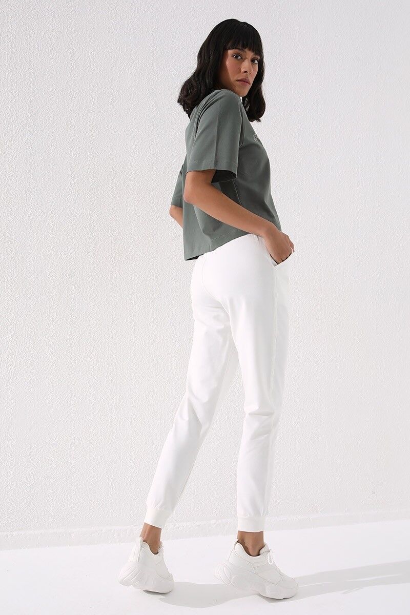 TommyLife Ekru Yüksek Bel Jogger Rahat Form Manşetli Kadın Eşofman Alt - 94561
